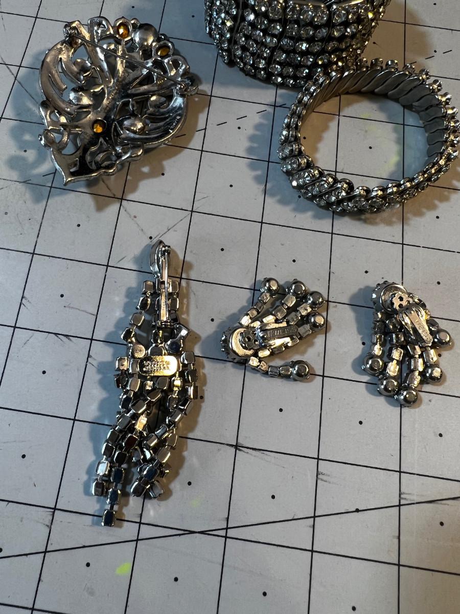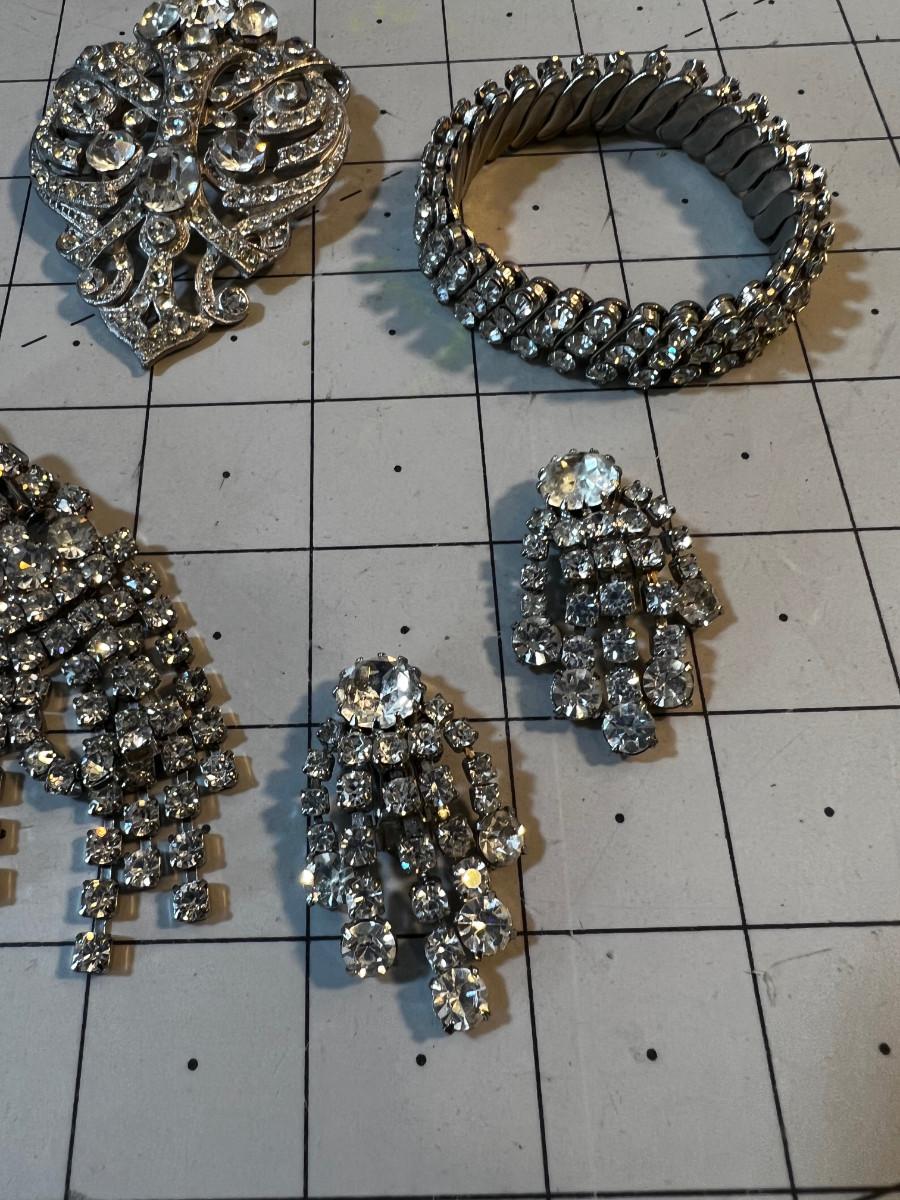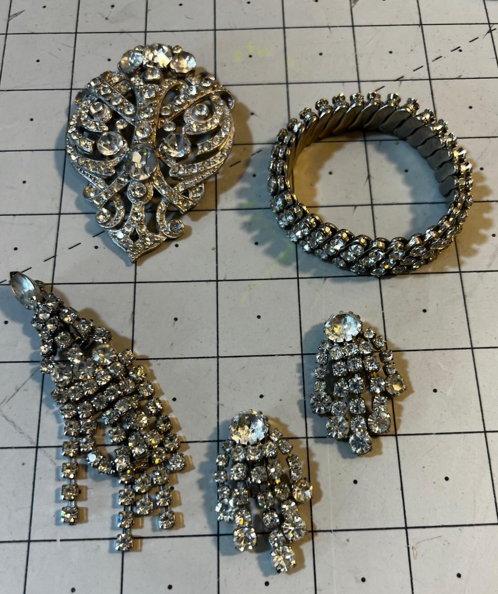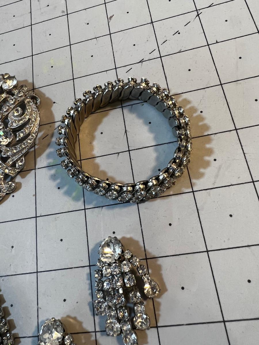 Grouping of Rhinestone: Pin, Earrings and Bracelet