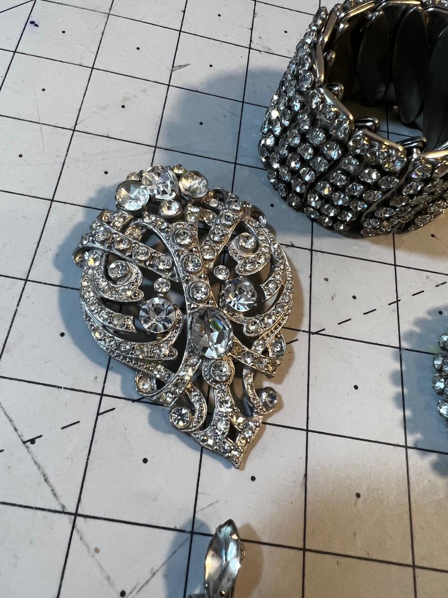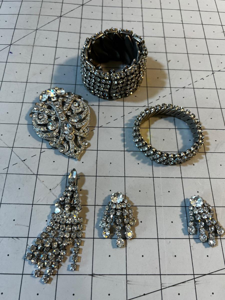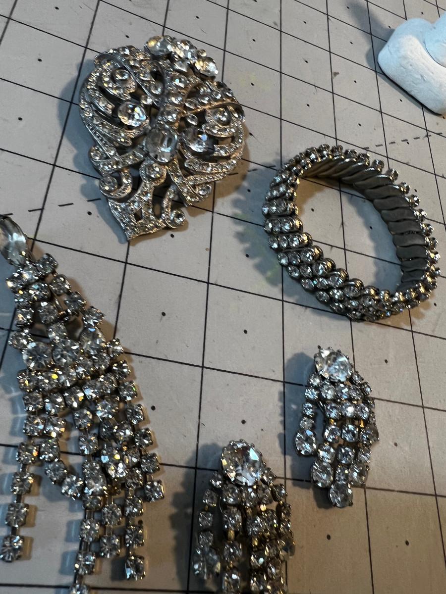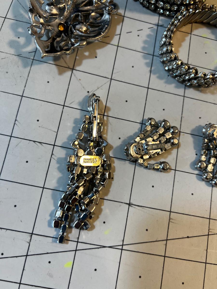 Grouping of Rhinestone: Pin, Earrings and Bracelet