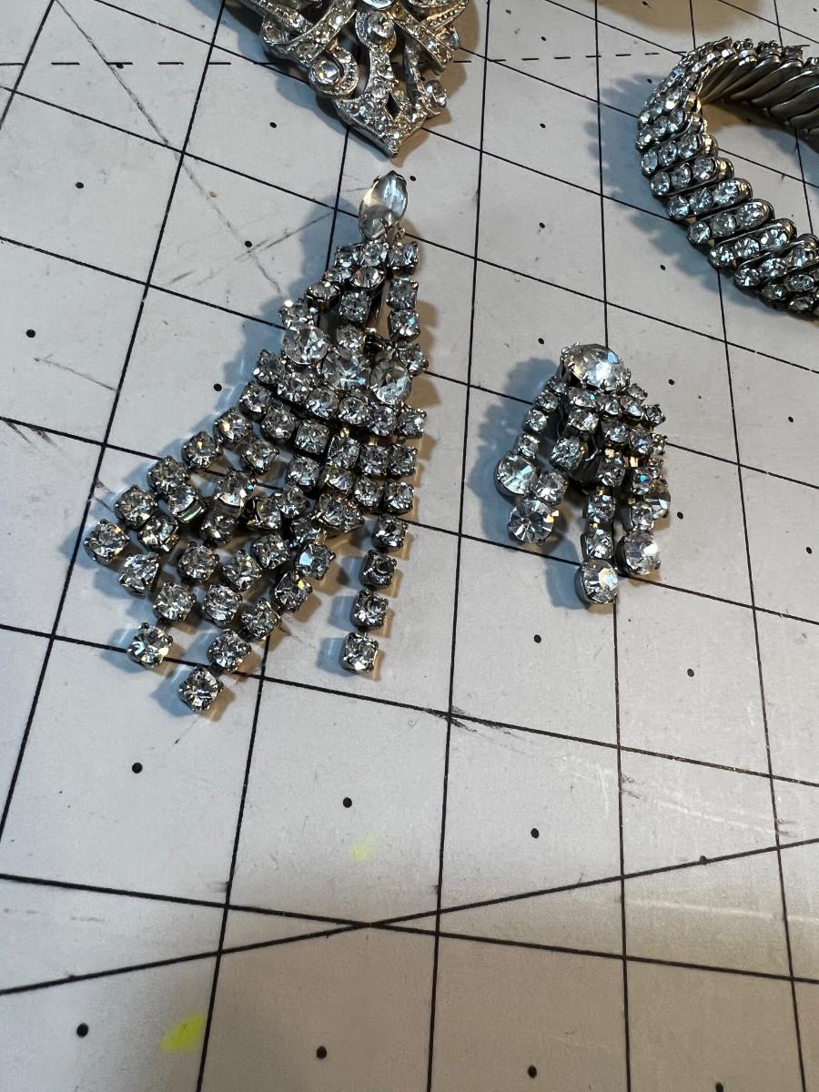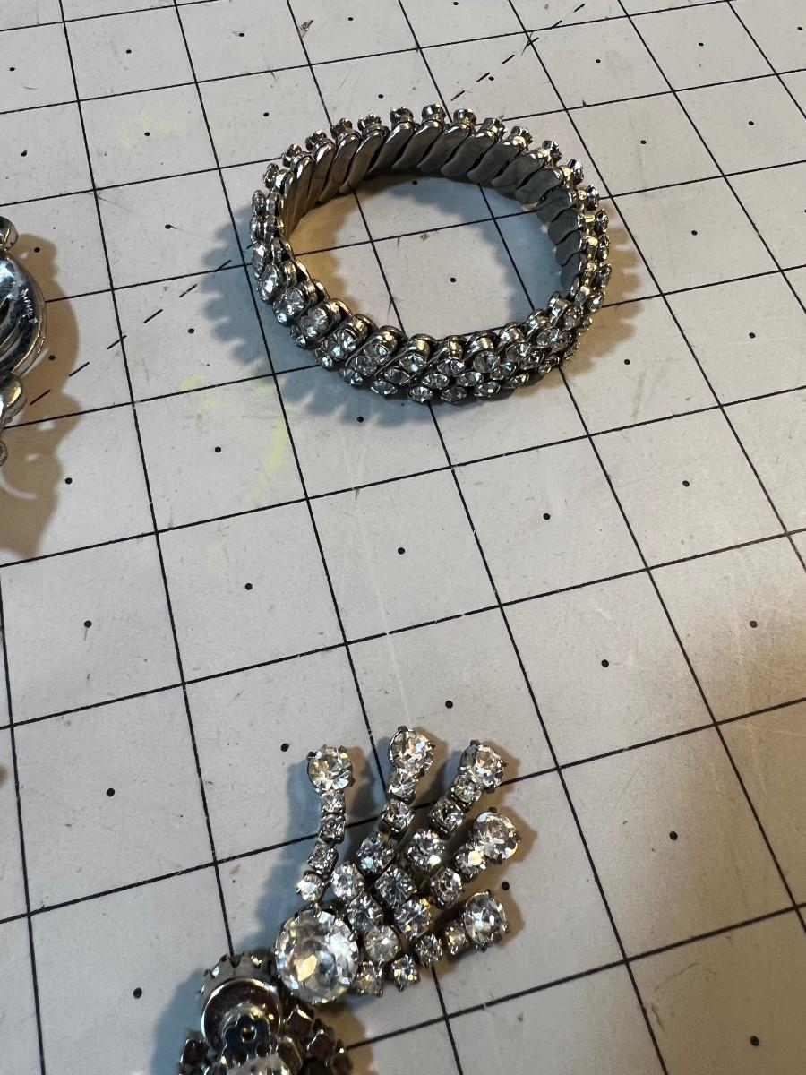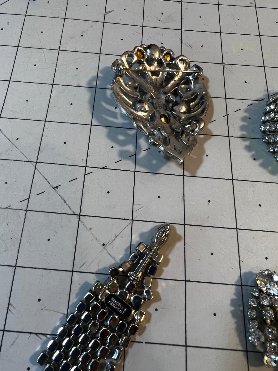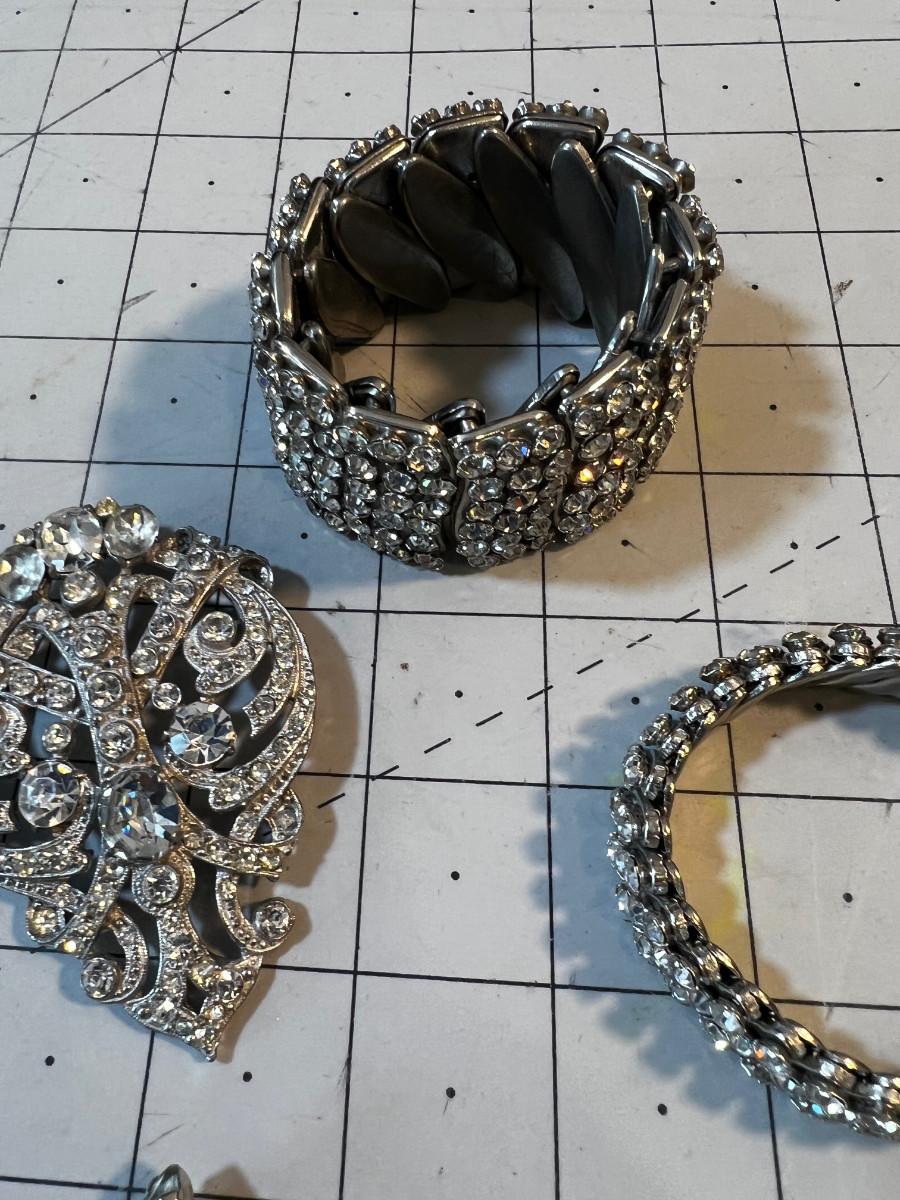 Grouping of Rhinestone: Pin, Earrings and Bracelet
