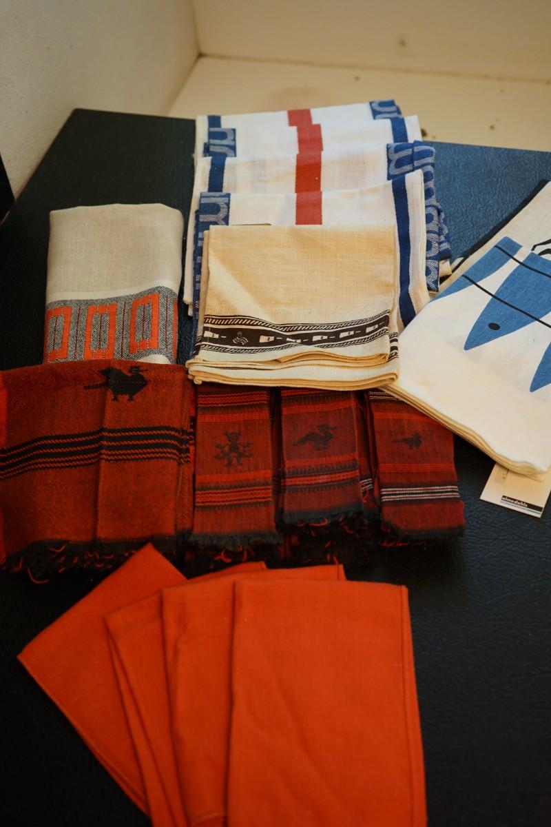 good condition. Assortment 10 napkins and mis match kitchen towel not used. for the colors.