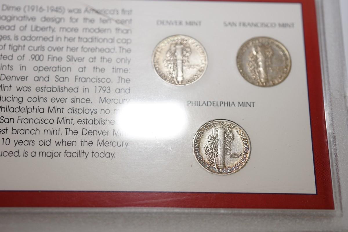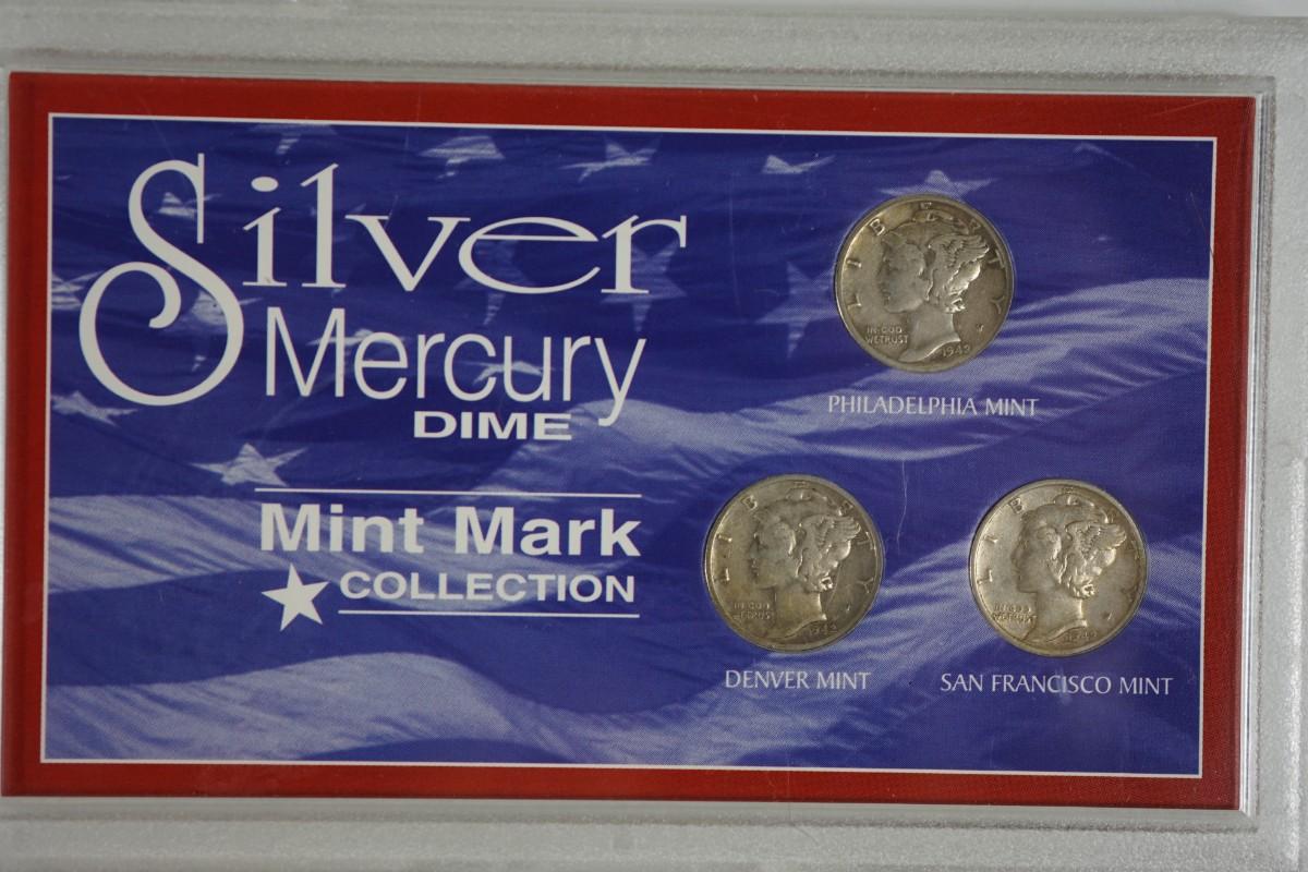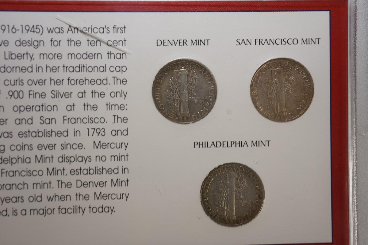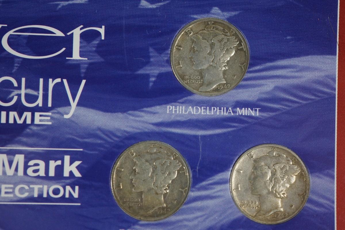 GROUPING OF THREE 1942 MERCURY DIMES ONE FROM EACH MINT.