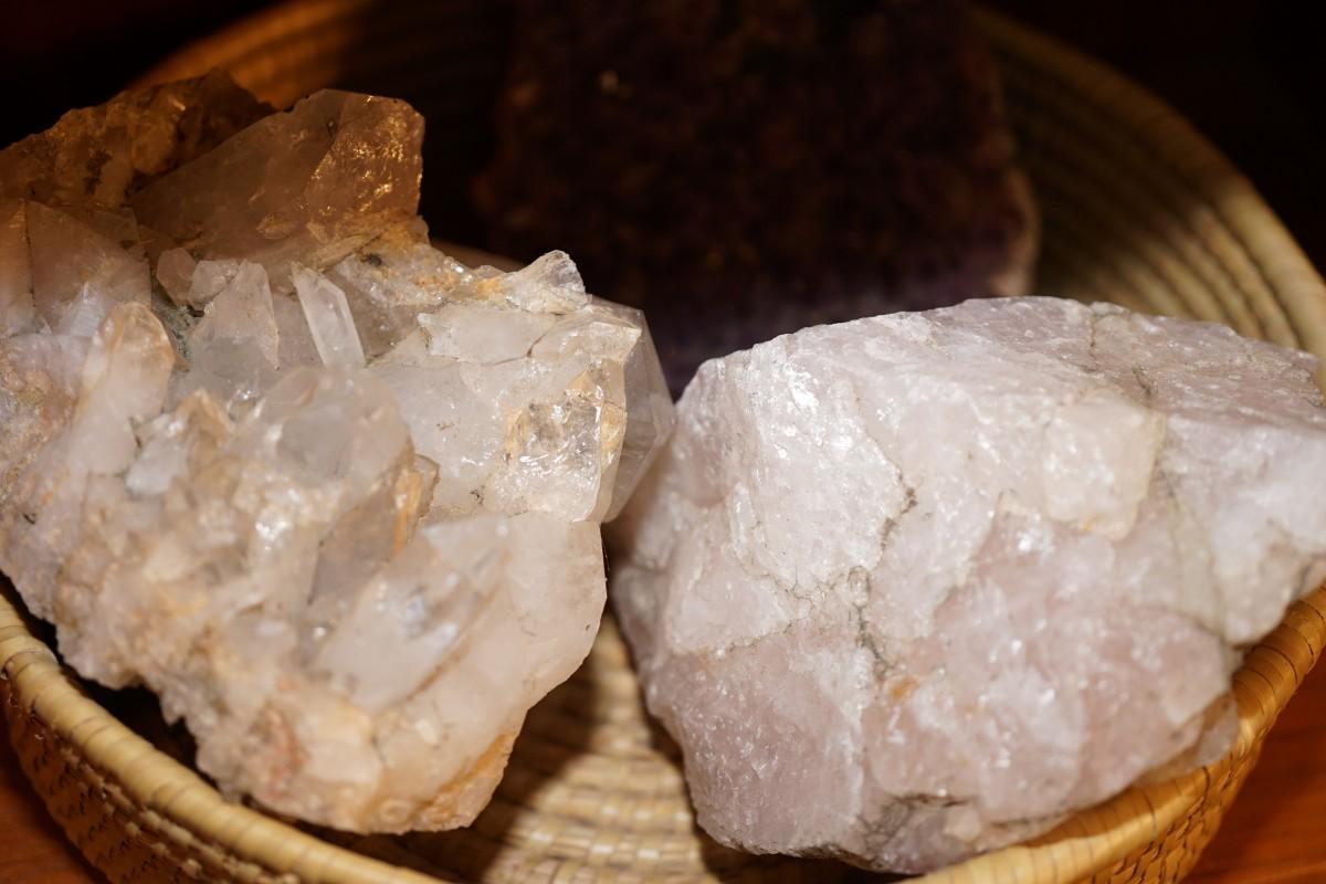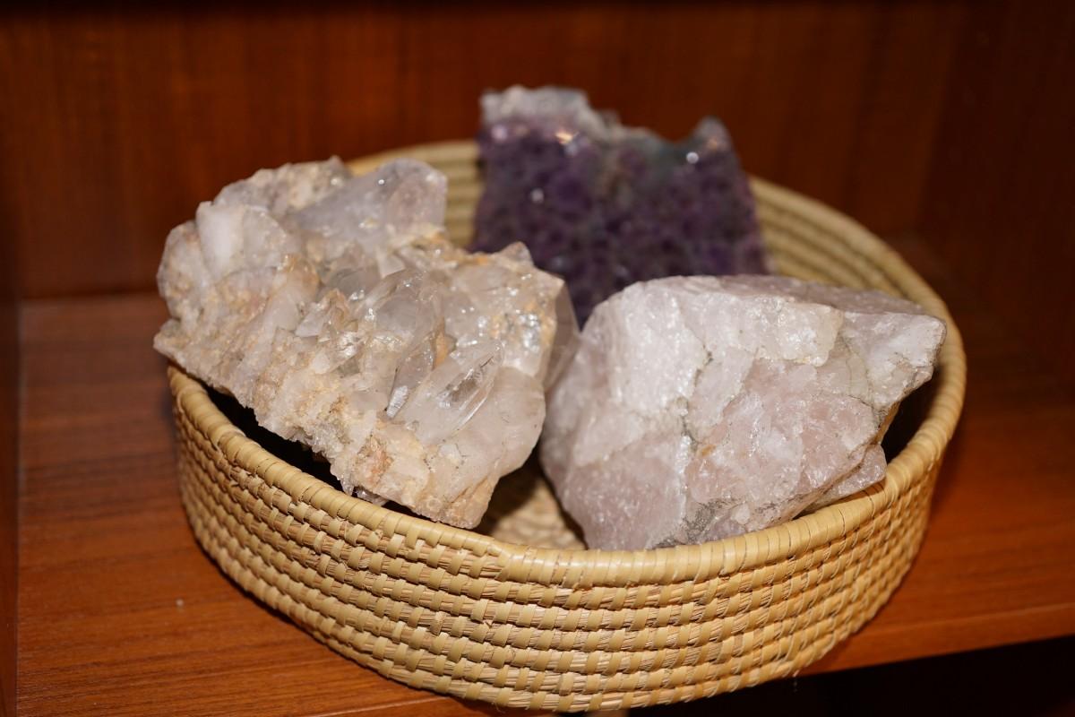 GROUPING OF THREE MINERAL ROCKS, AMETHYST, QUARTZ AND CRYSTAL OF NATURAL FORM