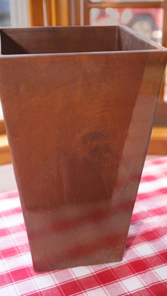 There is also a separate phot of a tall vase in a copper tone color for floor display of plants. Included is a nice artificial fern style plant in a plastic holder that could also hold a life fern if you wanted to switch out.