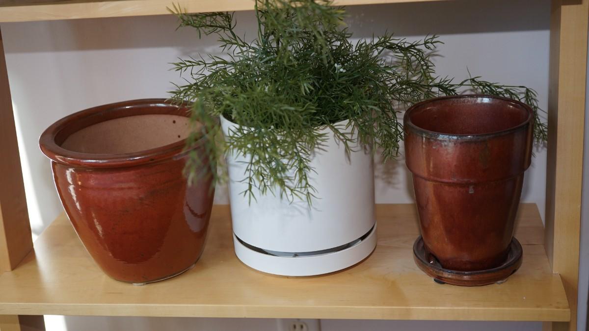 GROUPING OF THREE POTS FOR PLANTS AND ONE ARTIFICIAL FERN