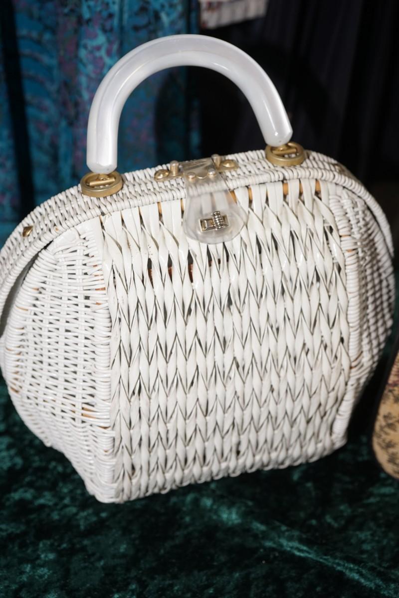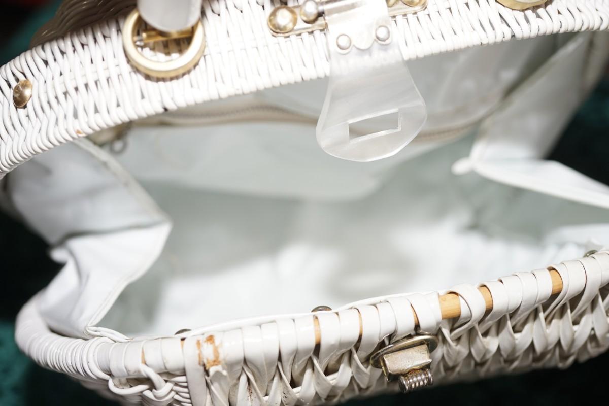 The white one is very clean and useful. woven strong rattan with brass handle accent. interior is vinyl,
