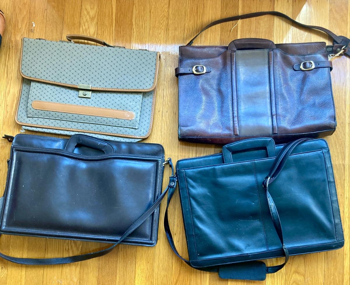 4 vintage leather and vinyl soft briefcase style bags great for laptops!