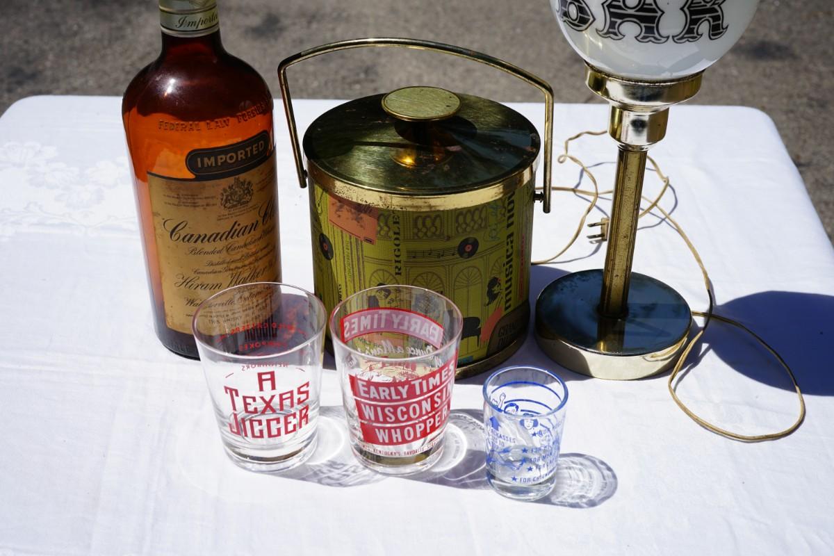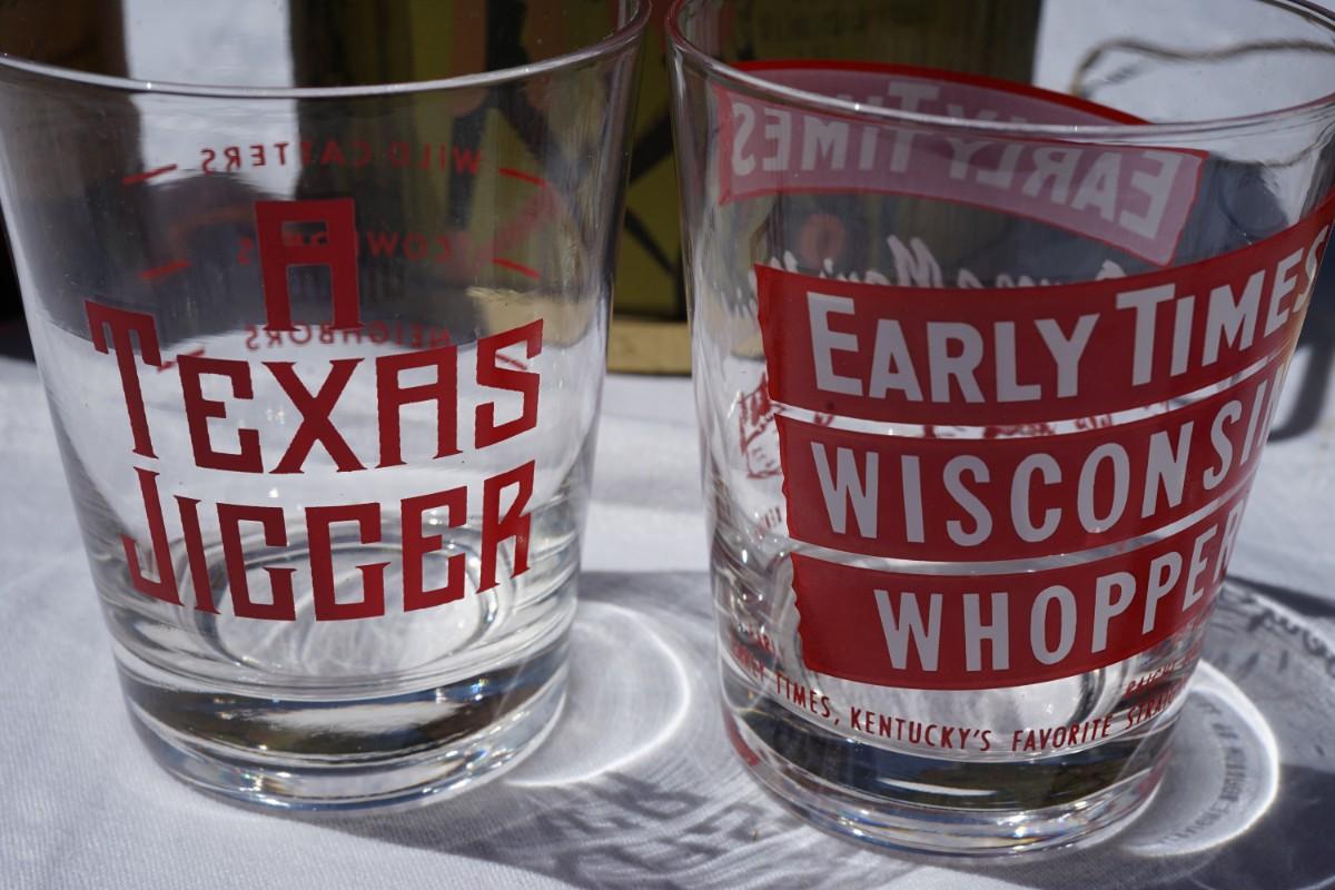 The shot glasses and highball glasses are collectible