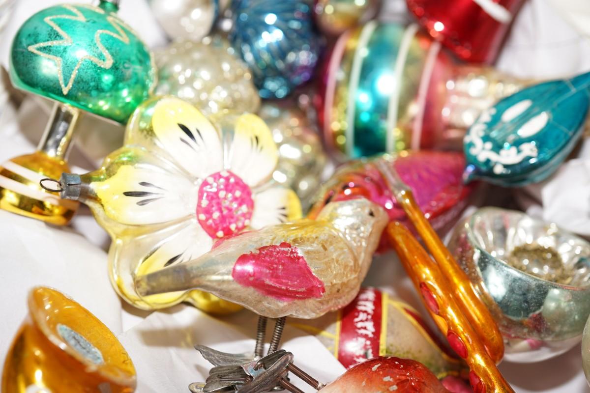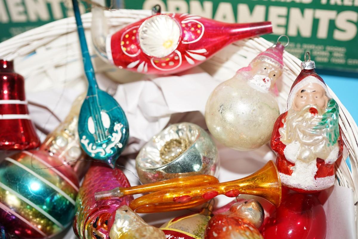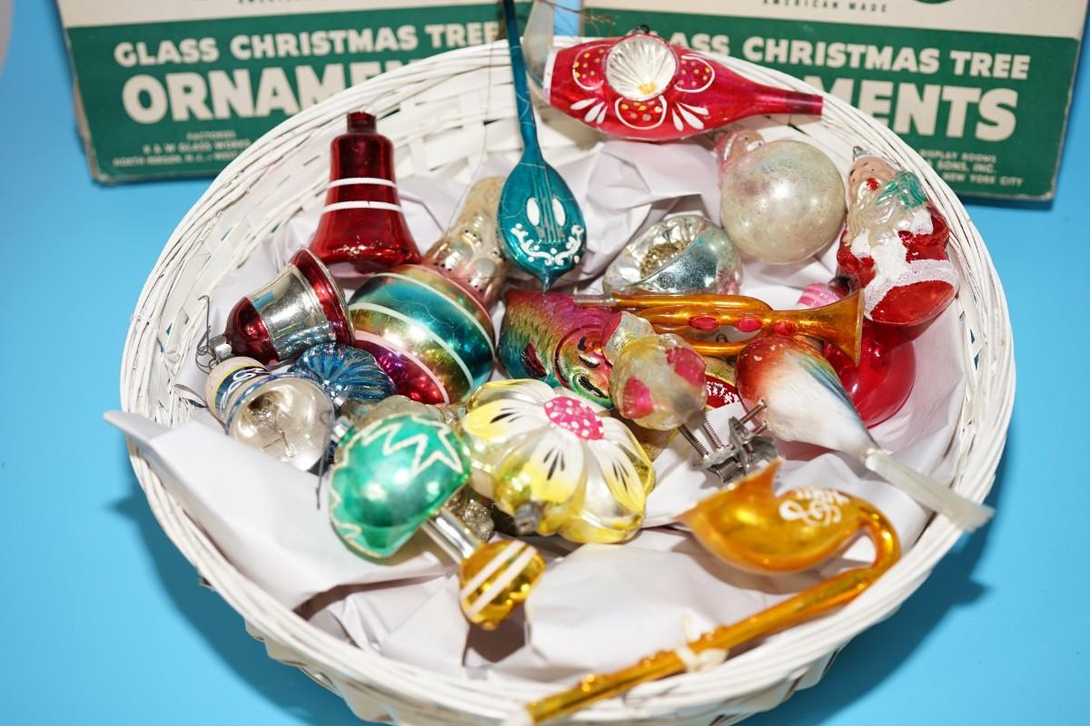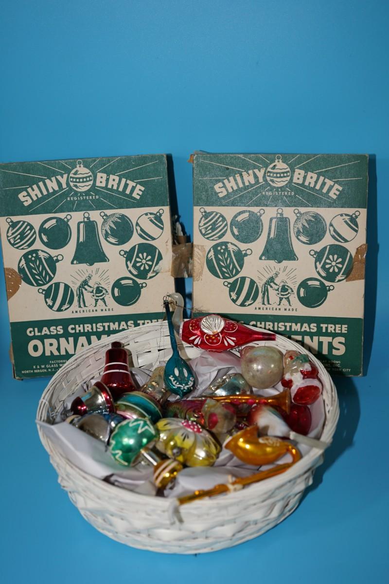 GROUPING OF VINTAGE CHRISTMAS ORNAMENTS & VINTAGE BOXES