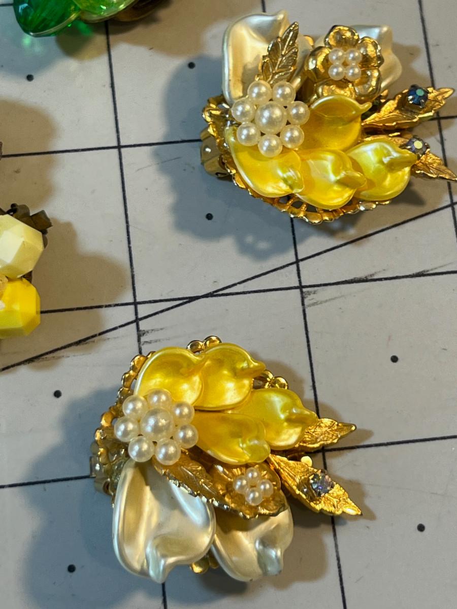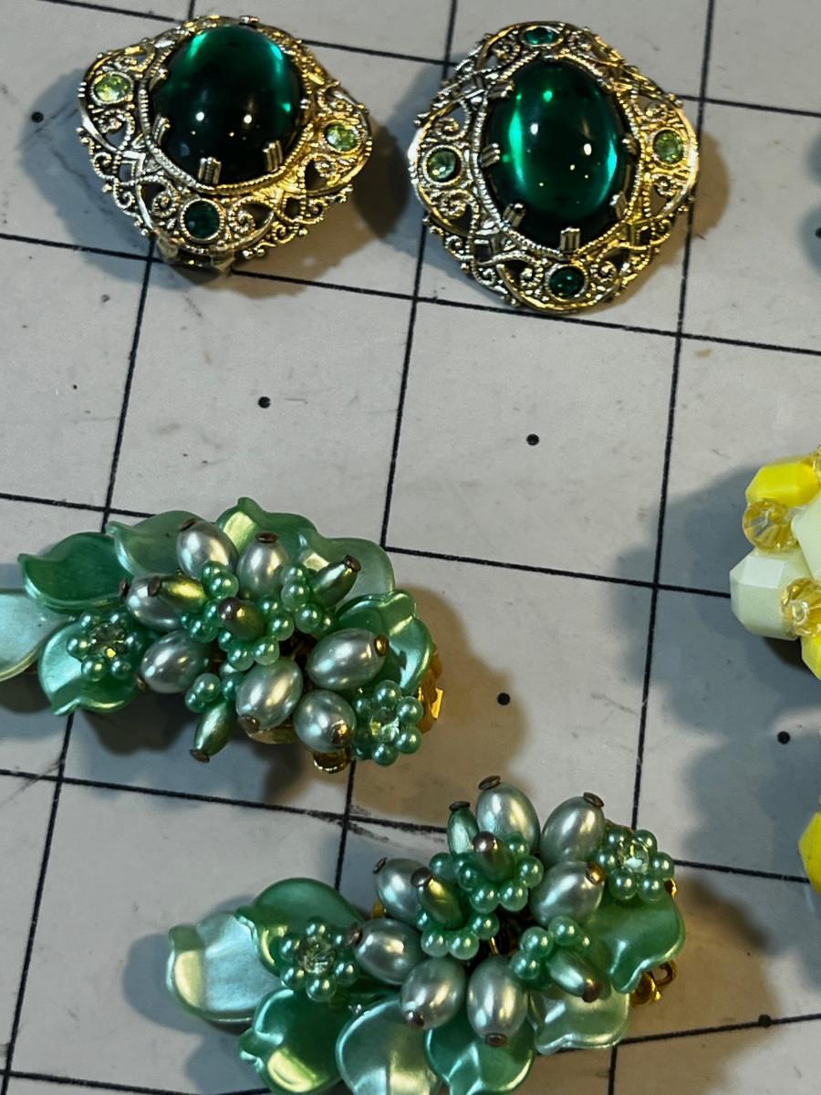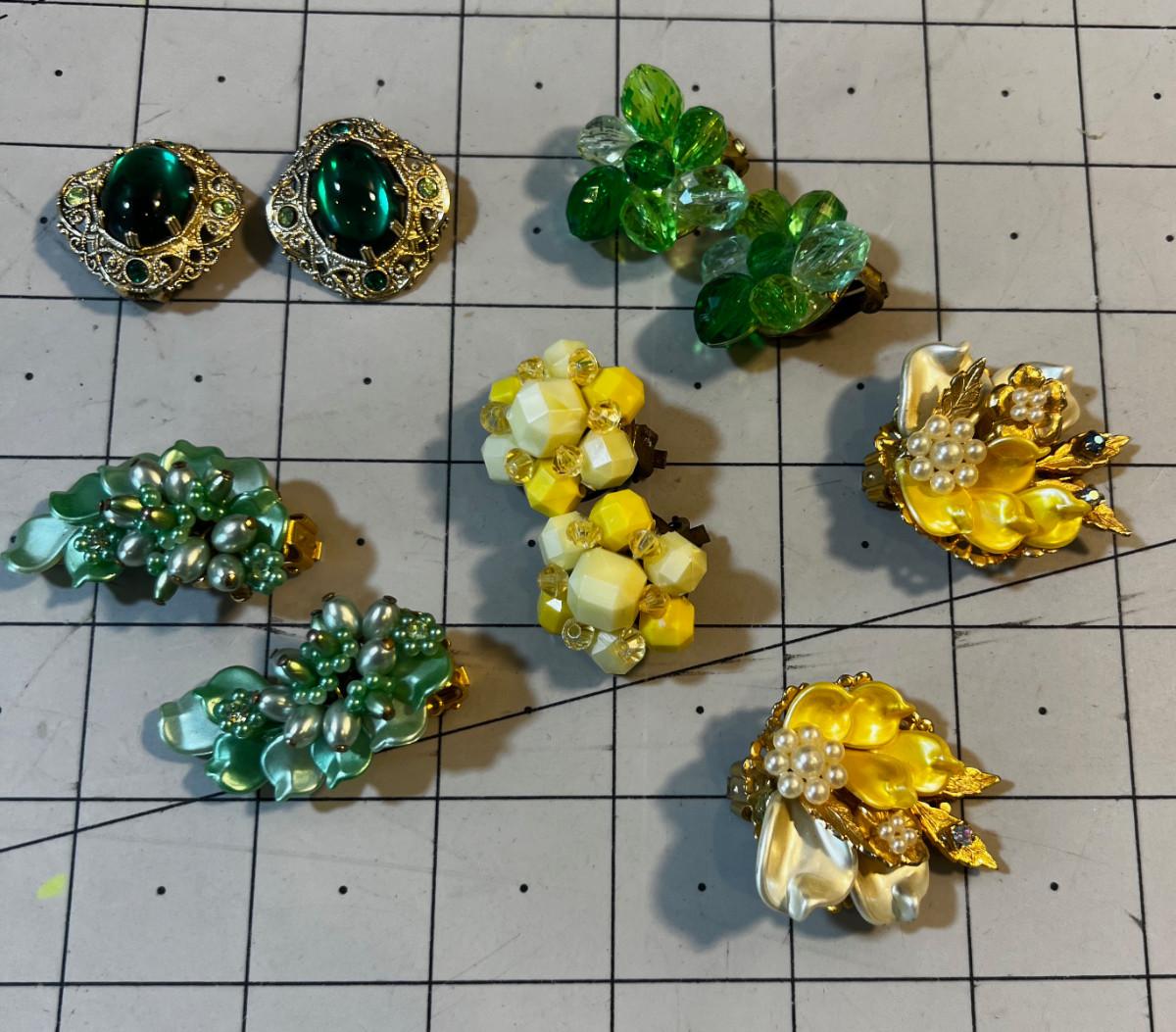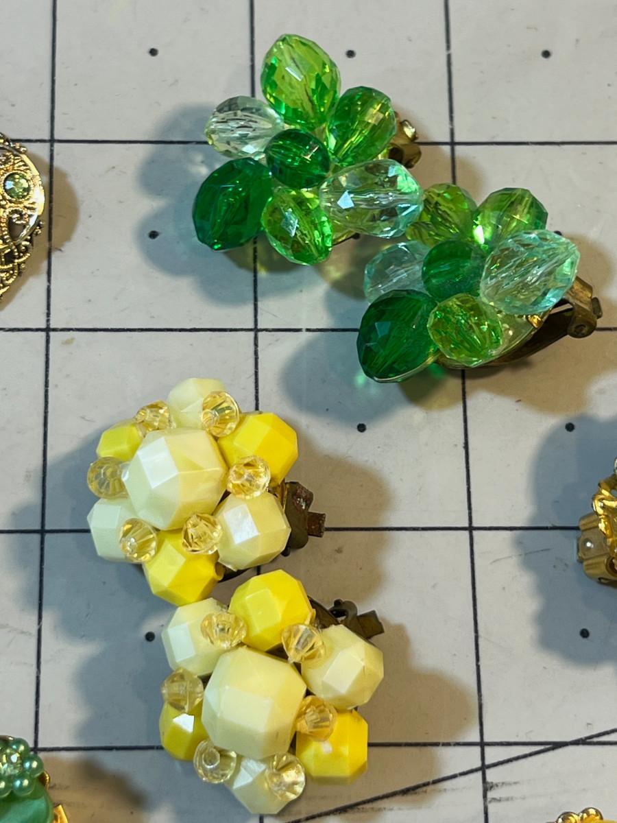 Grouping of Vintage Green & Yellow Toned Clip on Earrings