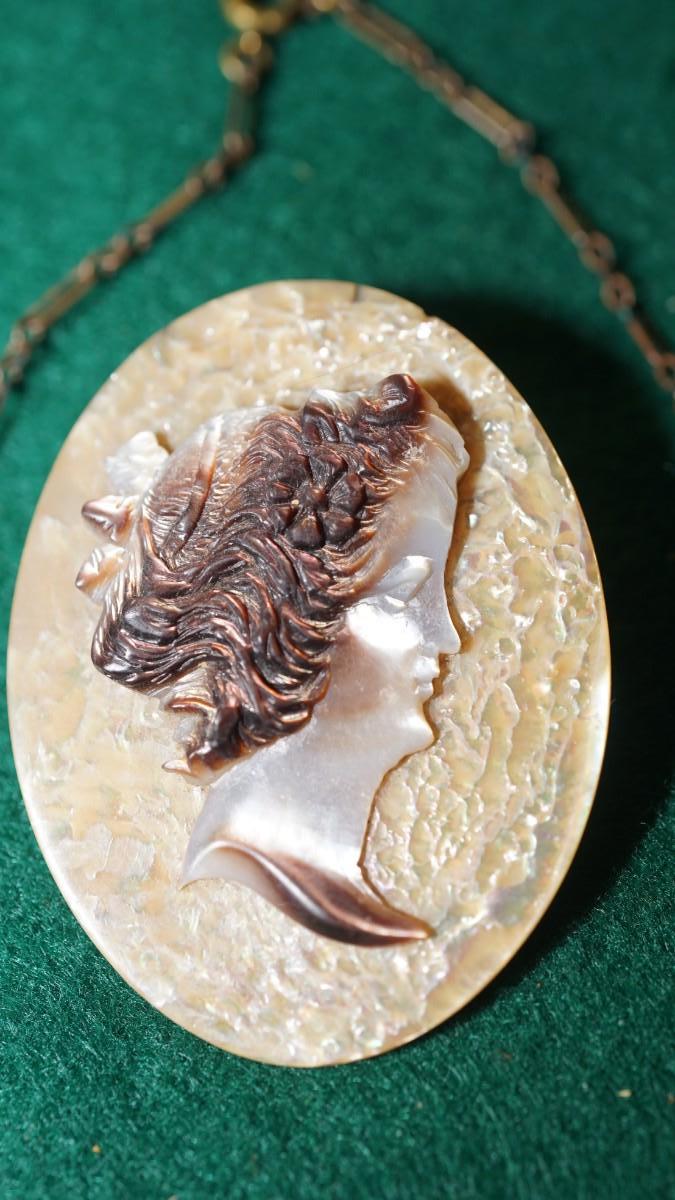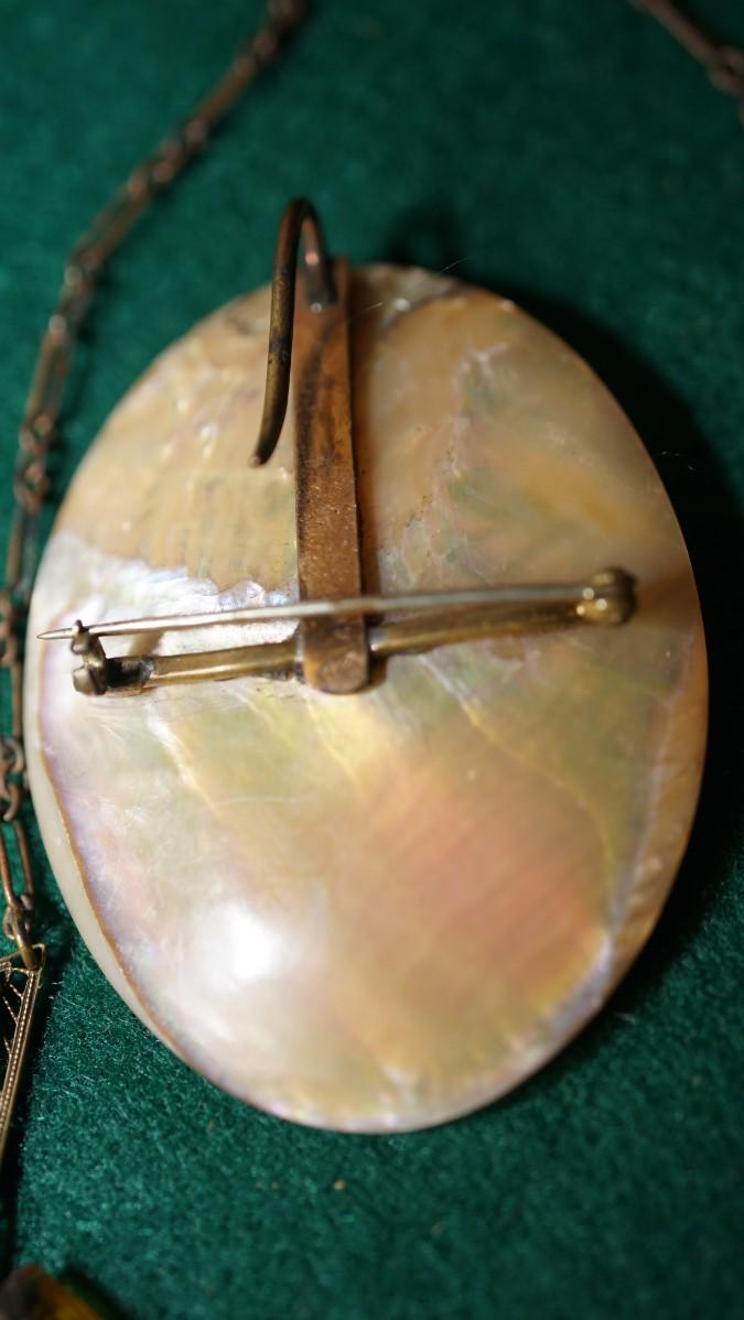shell on shell cameo pin or dress clip 2 1/2" by 2"