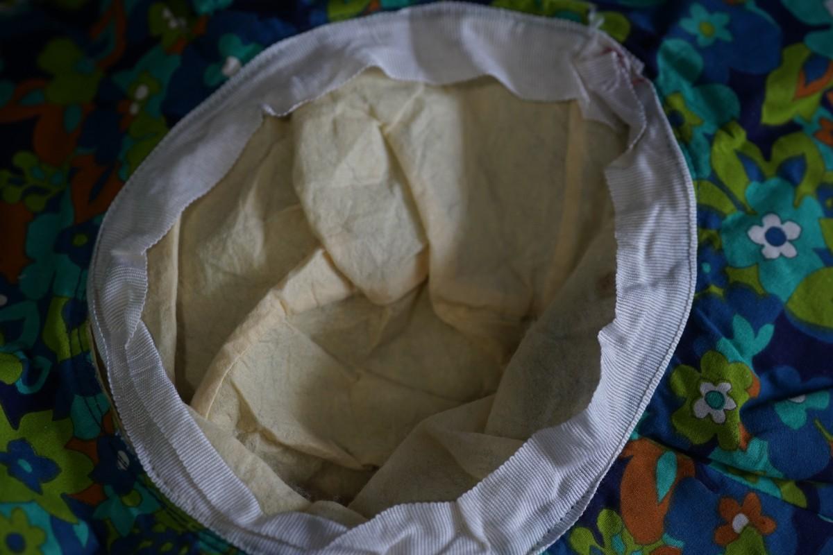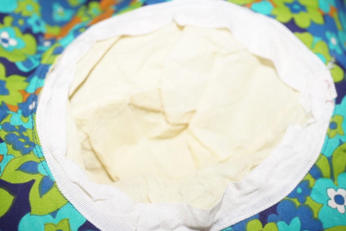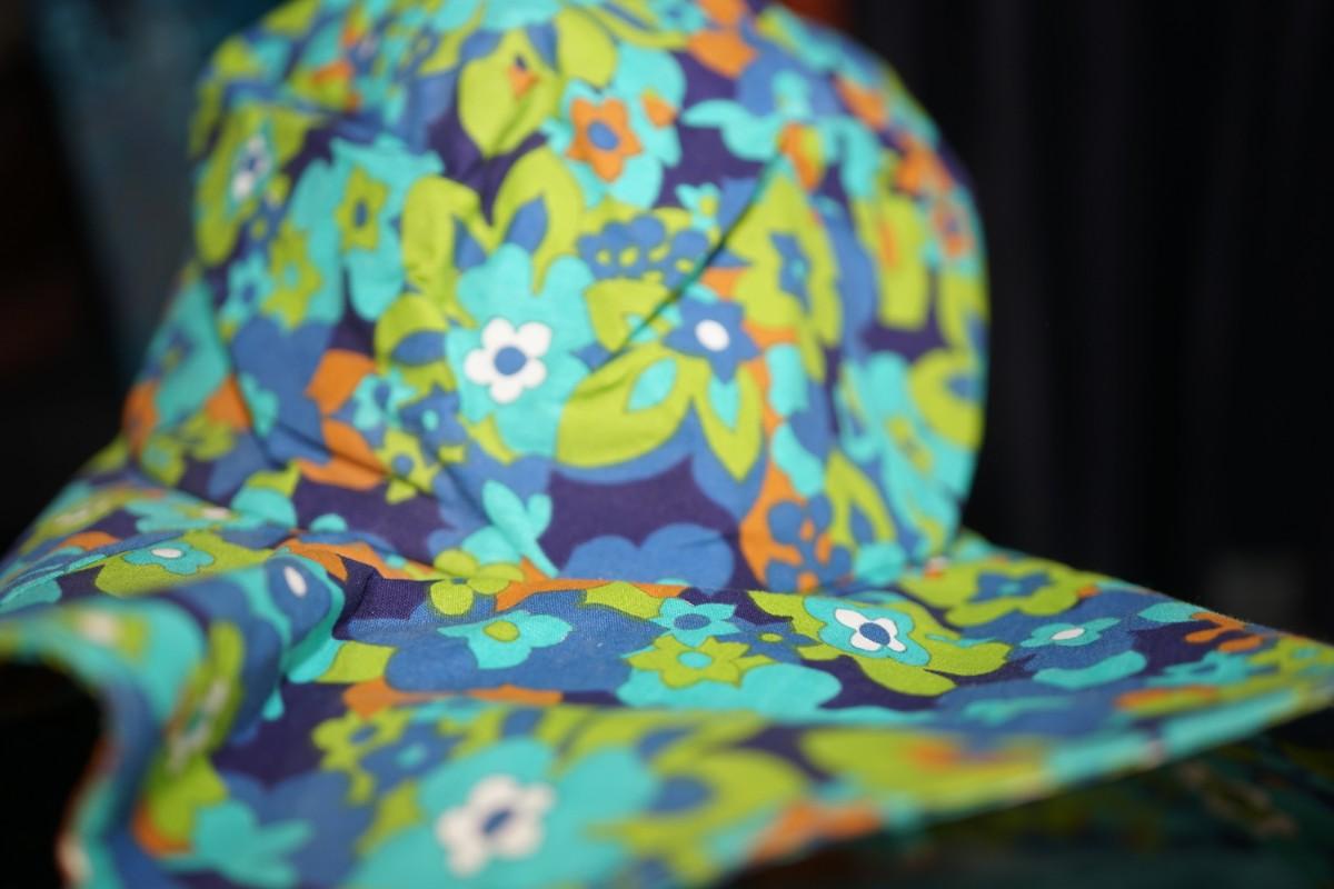 the beach hat is fun. Soft cotton fabric in the 1960's colors.