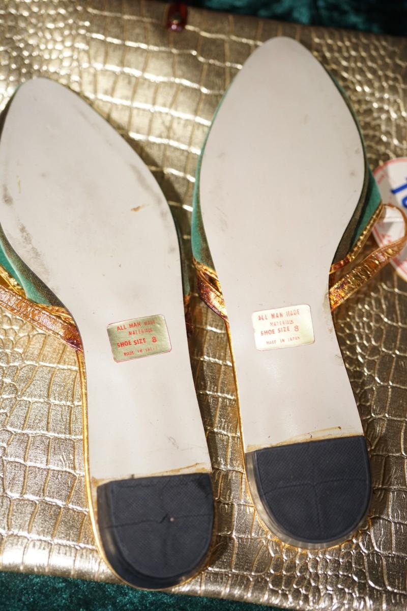 cute pair of slip on sandal shoes but these have been stored awhile so a bit stuff. May need to be stretched. It good condition and worn very little if at all. Size 7-71/2. Just for vintage show.