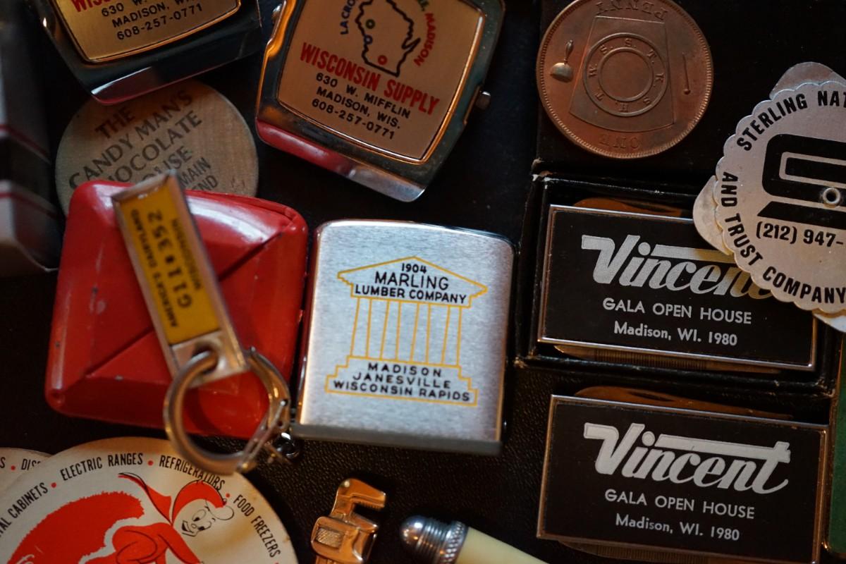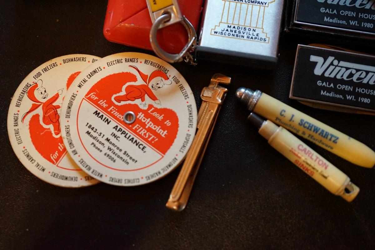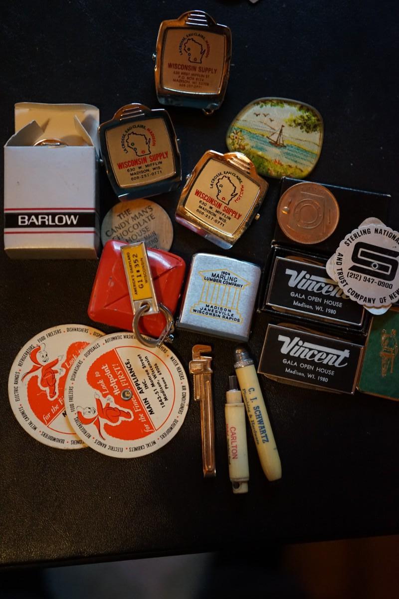 GROUPING OF VINTAGE MADISON ADVERTISING MAGNET CLIPS, GOLF PENCILS MORE