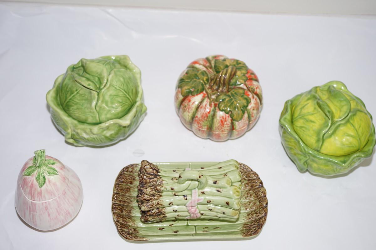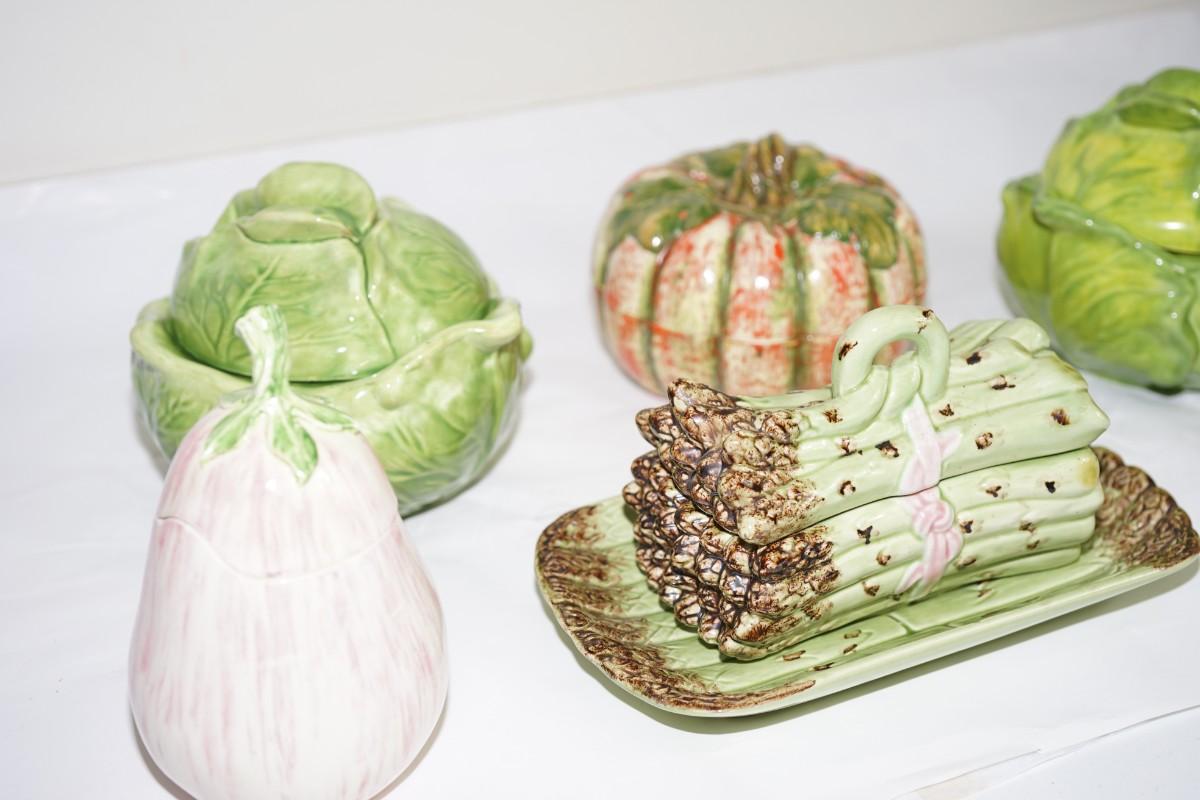 GROUPING OF WHIMSICAL QUALITY CRAFTED VEGETABLE CERAMIC SERVING PIECES