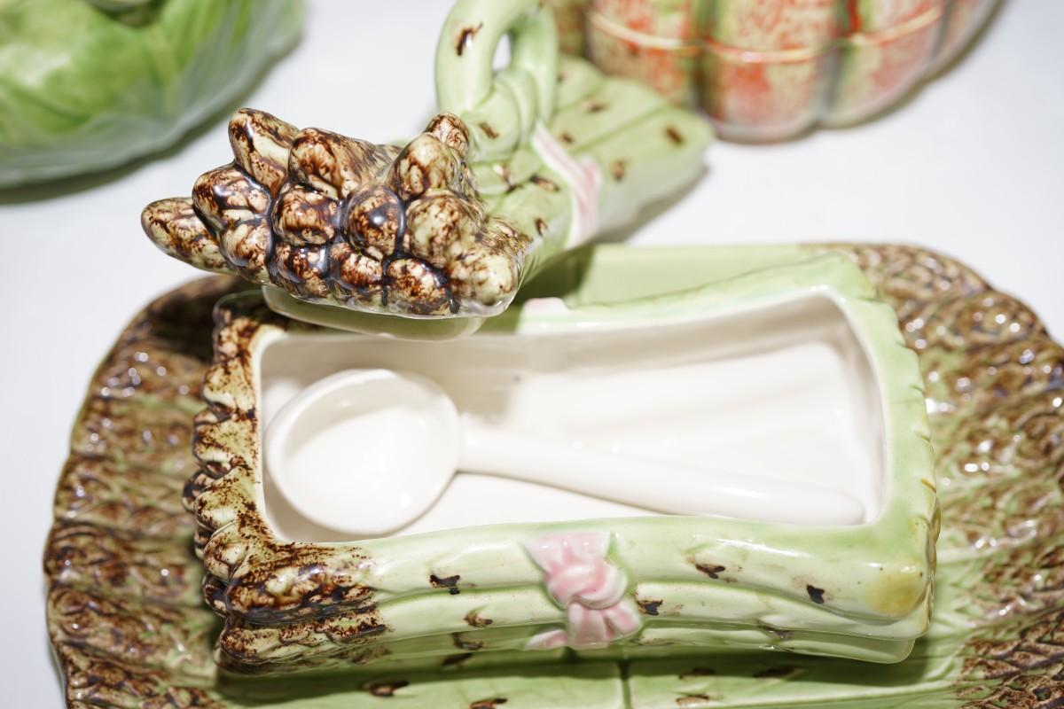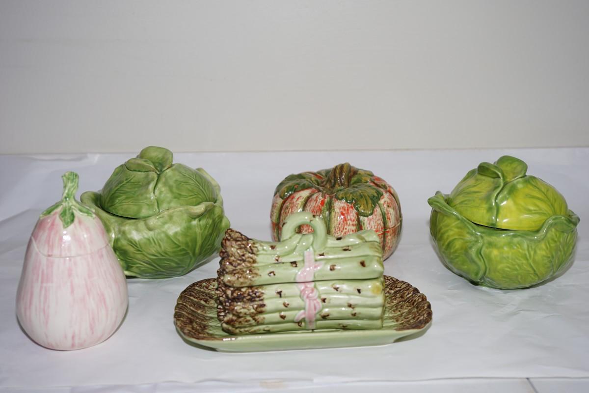 Grouping of very fine crafted glazed vegetable form serving dishes.