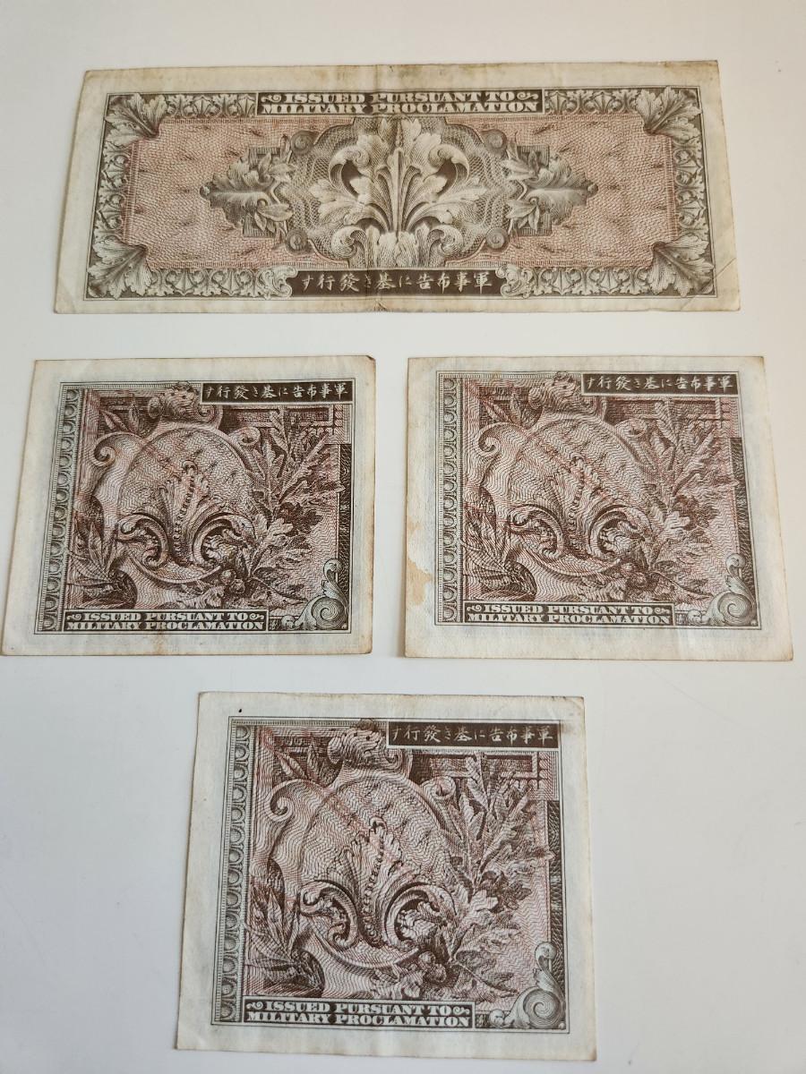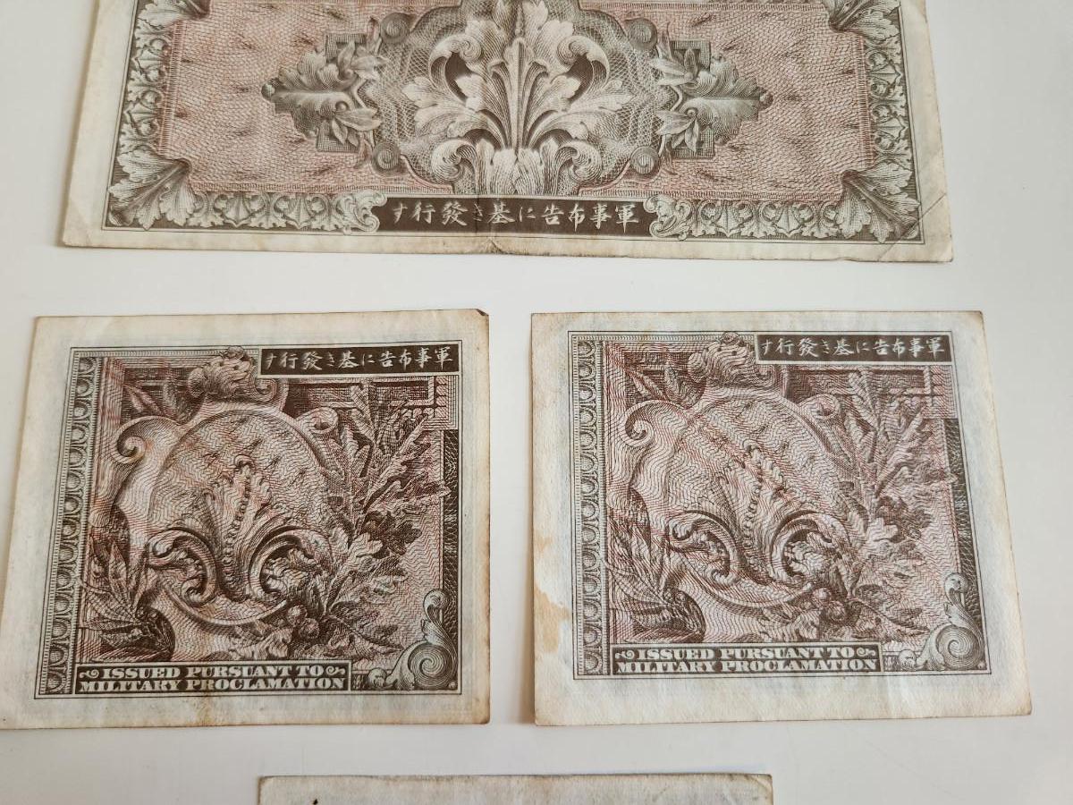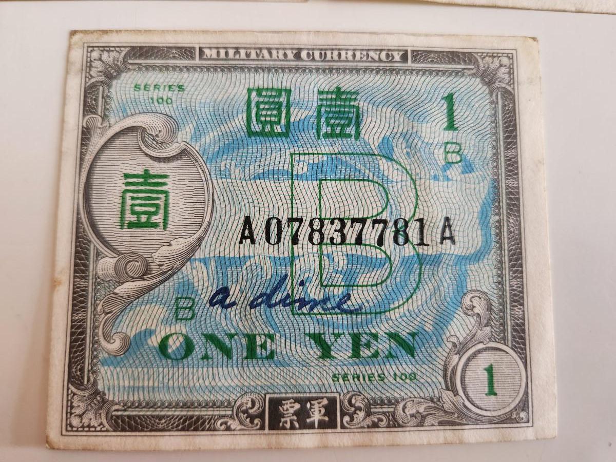 This lot is for a grouping of Vintage Military Currency Notes. Also called a "B yen" Note. Issued in 1945 by the Allied Powers during occupation of Japan after WW2. These notes were restricted for military use only. Someone has written in pen on each note its value at that time of useage. This item is KY sales tax-exempt.