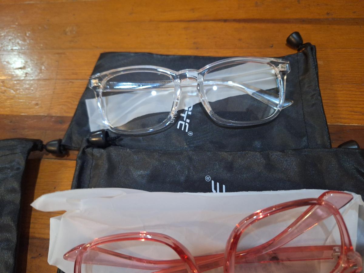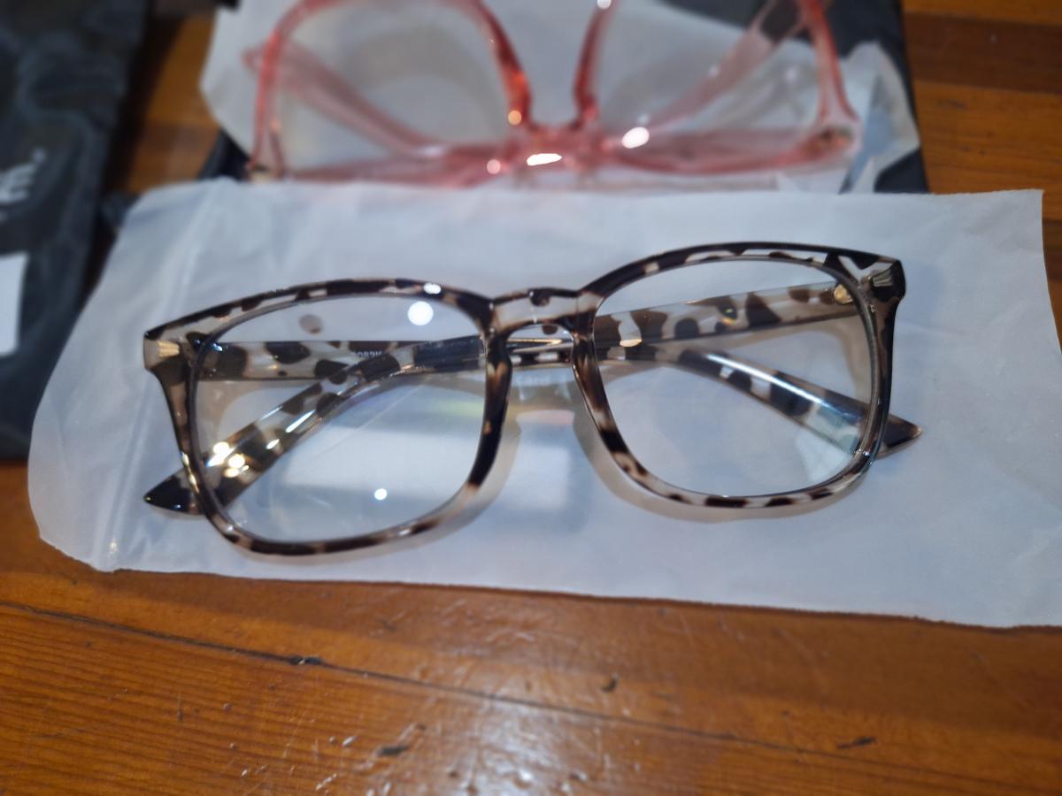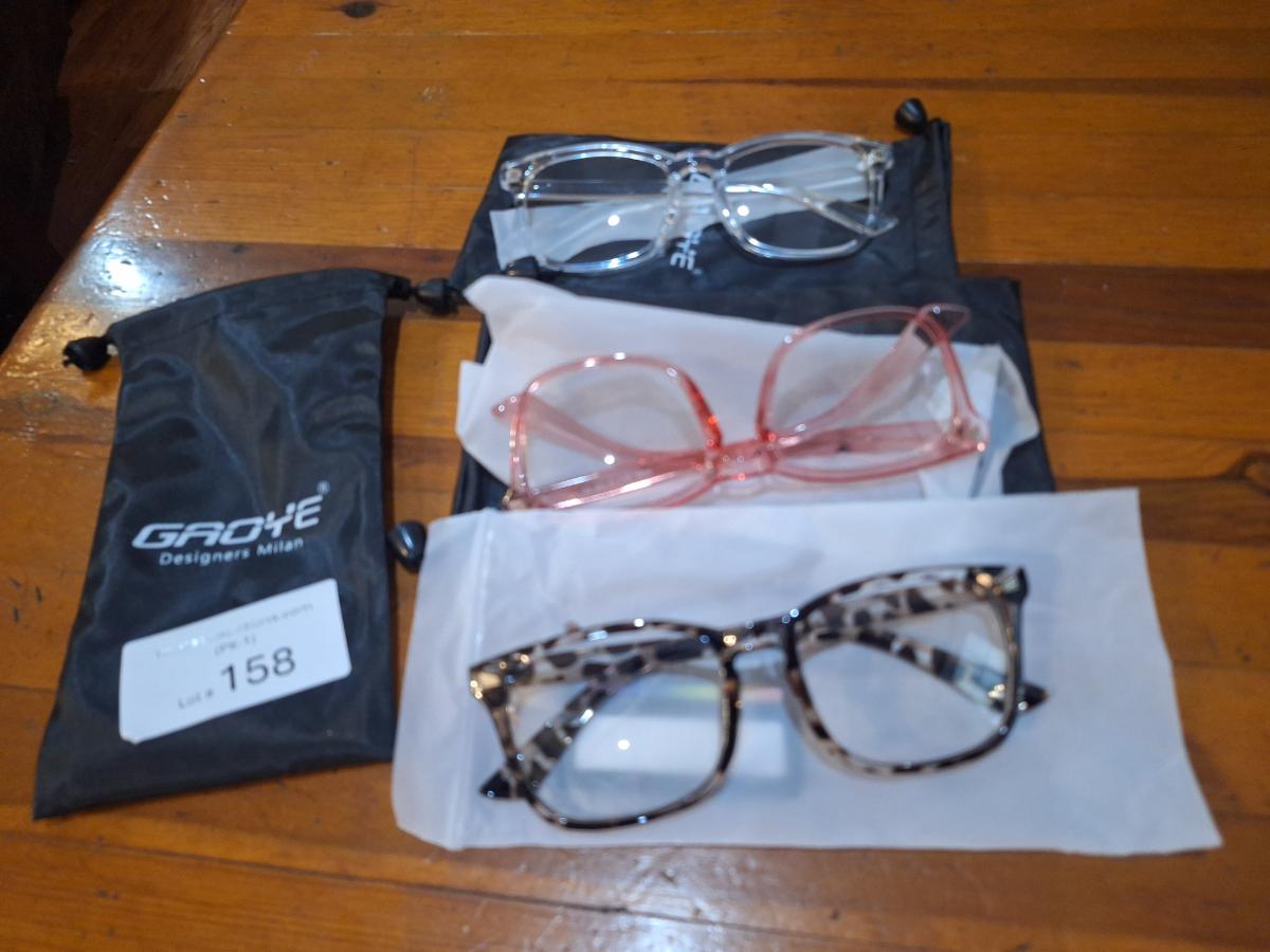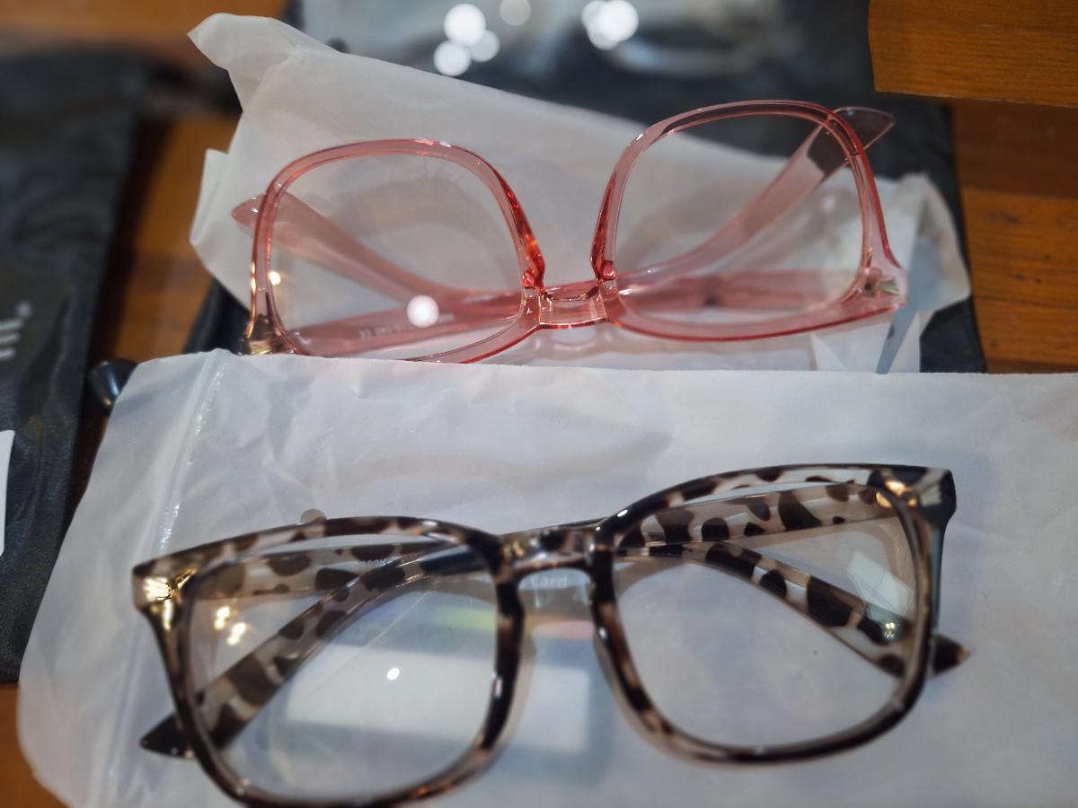 GROYE Designers Milan blue light blocking glasses in clear, pink, and leopard print frames.