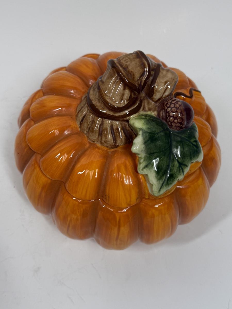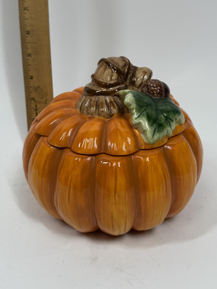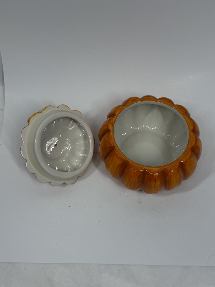 Vintage 2 pc Ceramic Pumpkin with lid Cookie Jar or Candy Jar by David’s Cookies
