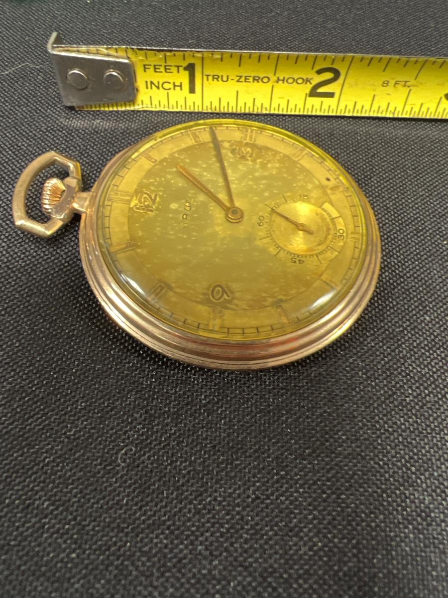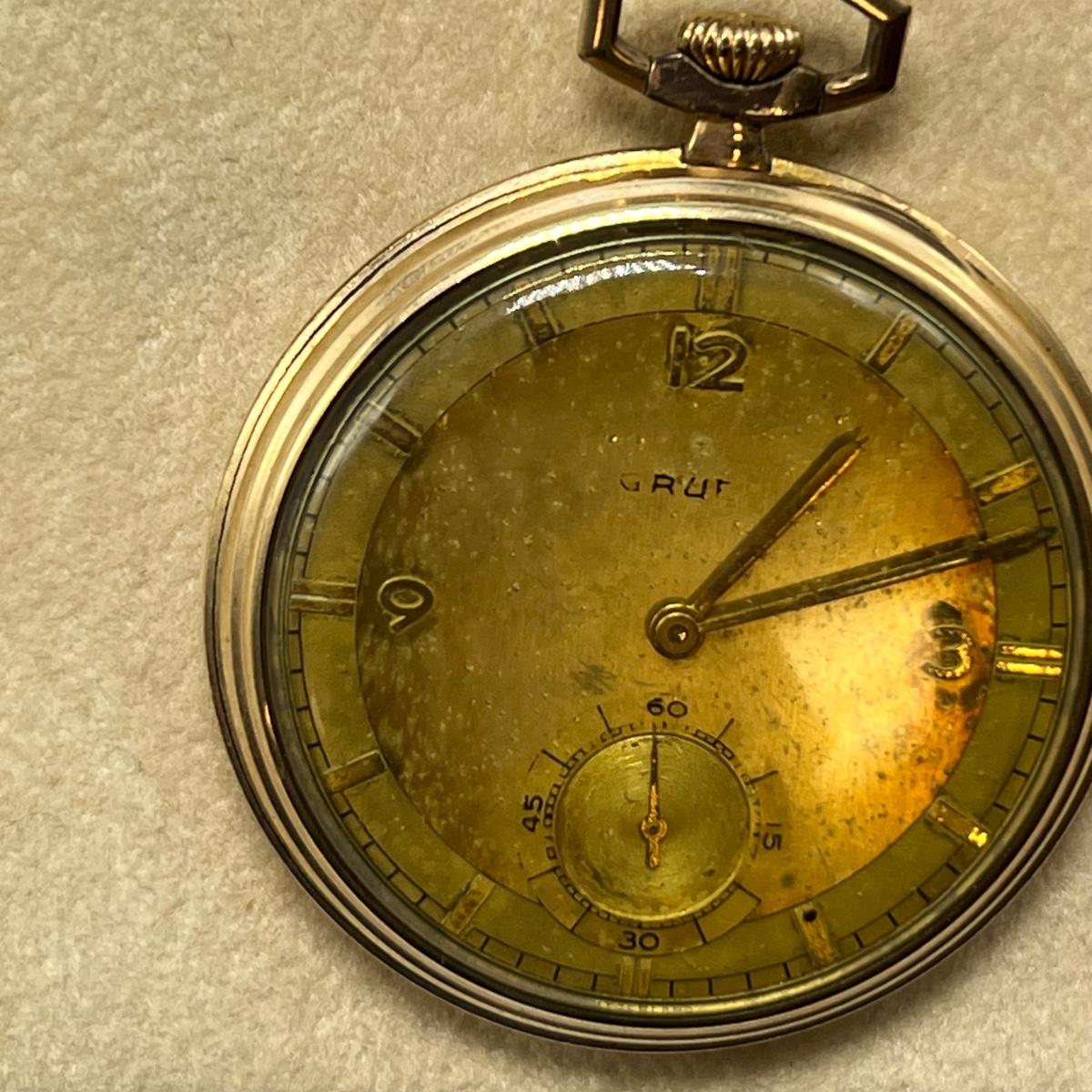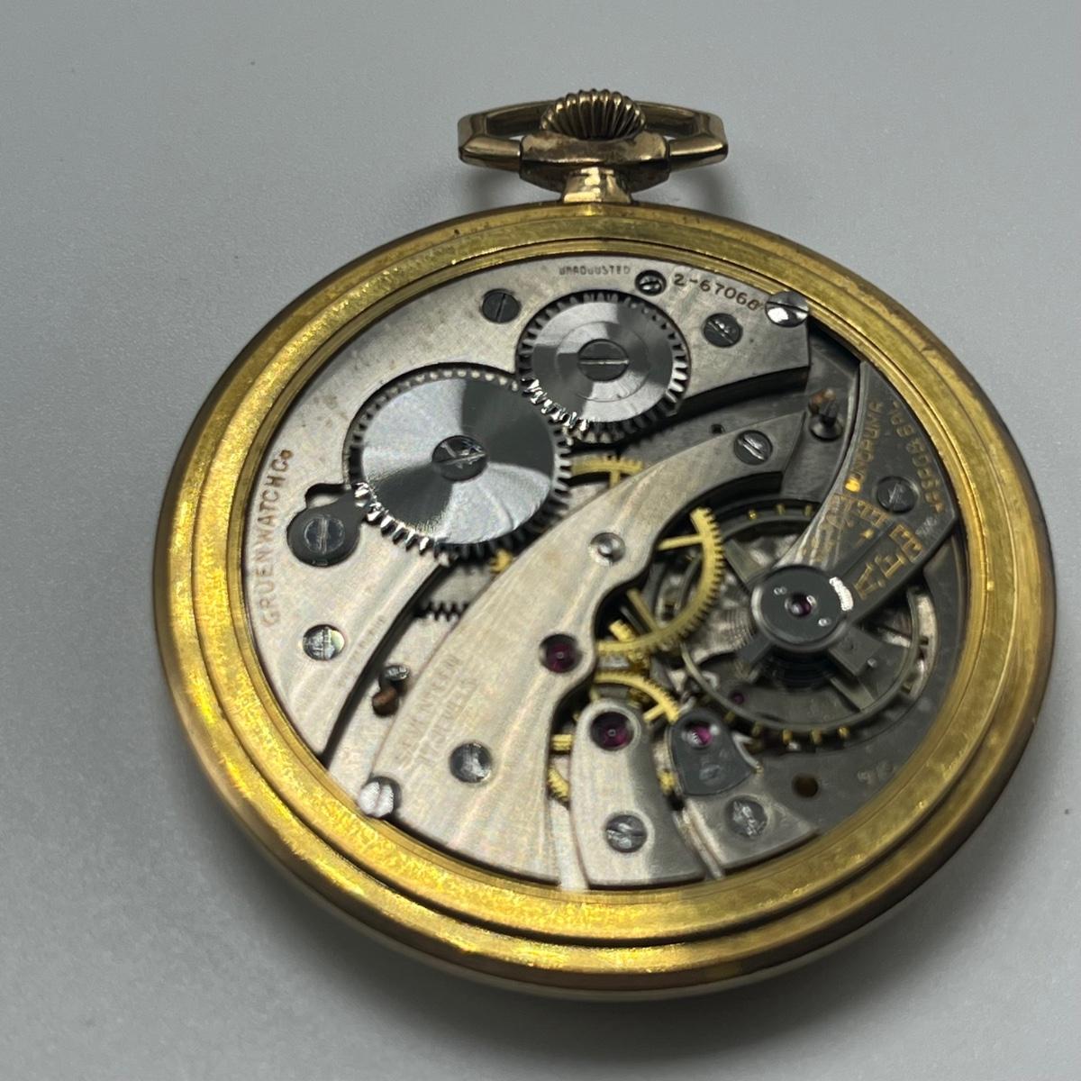 Lot into a Gruen 17 jewel 10k gold filled pocket watch. Watch worked when wound. All sales are final. No returns or refunds. Please bid accordingly.