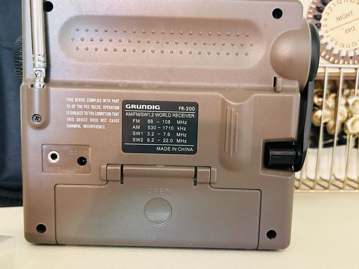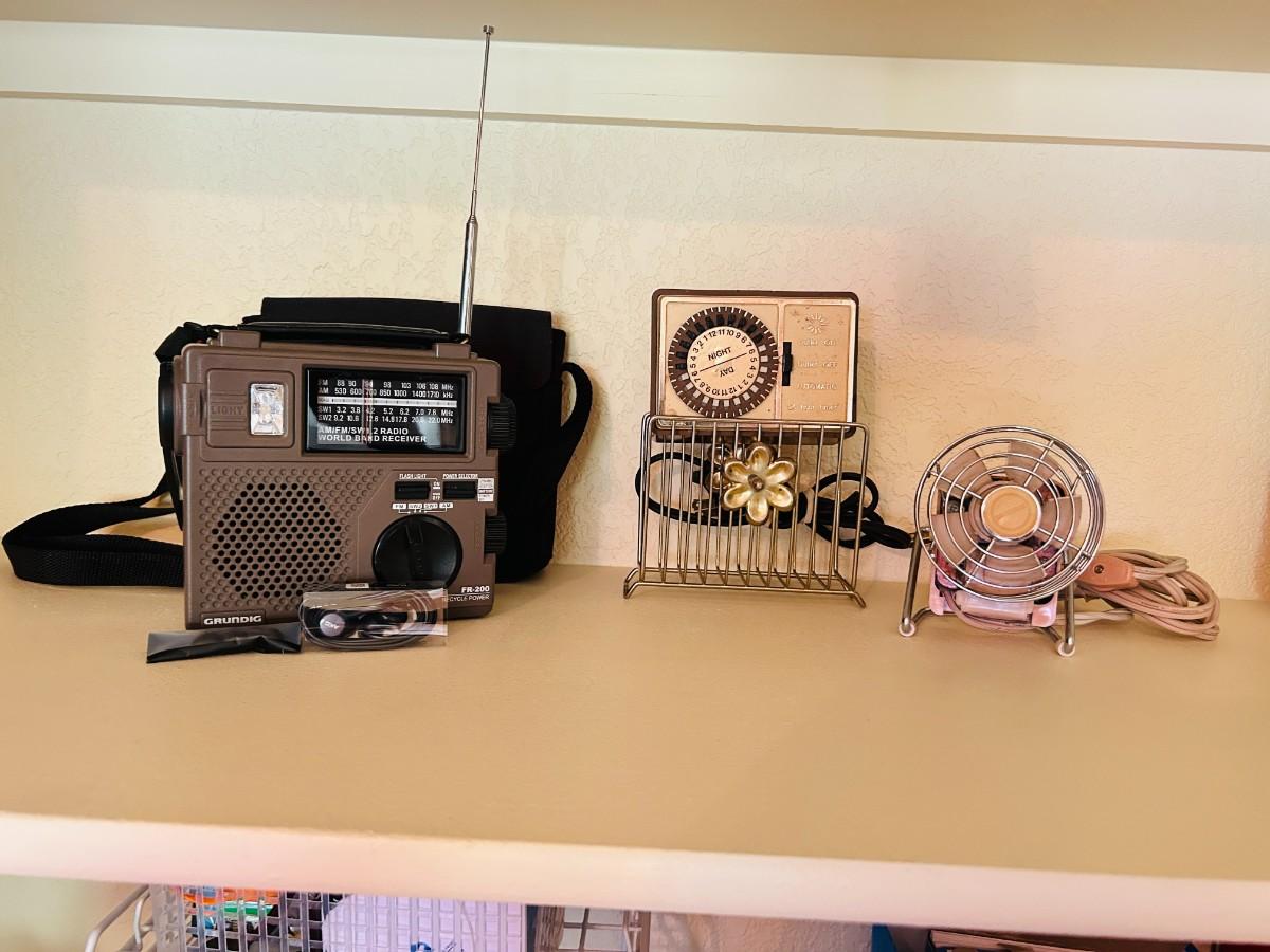 GRUNDIG FR200 AM/FM SHORTWAVE RADIO, VINTAGE MINI FAN, ELECTRIC 24HR TIMER, & PAPER/NAPKIN HOLDER
