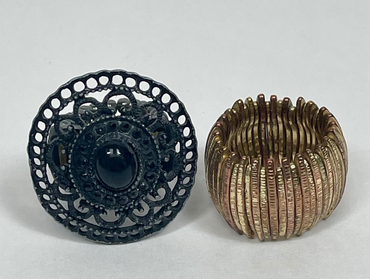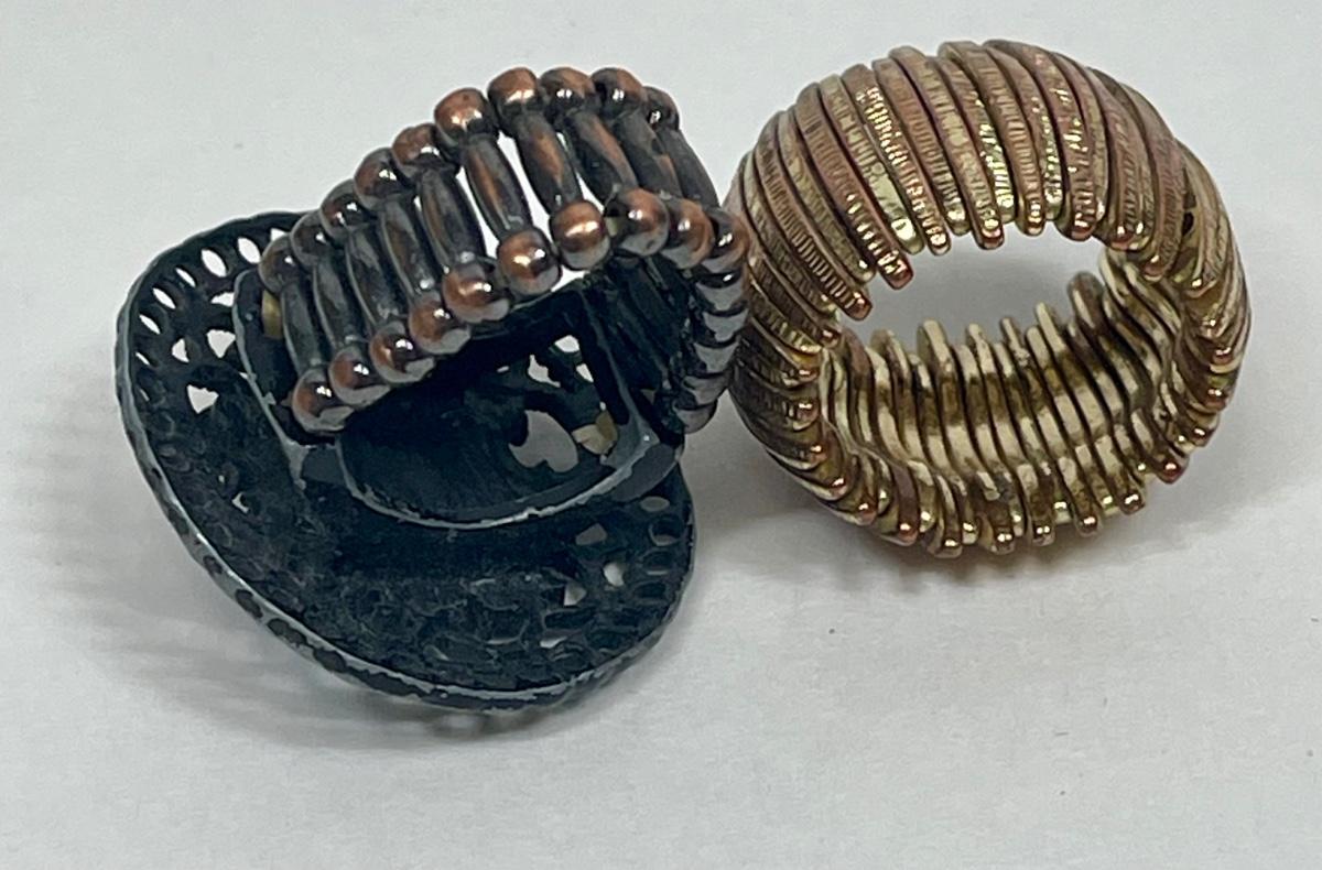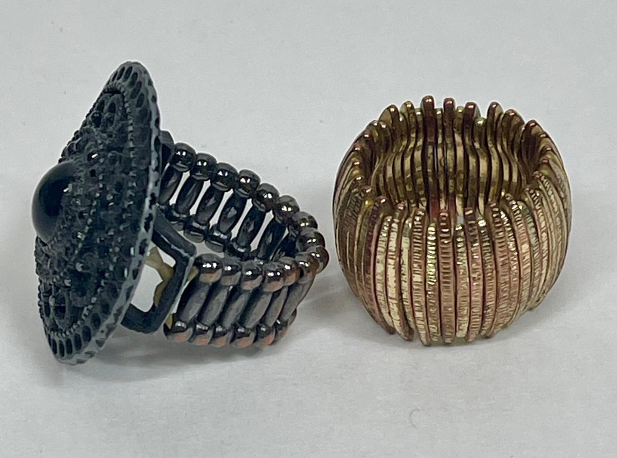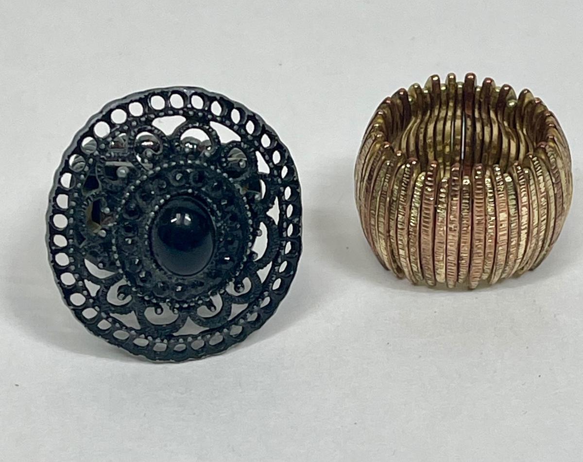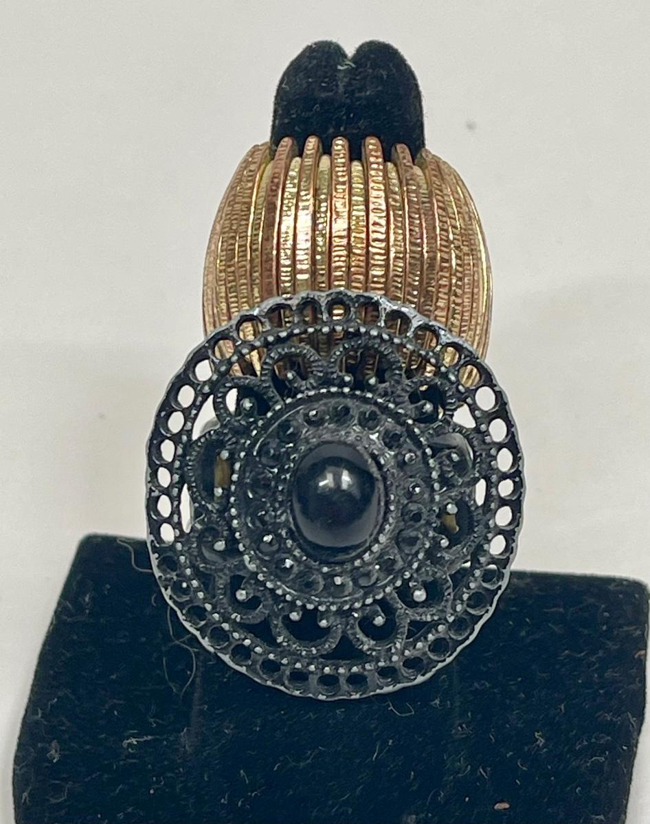 Vintage Rings - Gold tone stretch ring and Black Sundial stretch Ring