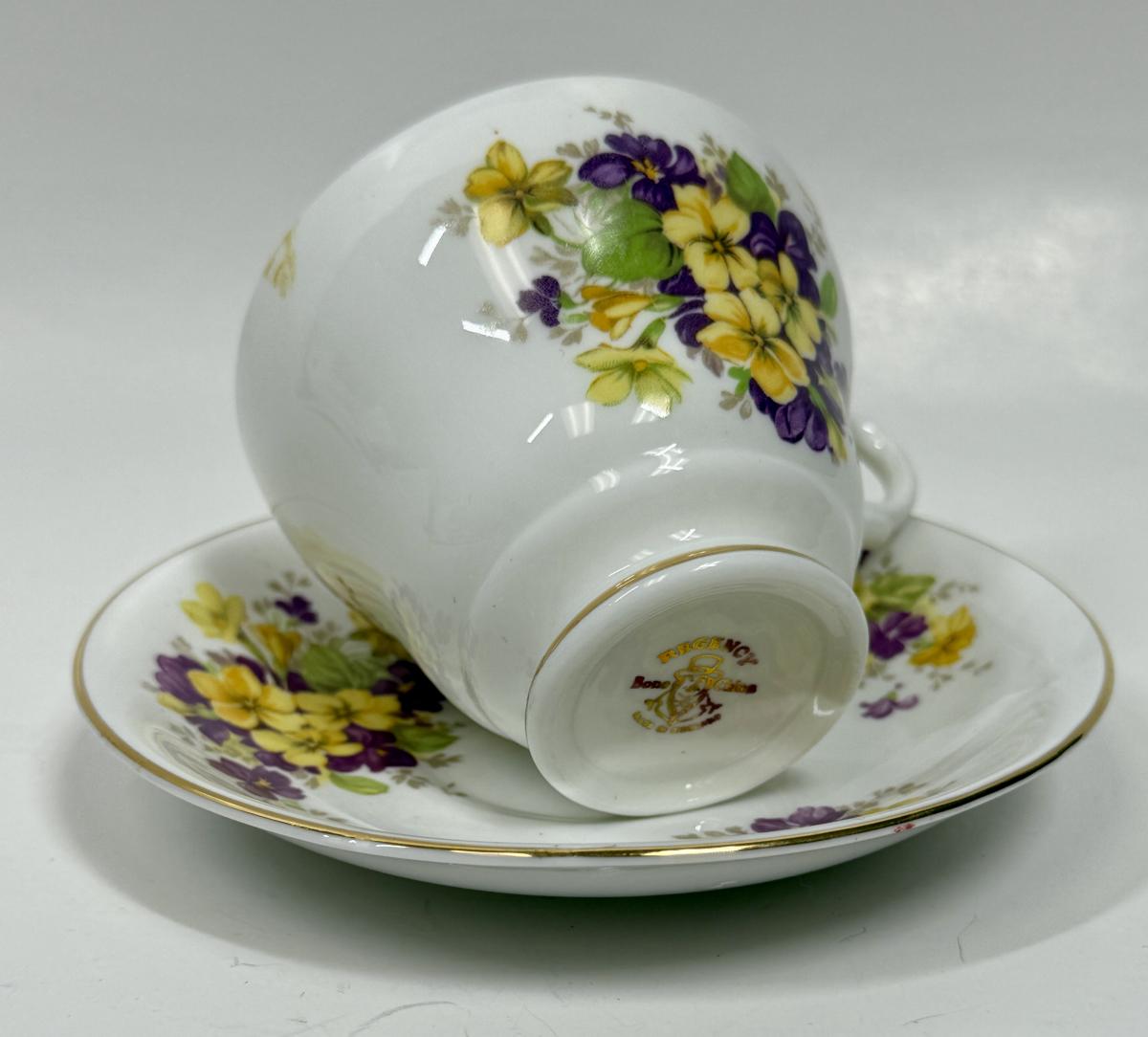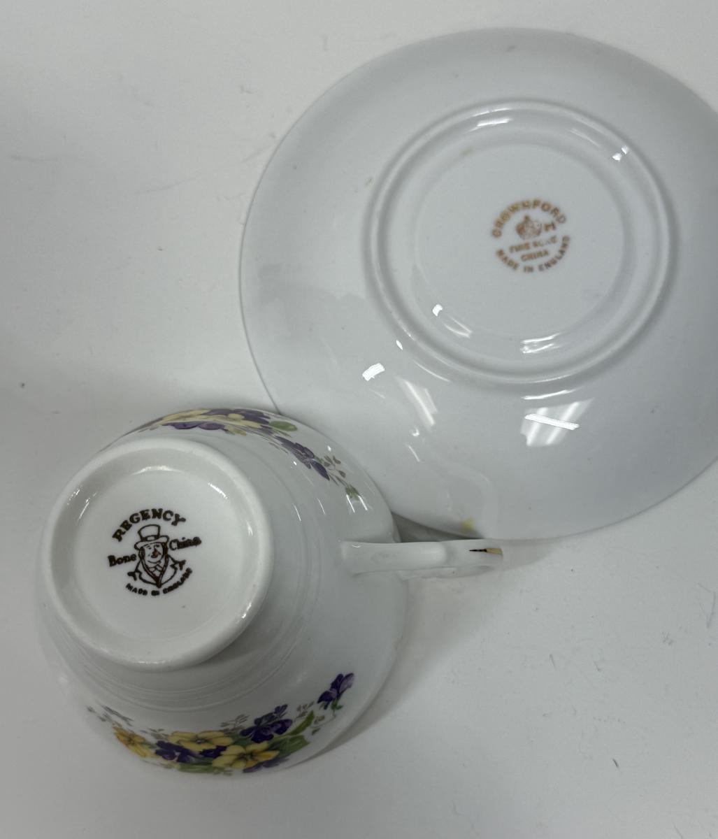 Teacup by Regency, Saucer by Crownford. Pattern, colors and style are a match. Good condition.