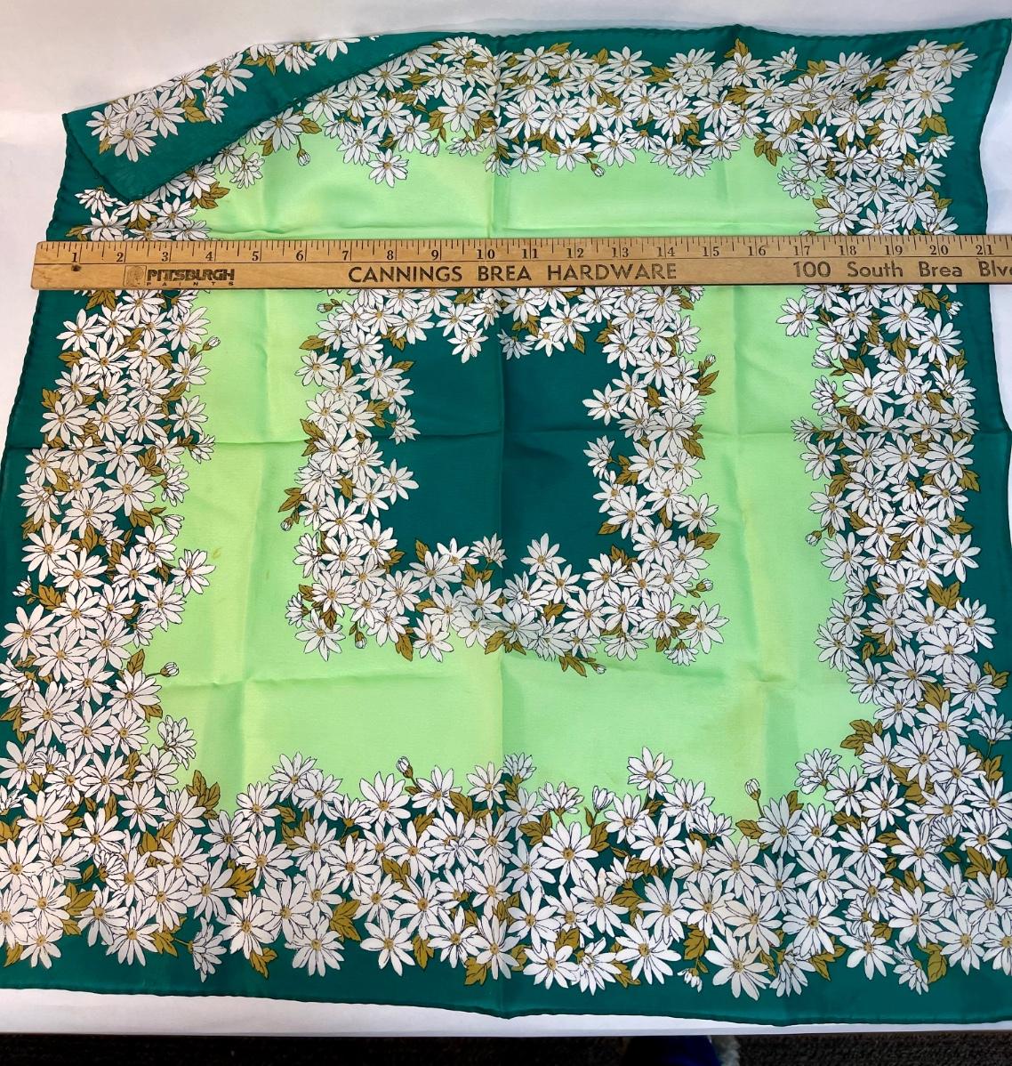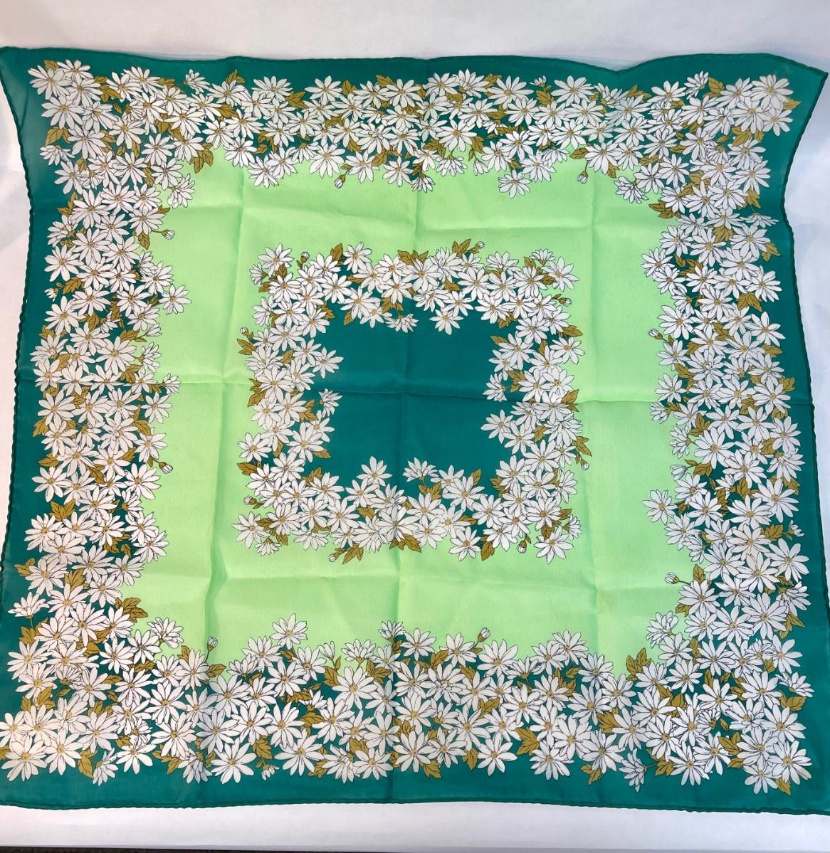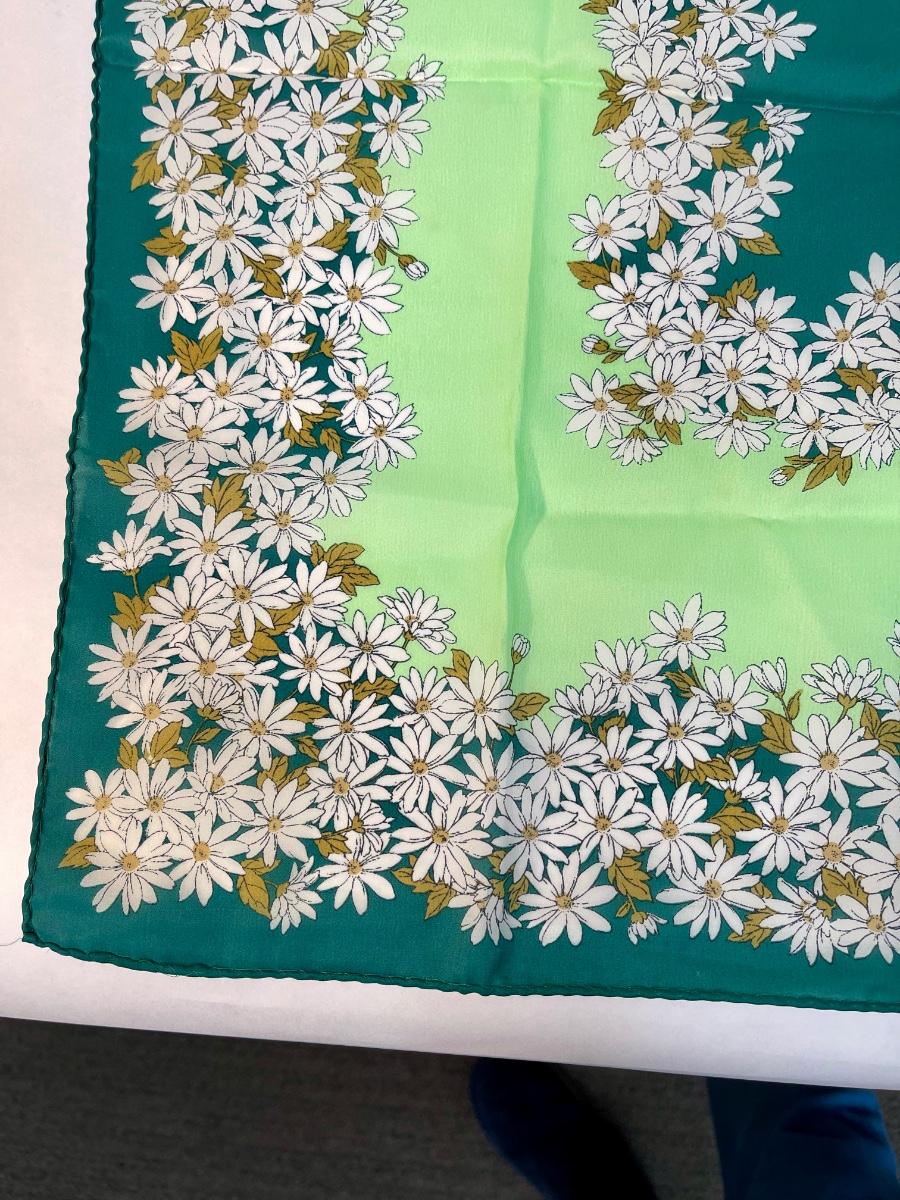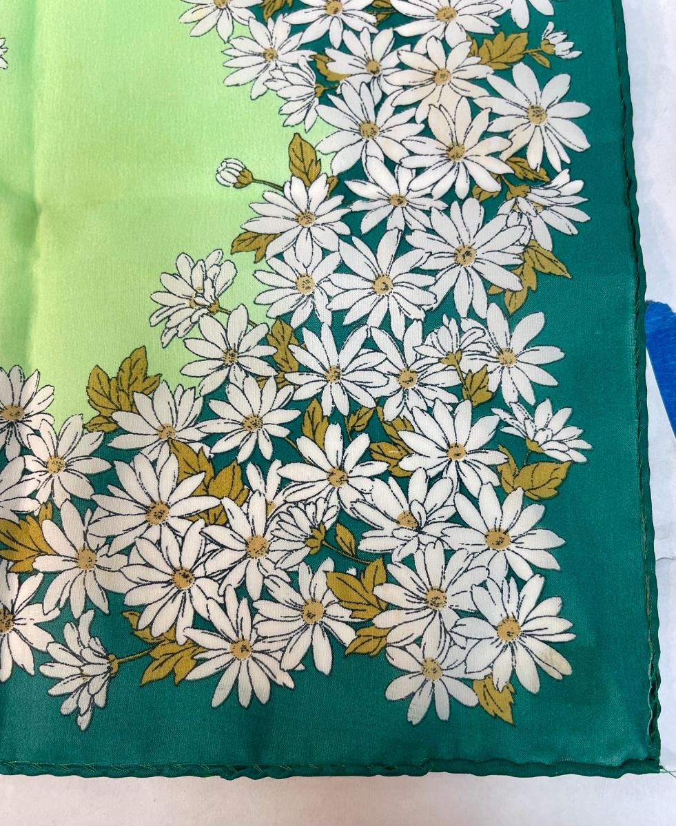 Vintage Scarf green with white daisies