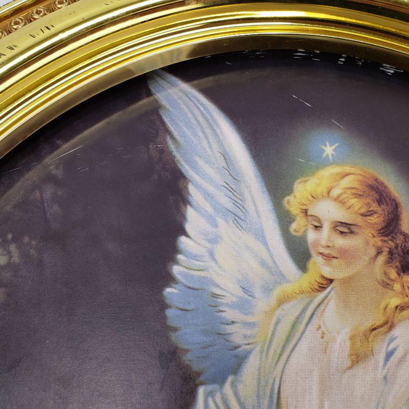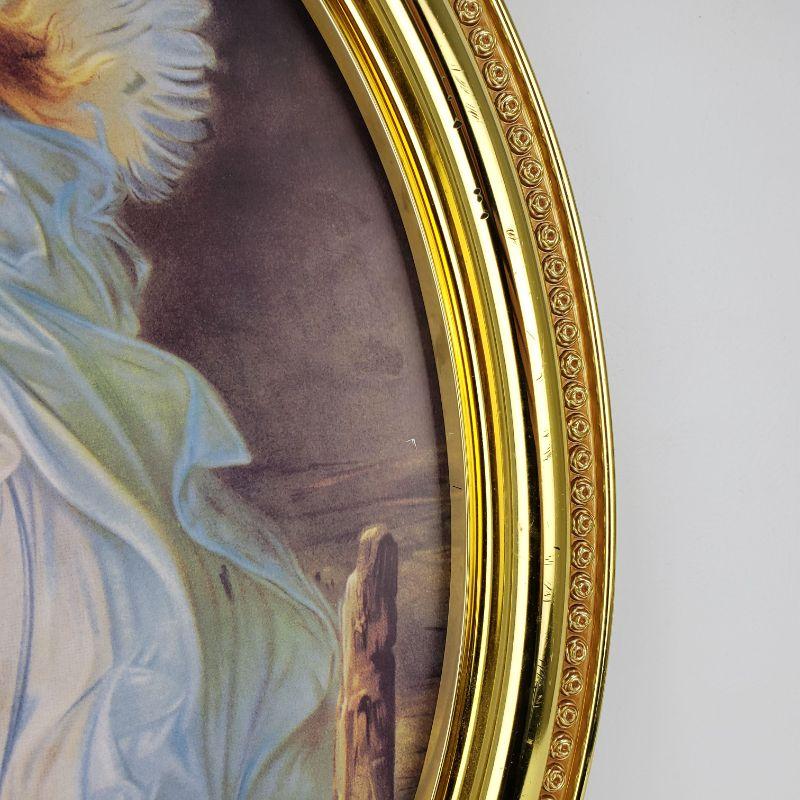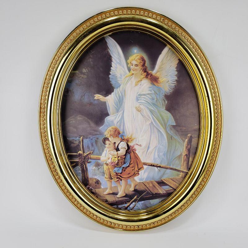 Guardian Angel Wall Art Print in Gold Colored Frame - Oval