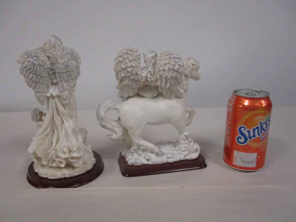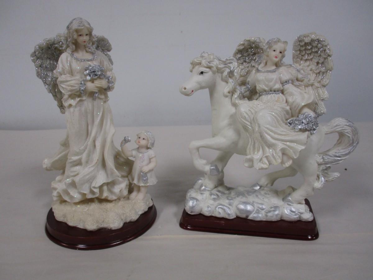 Guardian Angel With Child and Horse Angel Figures