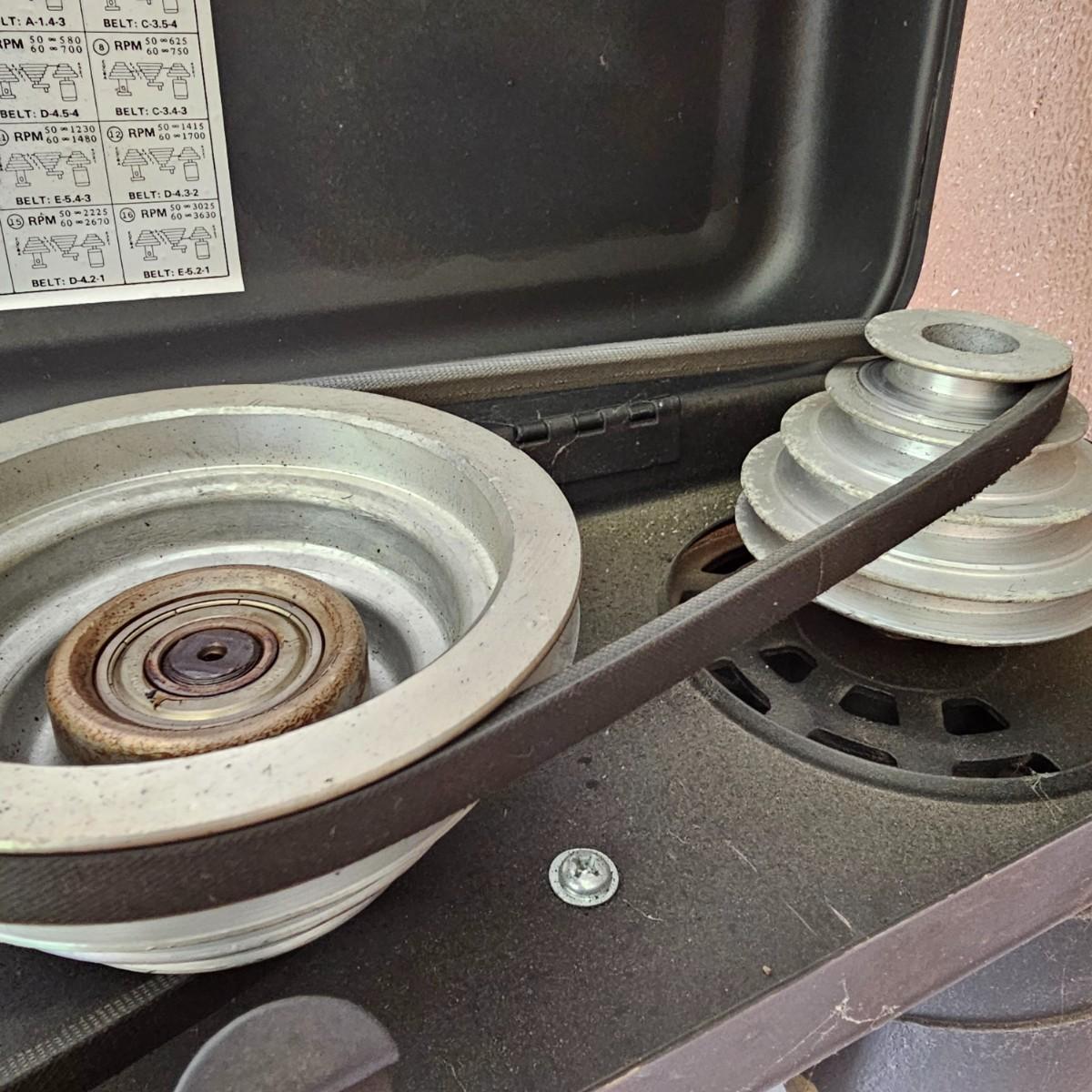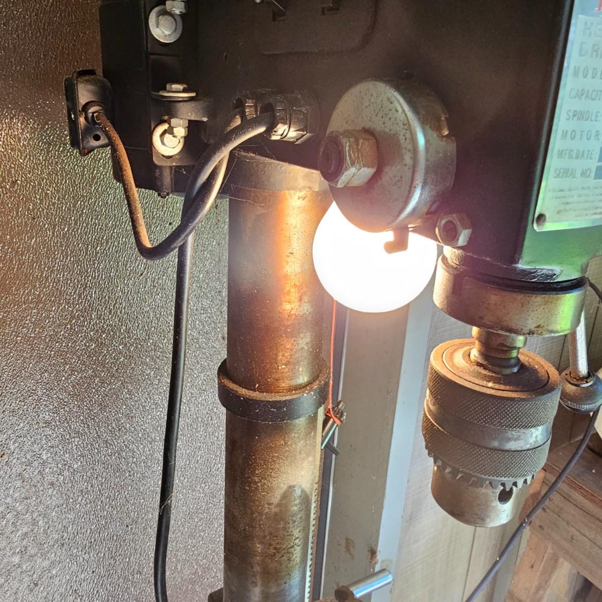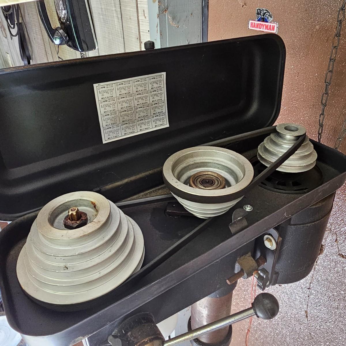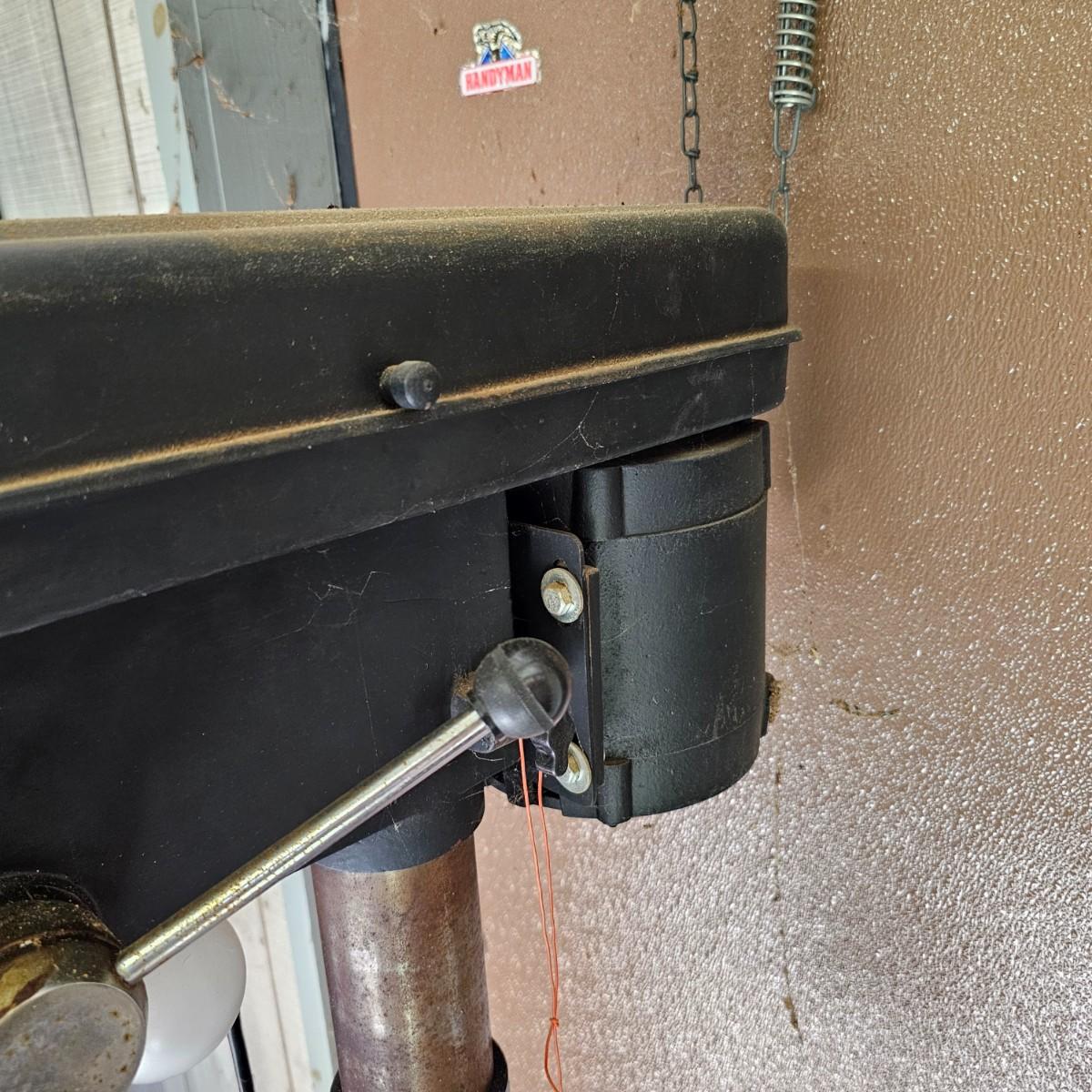 16 speed floor standing heavy duty drill press by Guardian Power. Unit has cast-iron base, ratcheting handle adjust for drilling table, 5/8" chuck with key and comes with a #4 table vise for holding objects while drilling. 3/4hp motor with multi position belt drive for speeds. Unit measures 14" x 23" x 64"H, has light and powered on when plugged in. See photos for details.
