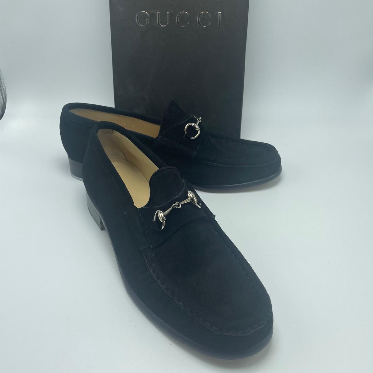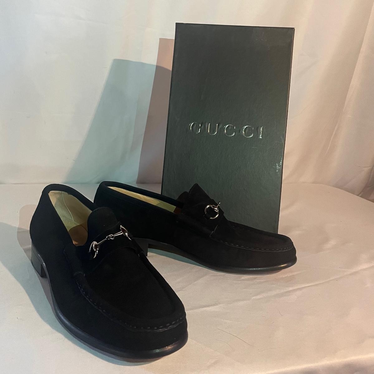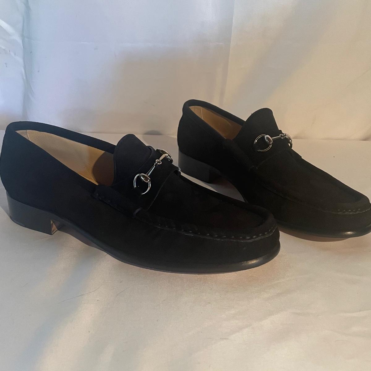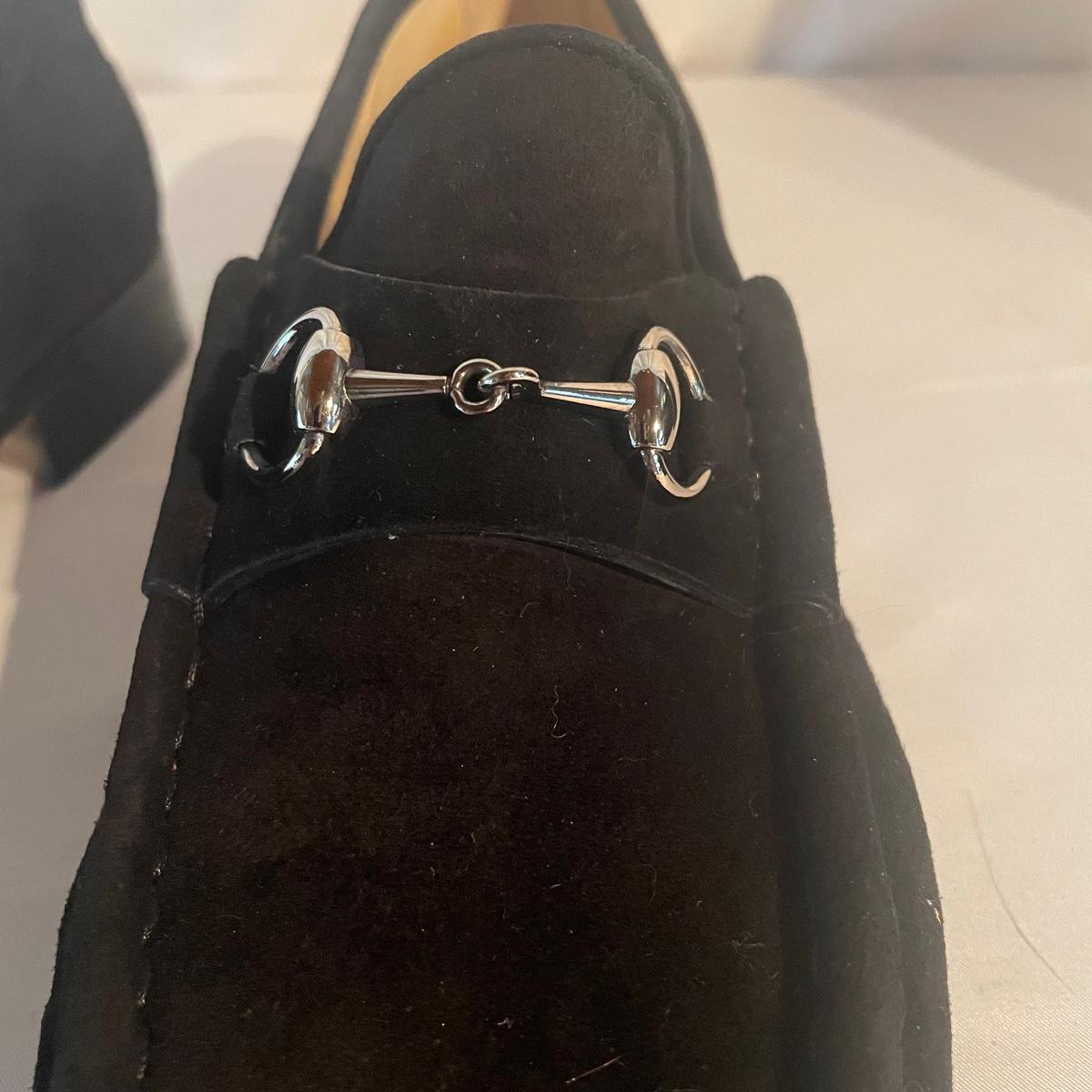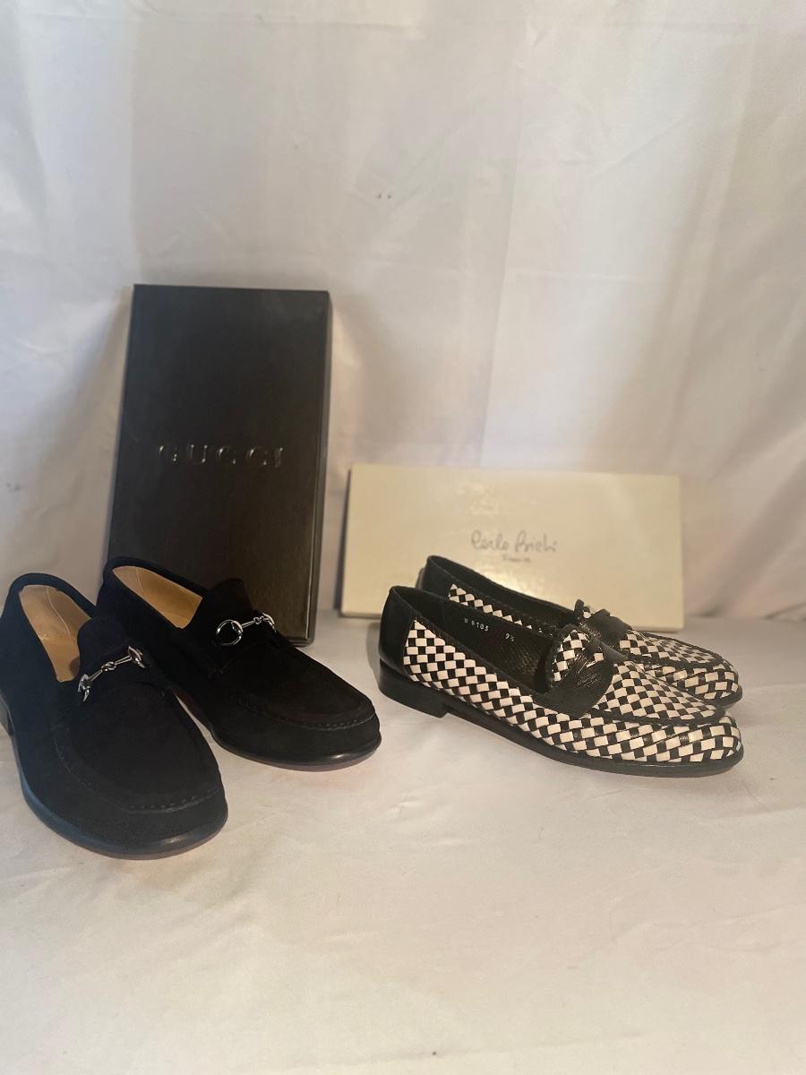 Two pairs of ladies designer shoes made in Italy. The Gucci shoes are size 10, black suede with silver colored snaffle bit embellishments, they are in near new condition. The Carlo Richie shoes are in great condition and are size 9.5. Both come with boxes.