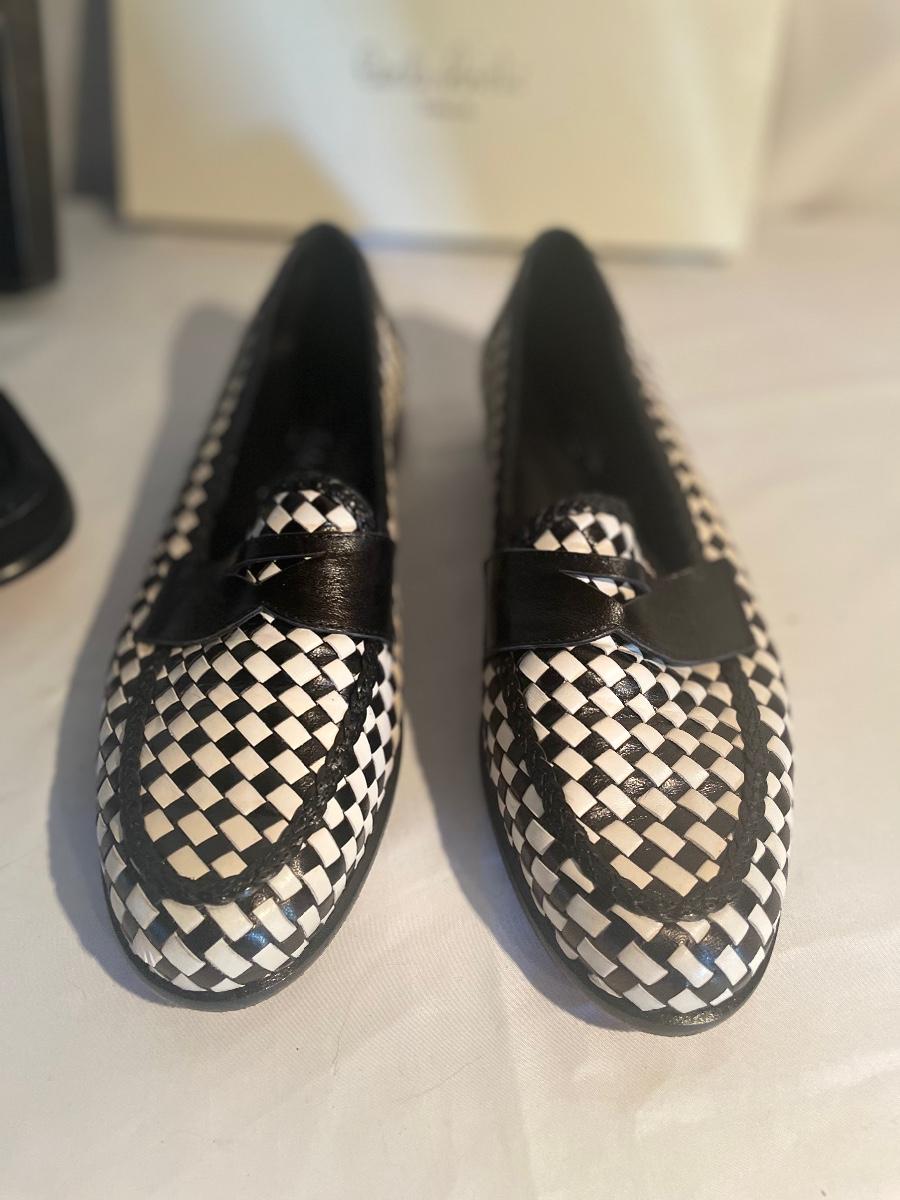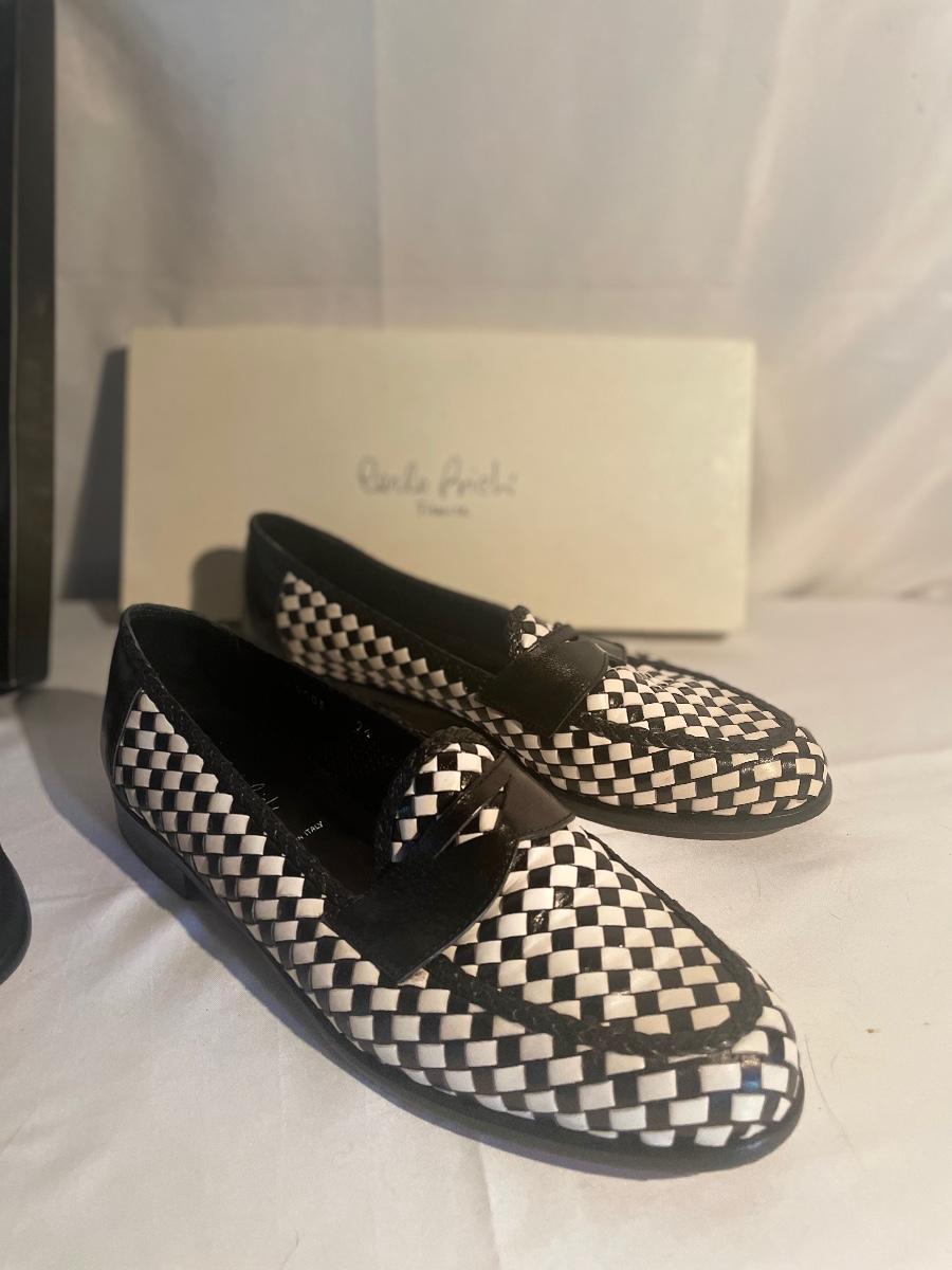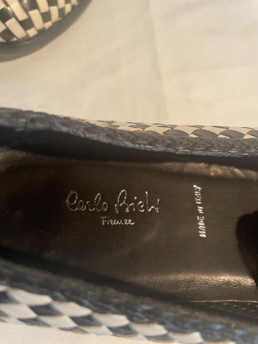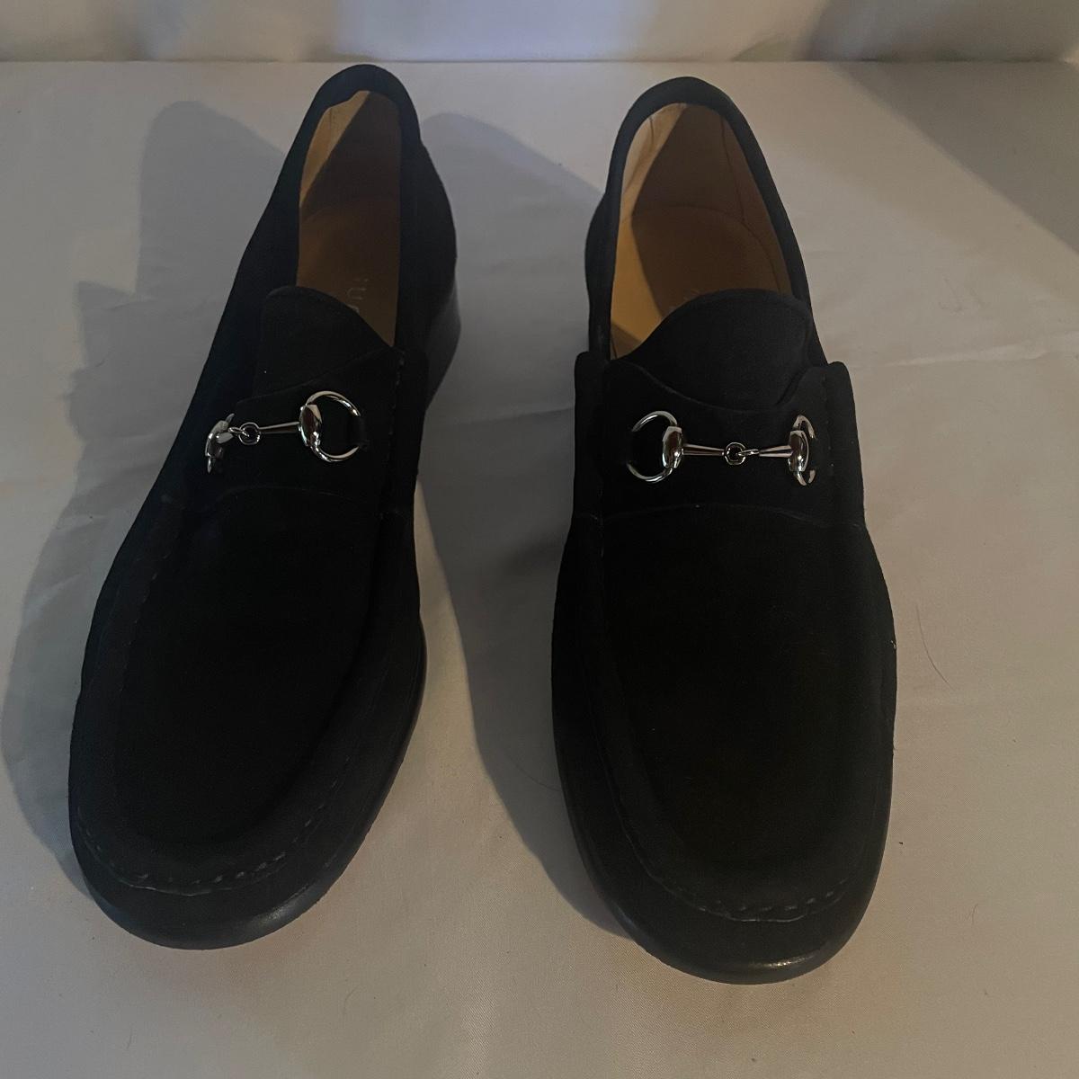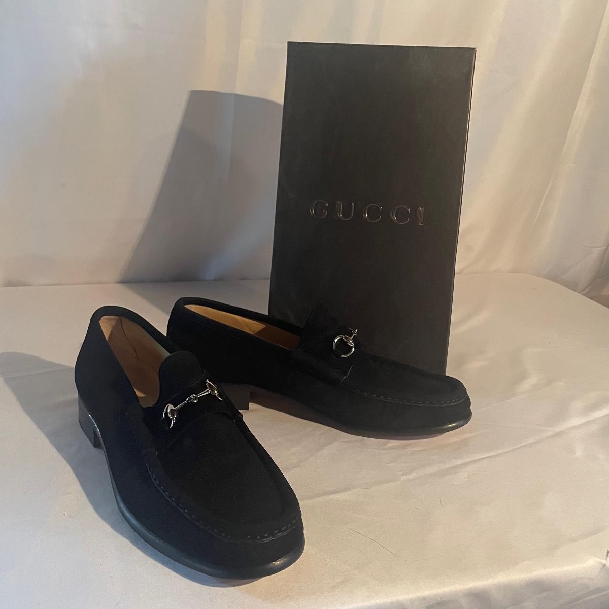 Two pairs of ladies designer shoes made in Italy. The Gucci shoes are size 10, black suede with silver colored snaffle bit embellishments, they are in near new condition. The Carlo Richie shoes are in great condition and are size 9.5. Both come with boxes.