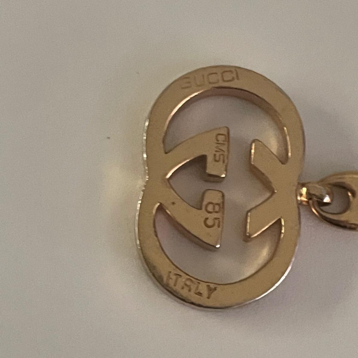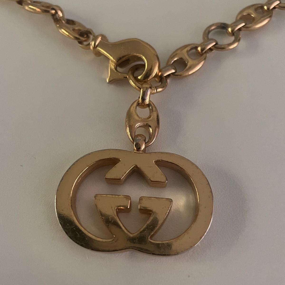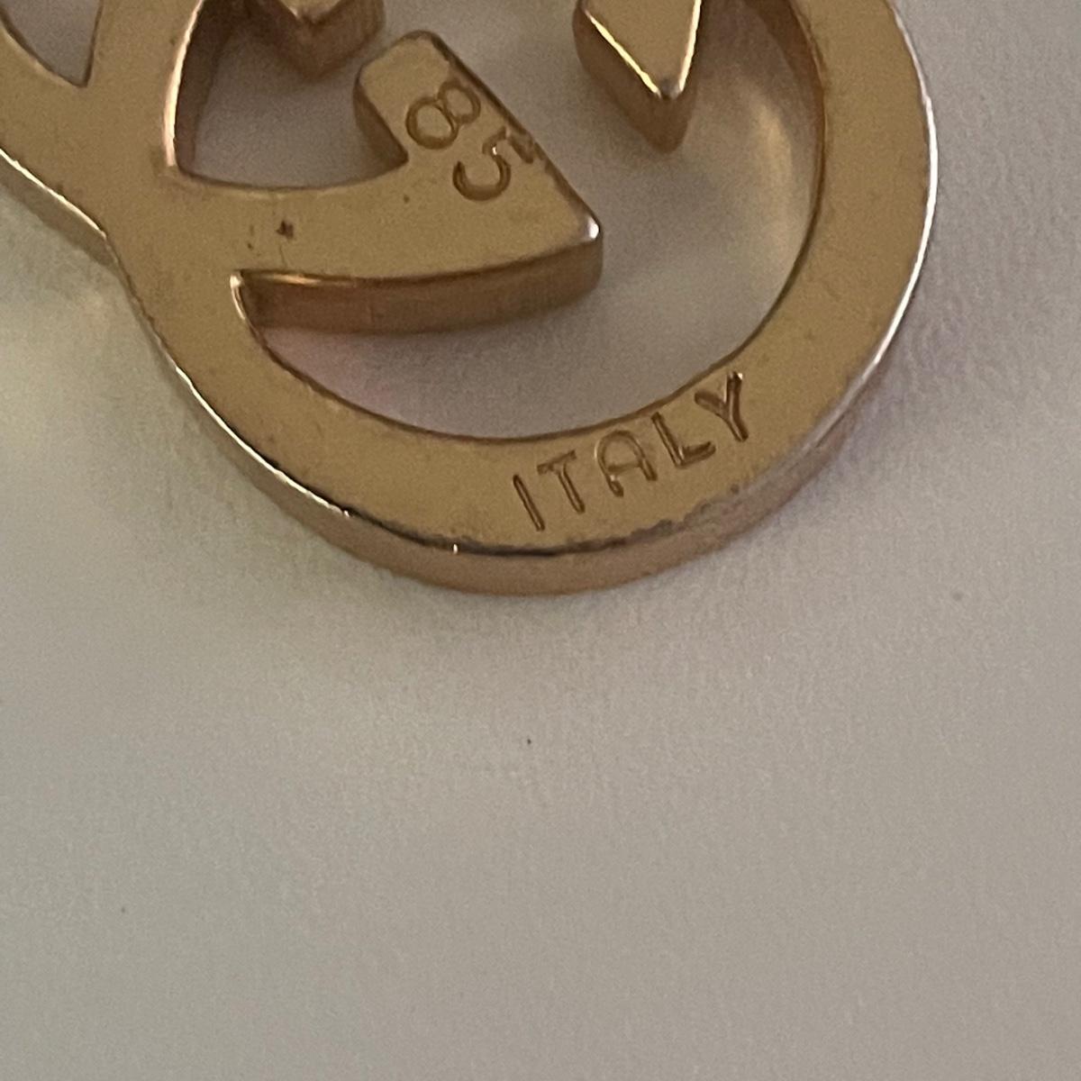 This 40” gold colored belt is in good condition. Although we cannot verify it’s authenticity, it does have Gucci and Made in Italy manufacturers markings.