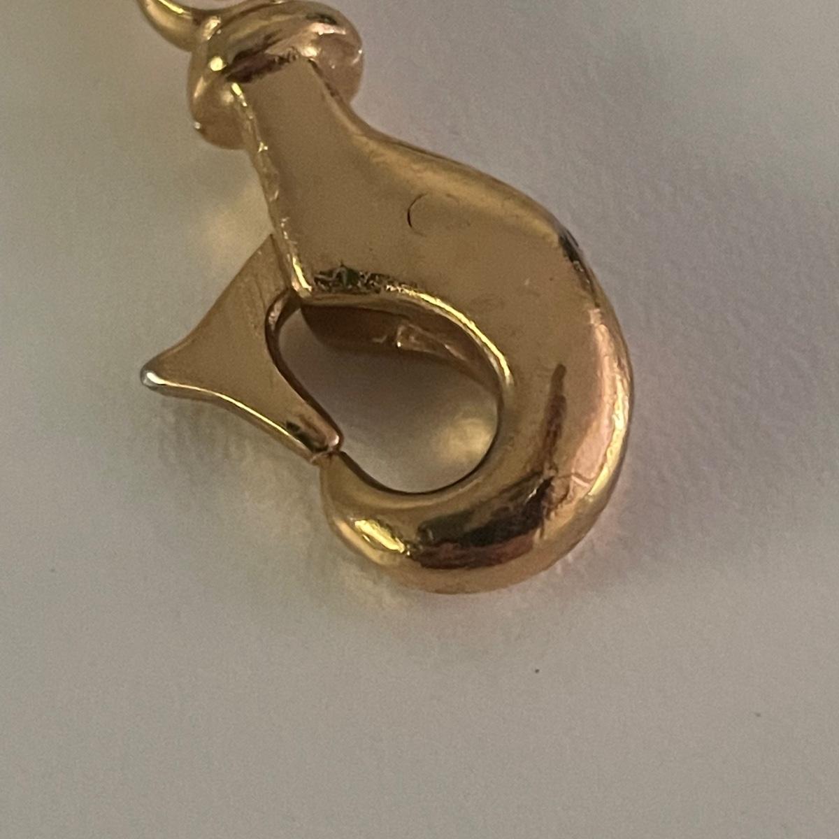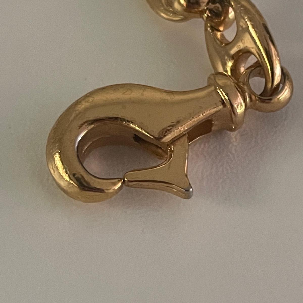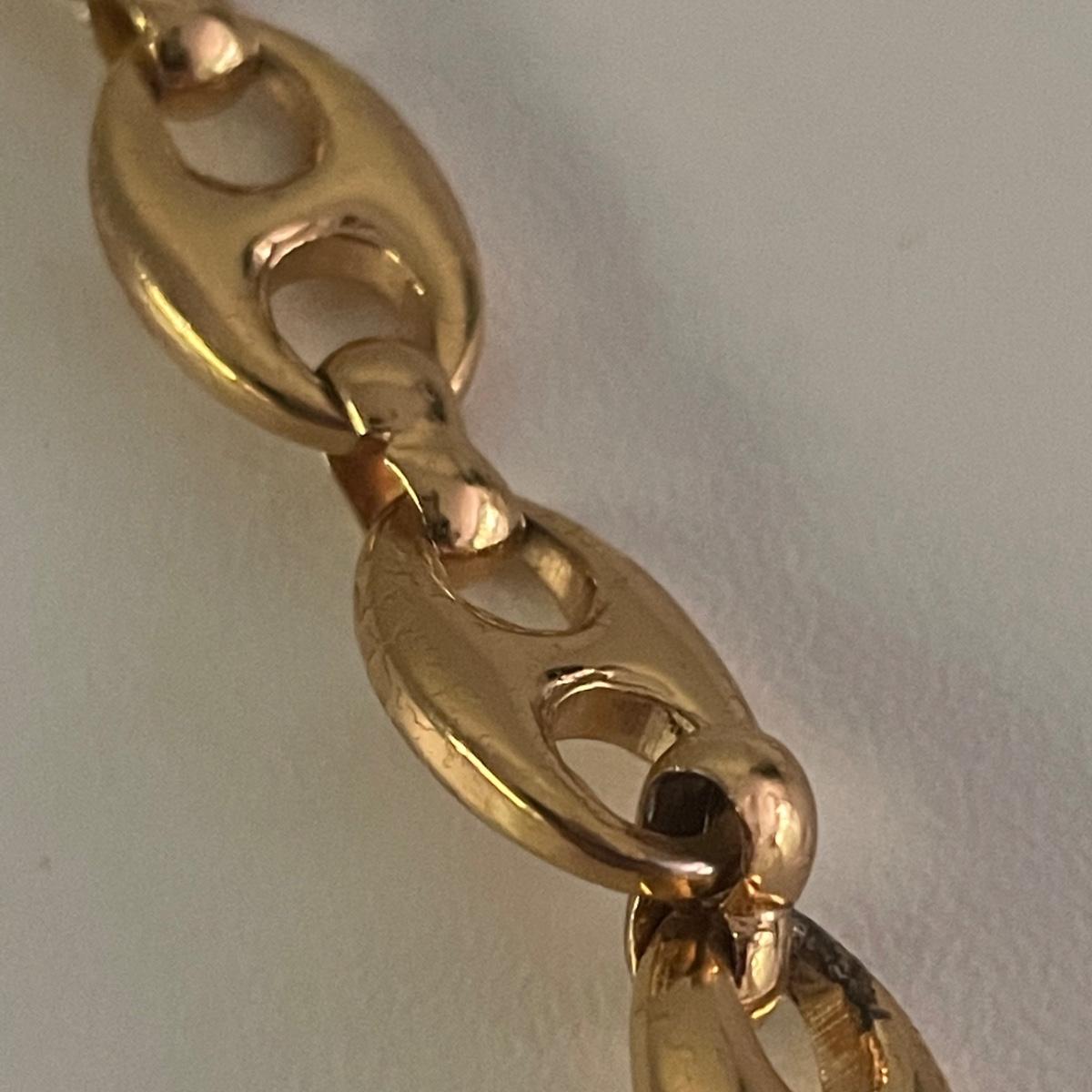 This 40” gold colored belt is in good condition. Although we cannot verify it’s authenticity, it does have Gucci and Made in Italy manufacturers markings.