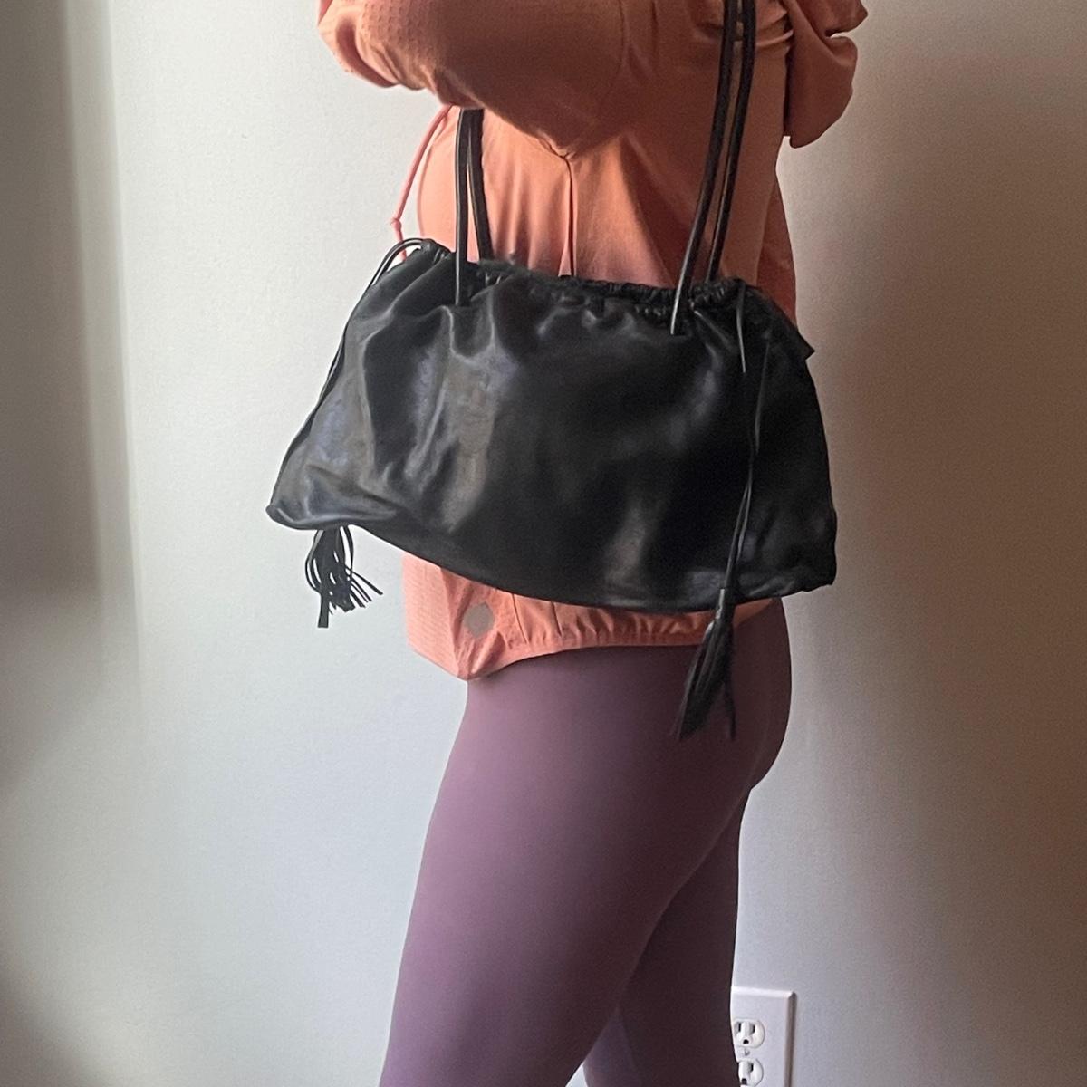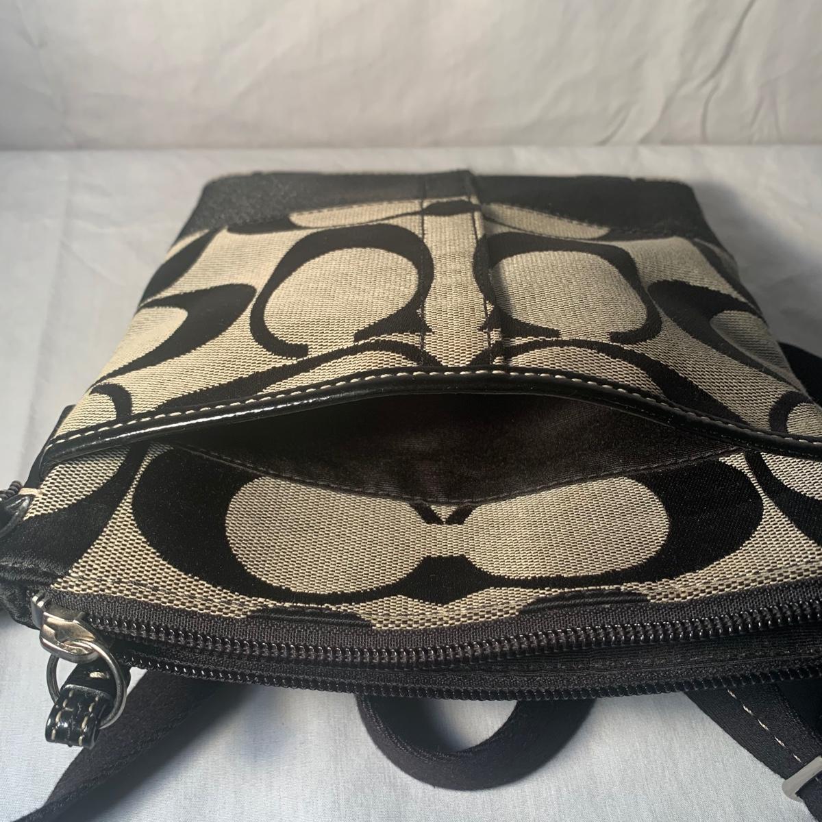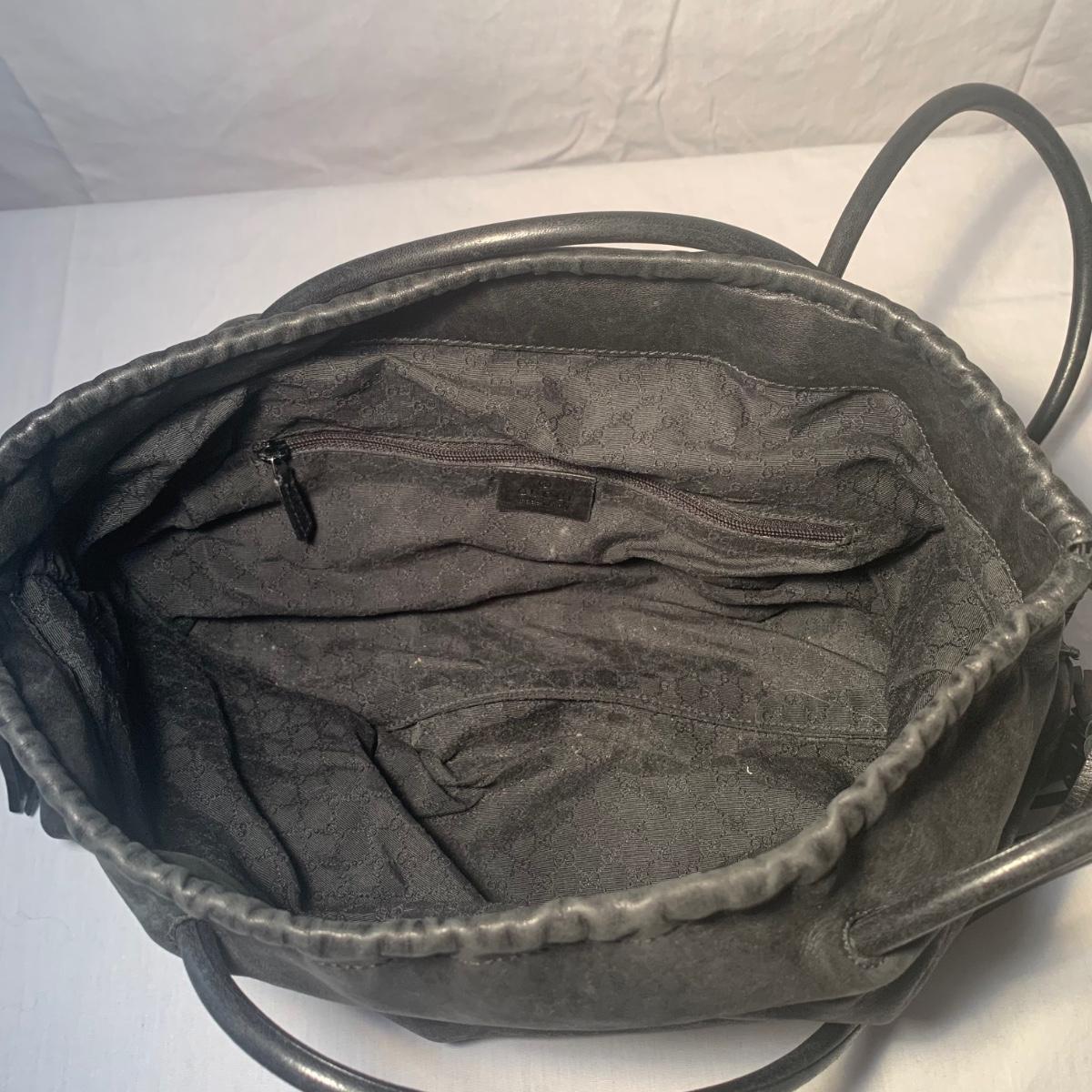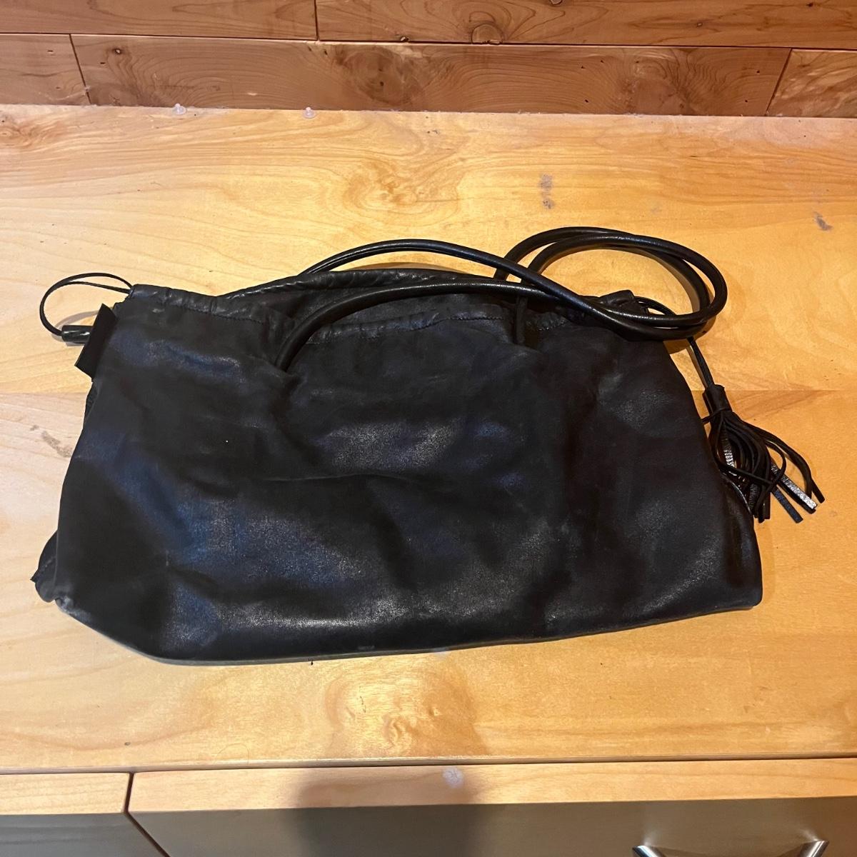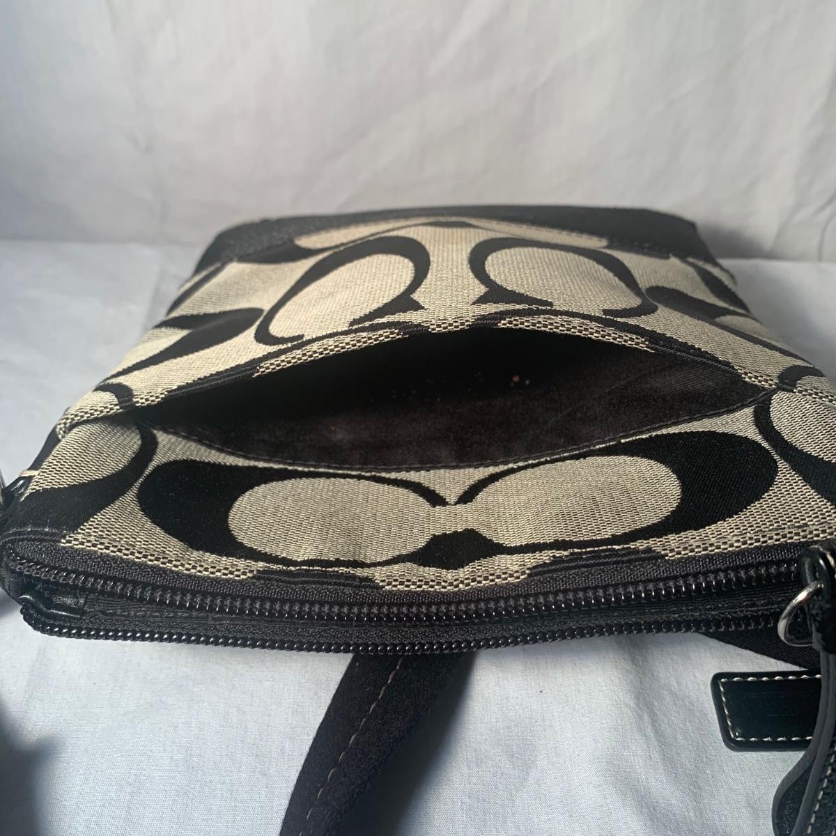Lot includes a cross body Coach purse and leather Gucci purse. Coach crossbody has two exterior pockets with one large main compartment. Gucci purse features a cinch closure. It has a main compartment that contains a small interior pocket. Both purses are in good condition. Gucci purse measures 3.5” x 9” x 14”.