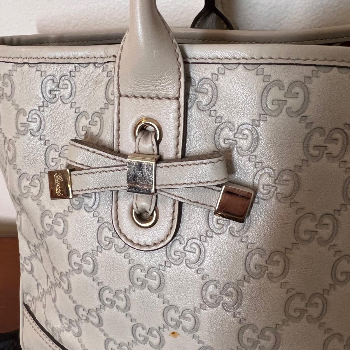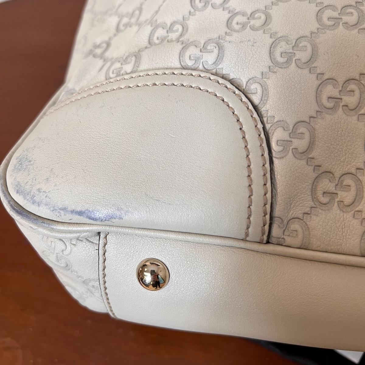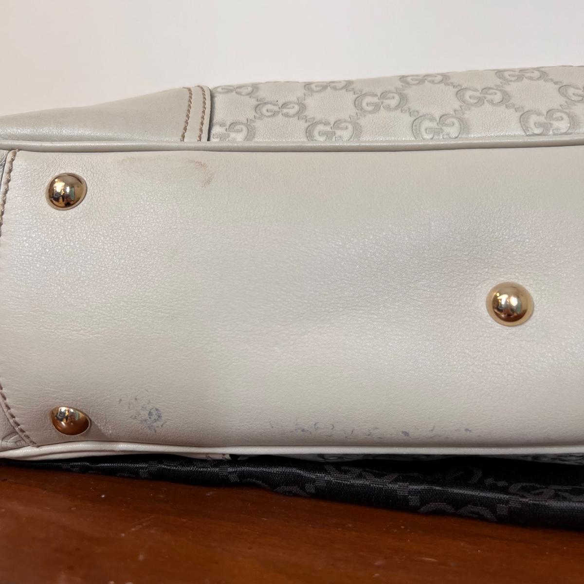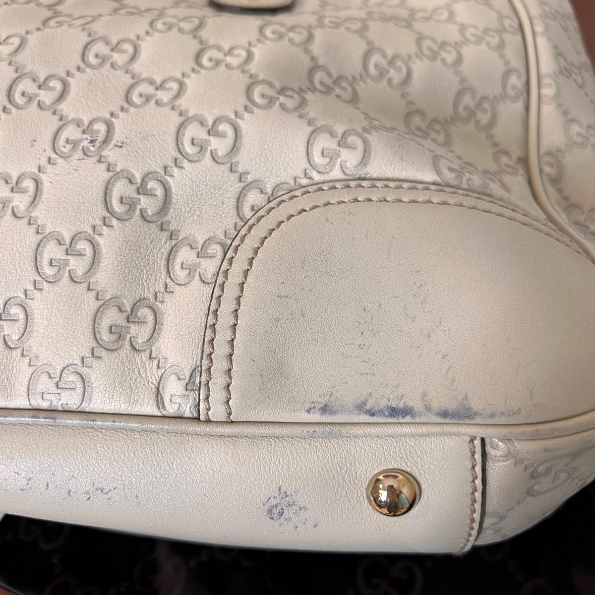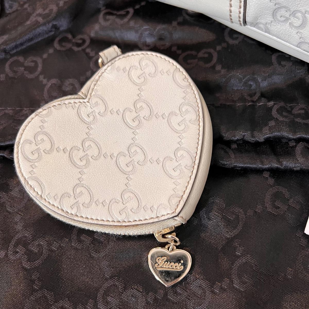 Color: ivory with gold tone hardware including heart Gucci charm