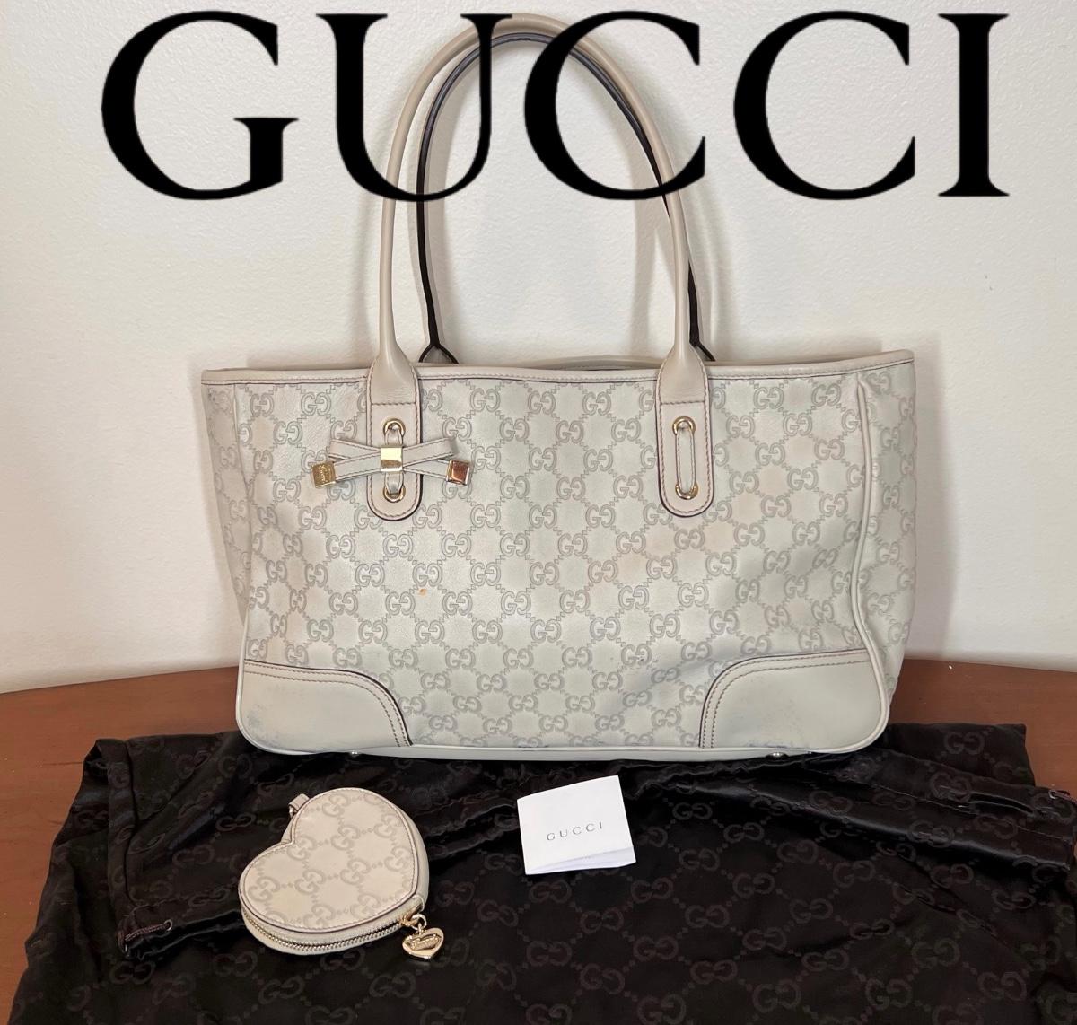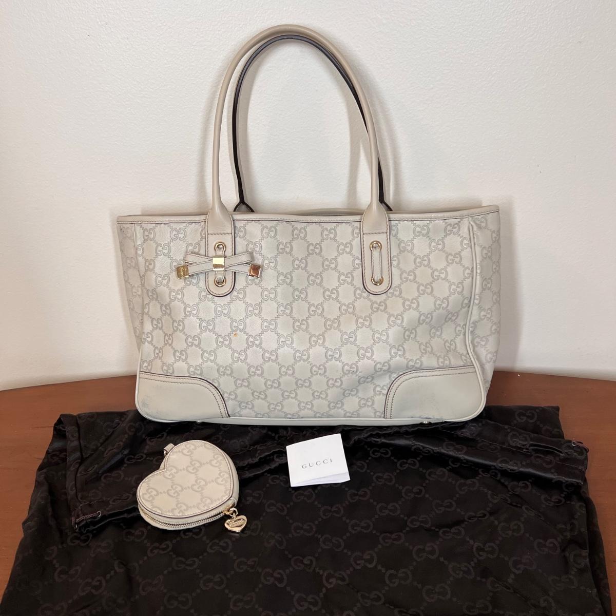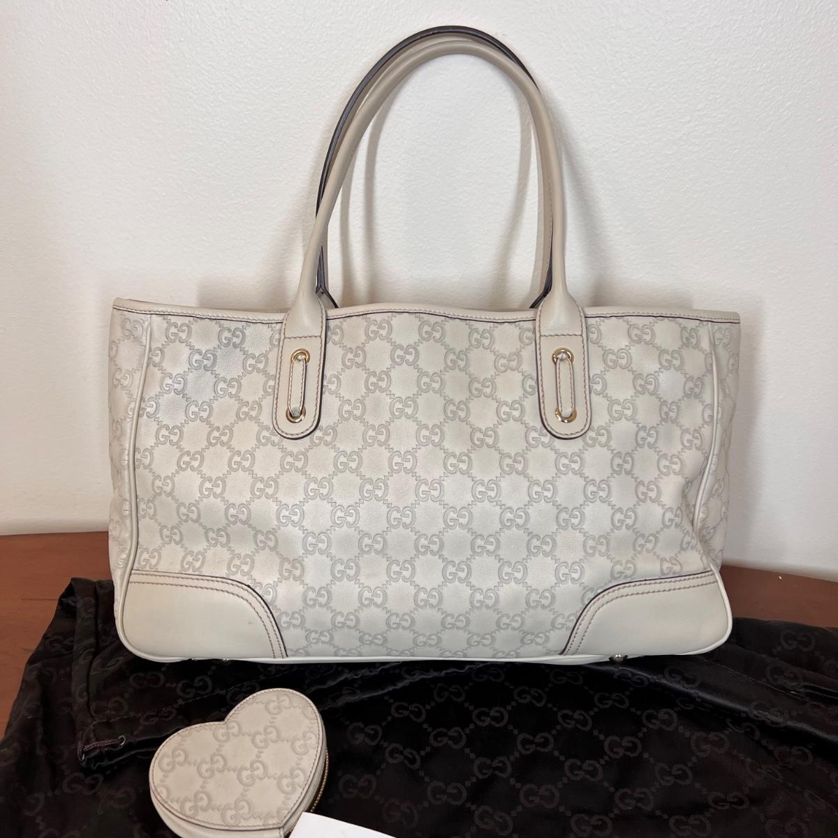 Gucci Tote with matching Heart Coin Purse Guccissima Leather Ivory, GG Signature & Princy Accent, Dual Shoulder Straps