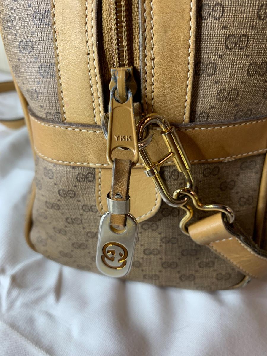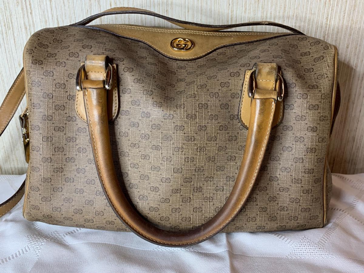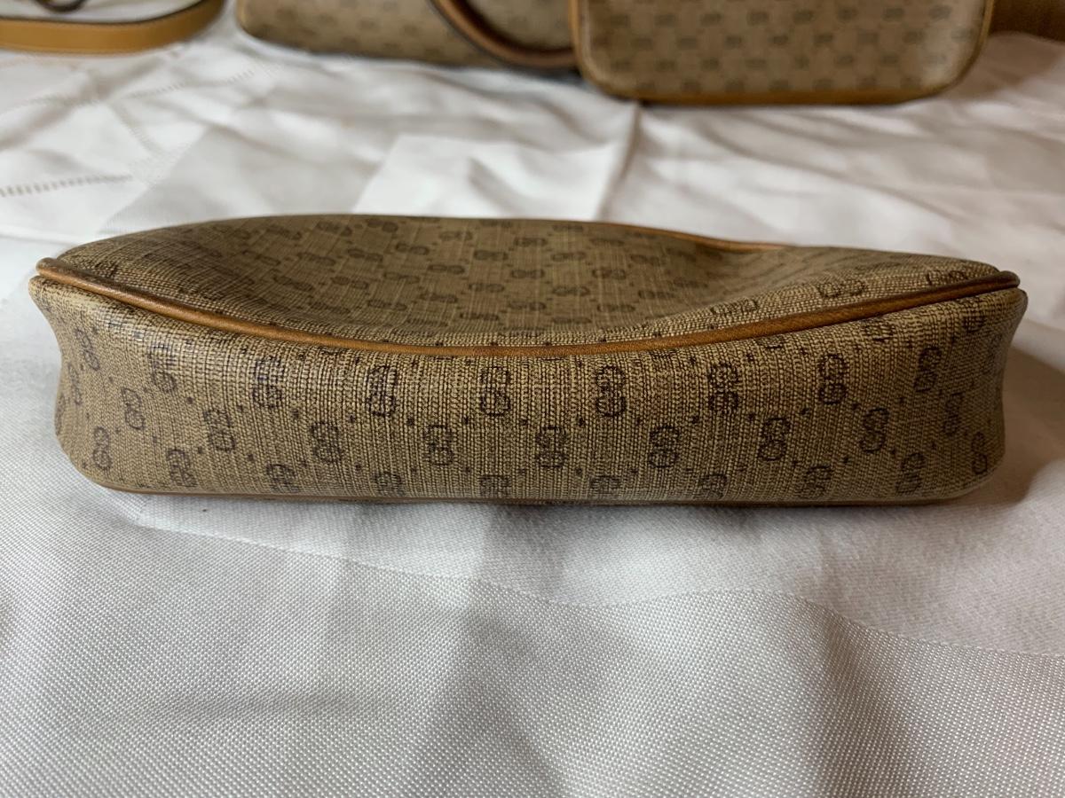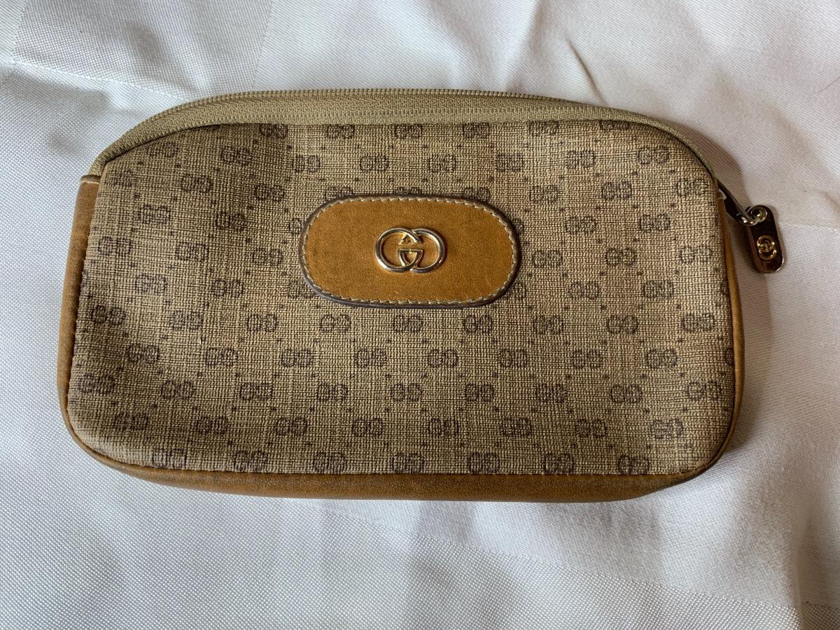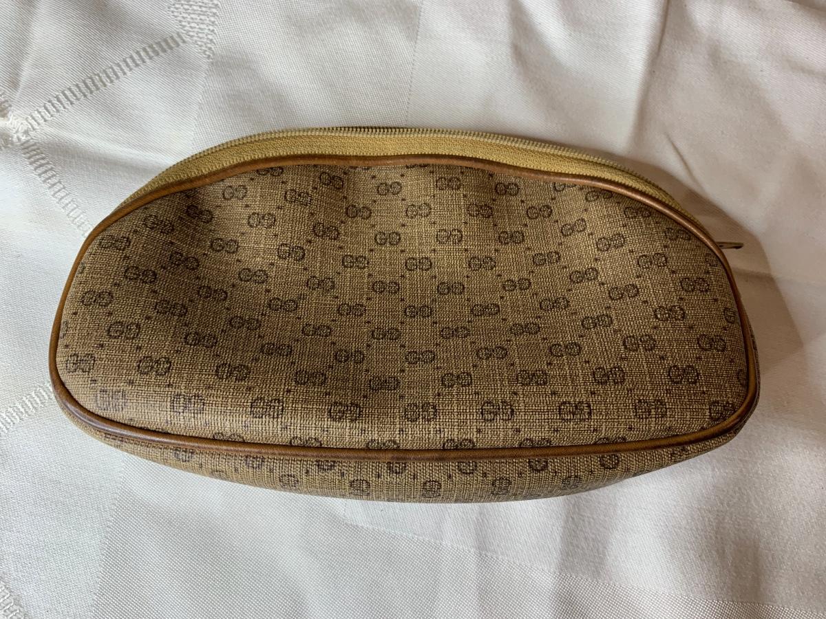 Gucci purse in great condition with the exception of normally worn handles (interior in fair condition), one small travel bag in great condition and one small travel bag with a faded tag otherwise in great condition