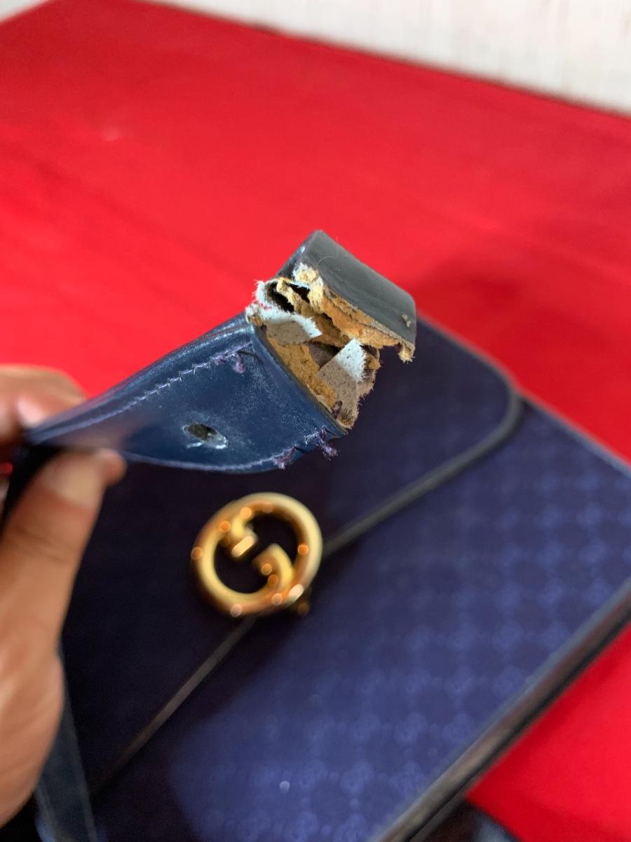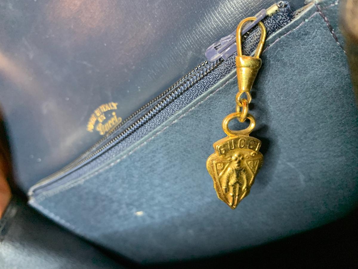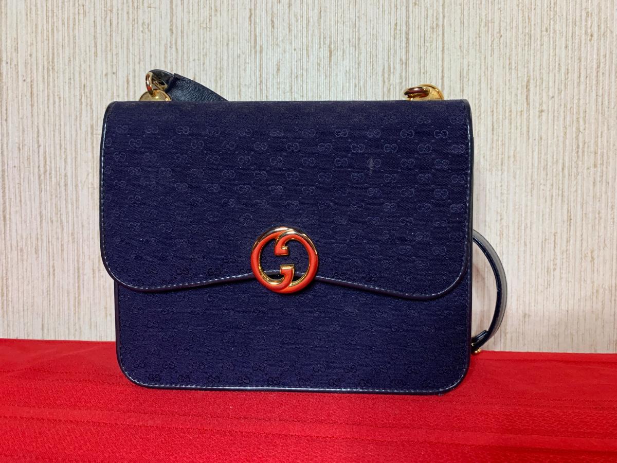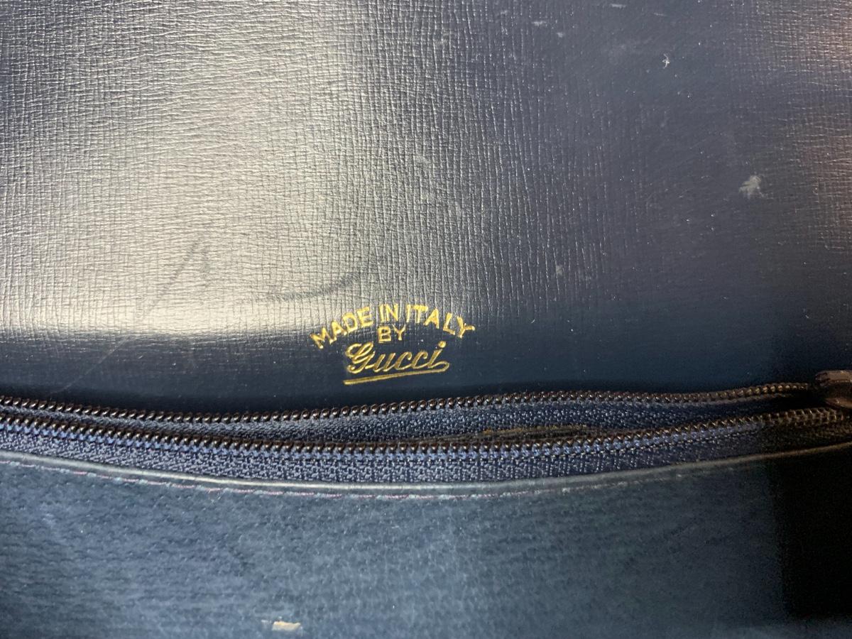 One navy blue Gucci purse with strap (strap is broken), otherwise purse is overall in great, like new condition
