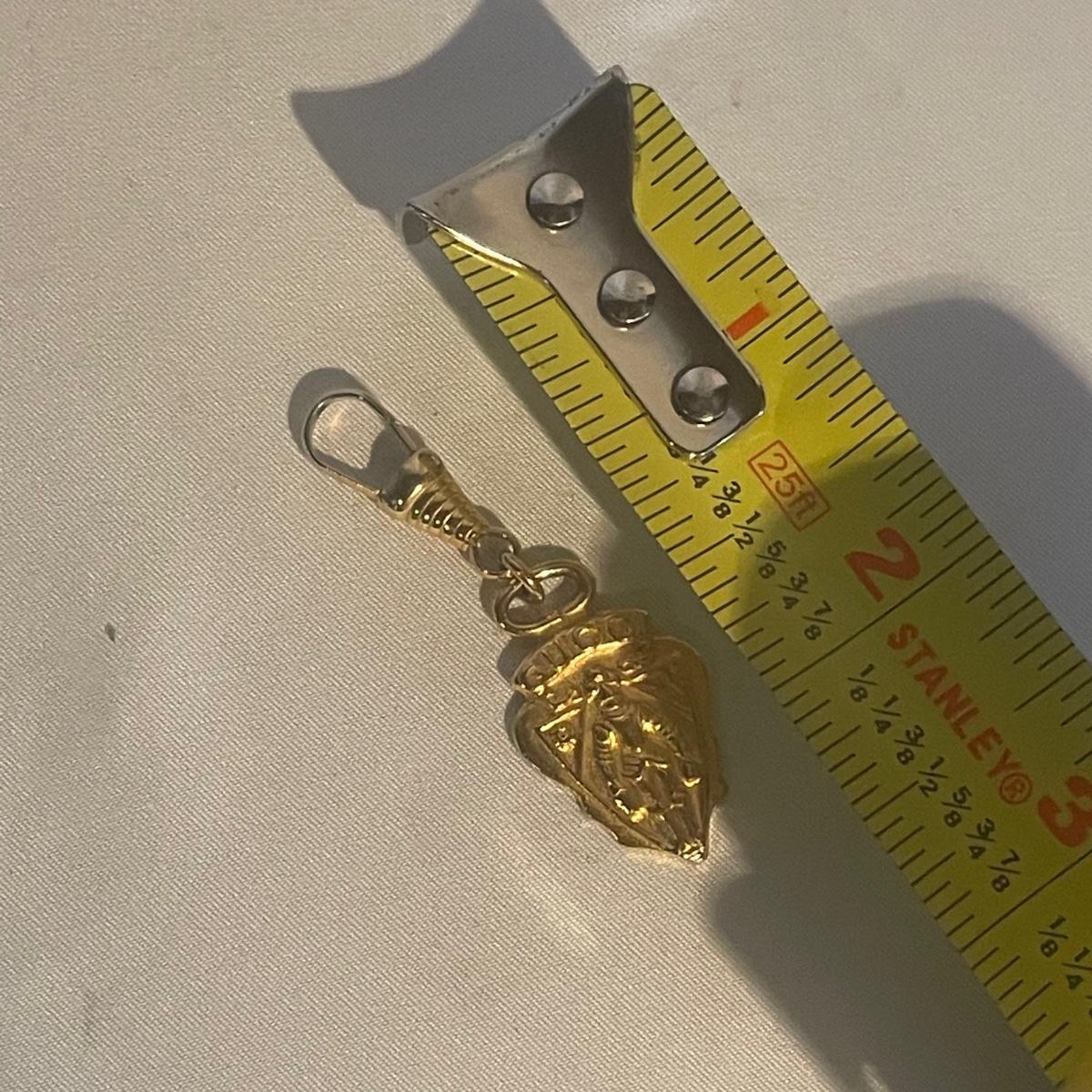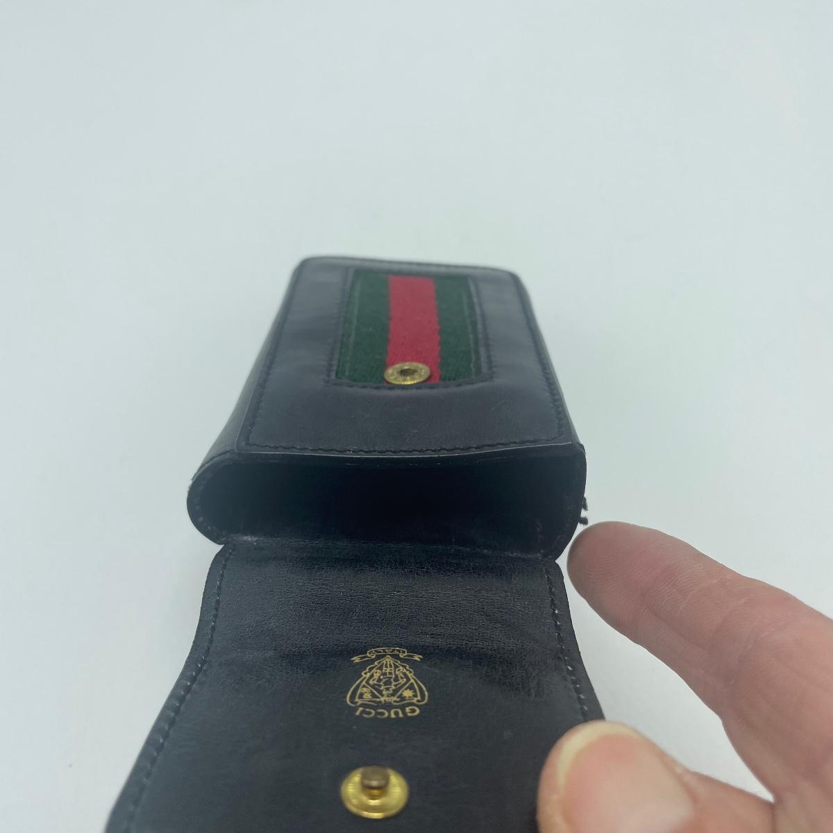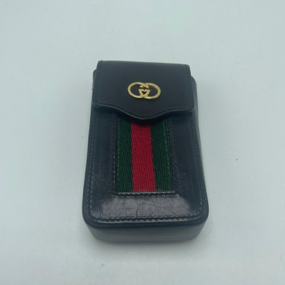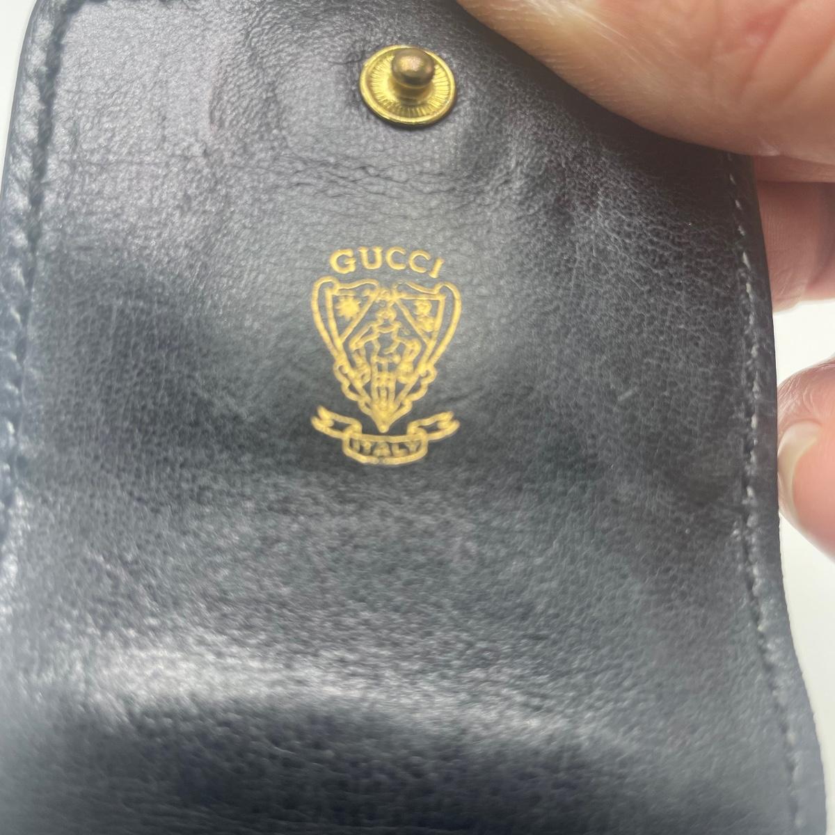 This gorgeous Gucci mid sized purse is black suede with a good colored Gucci logo. It has a mid length strap (small tear and worn buckle shown in an image) and a zippered inner pocket and comes with its original box. Also included is a small Gucci case that measures 4.5” x 2.5” x 1”. Purse measures 11.5” x 12” x 1”. A small gold colored metal tag was added to this lot later.