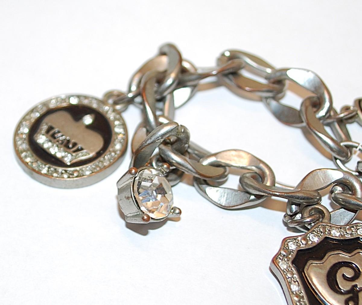 "GUESS" Brand Silver Tone BRACELET (3" Opening) with Solid Links, Assorted CHARMS and Lobster Clasp