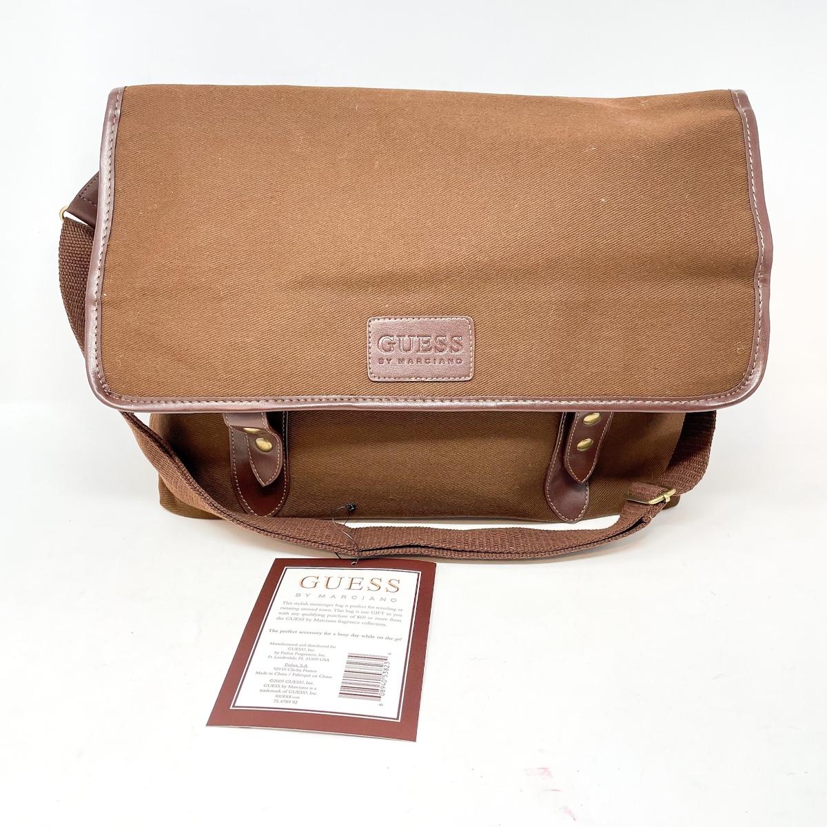 GUESS BY MARCIANO BROWN CANVAS MESSENGER BAG