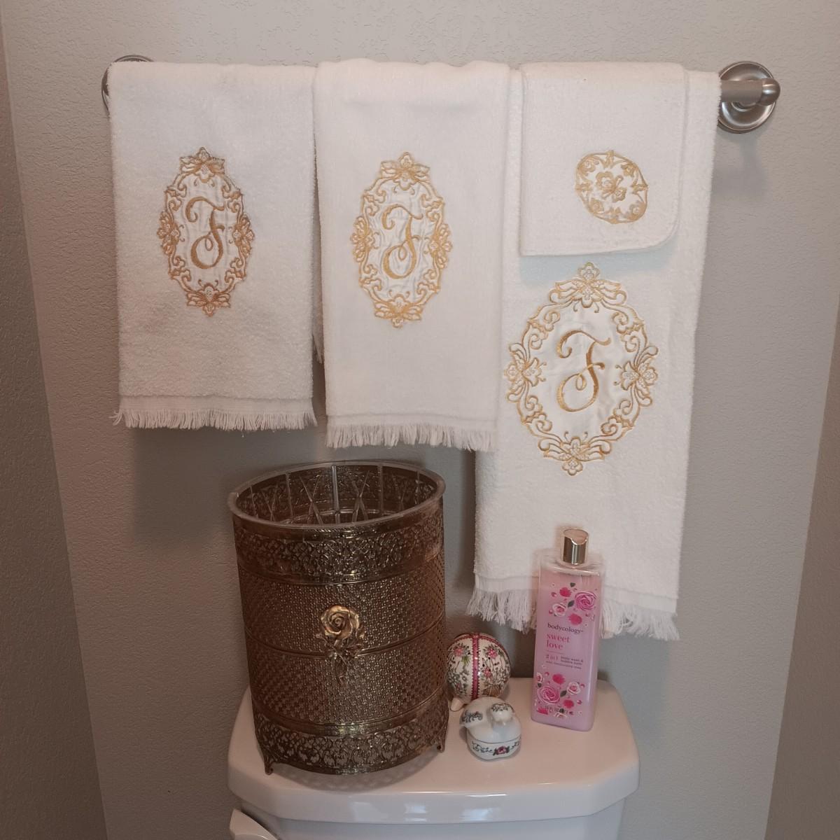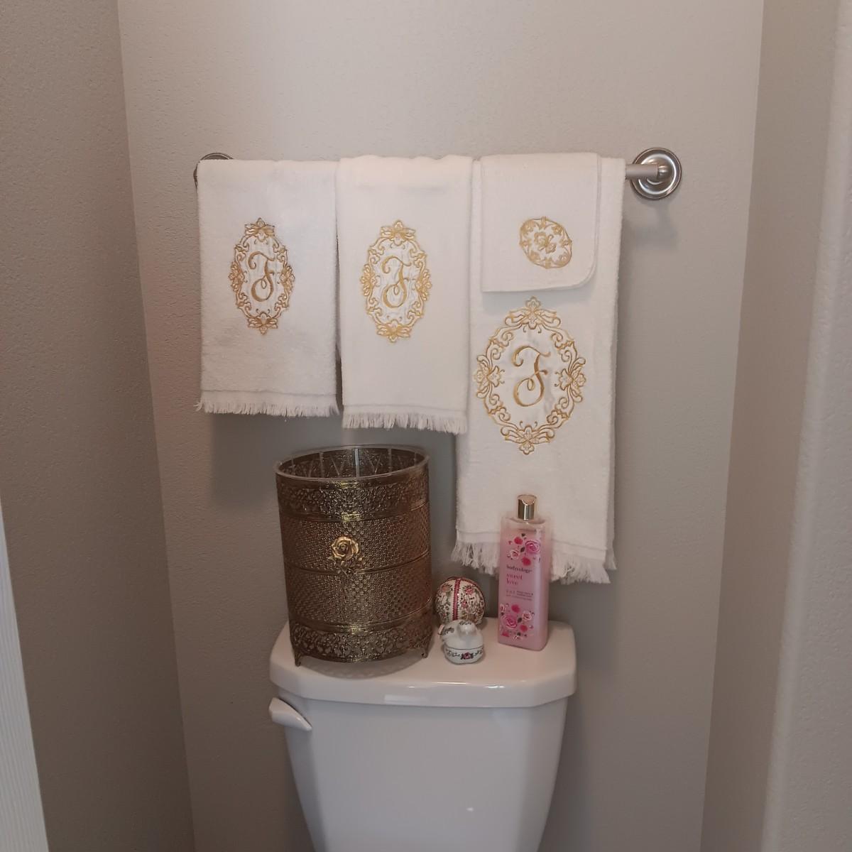 GUEST TOWELS, GOLD-TONE METAL WASTE CAN AND MORE
