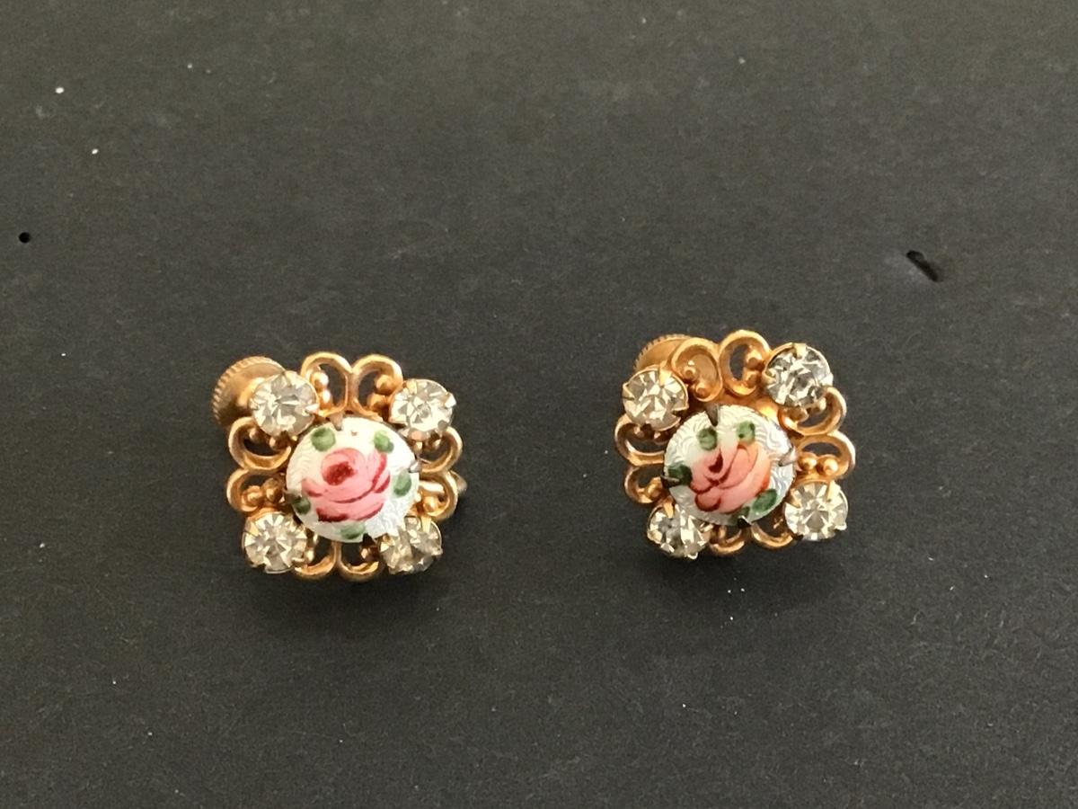 Guilloche Screw Back Vintage Earrings
