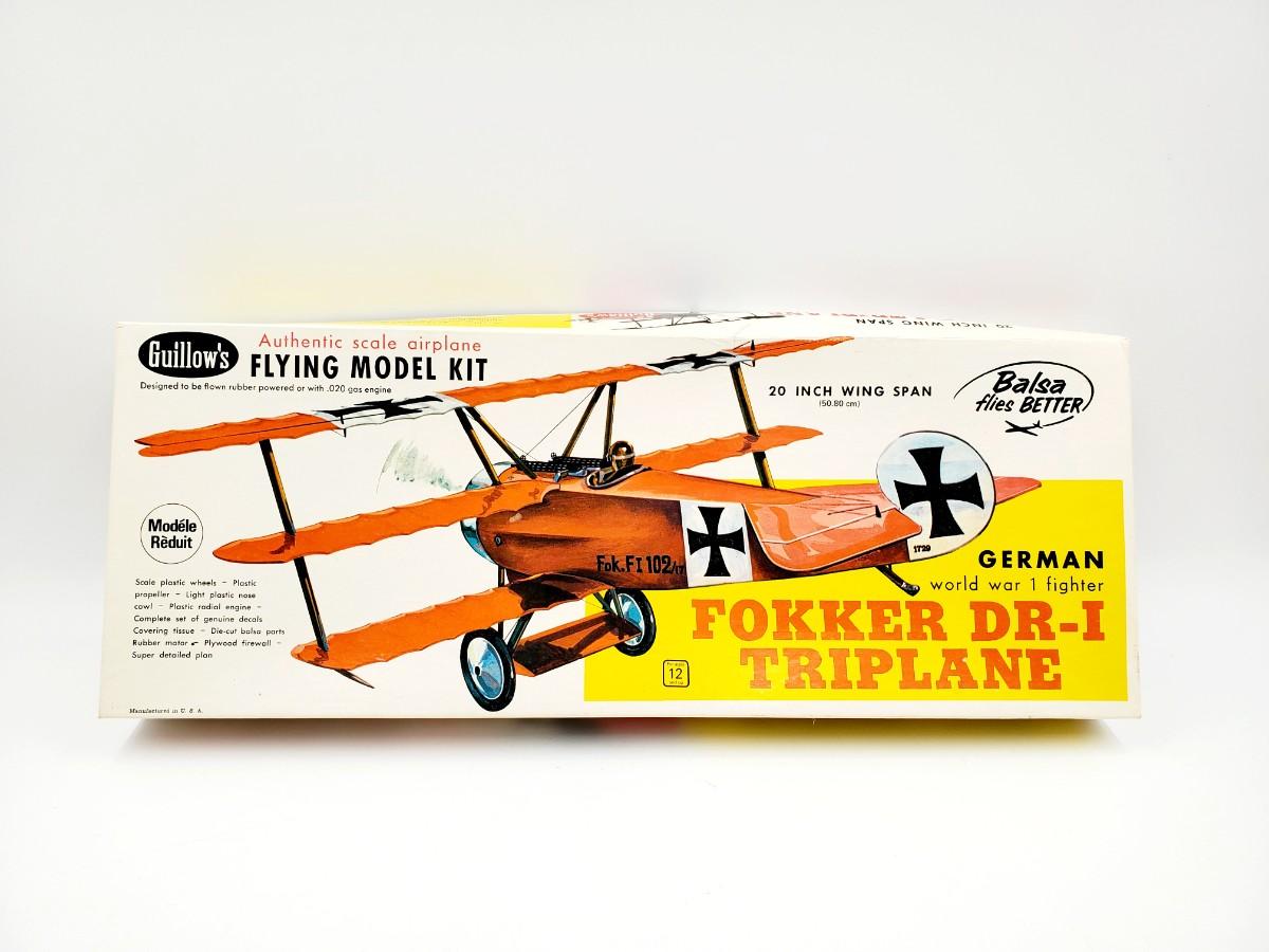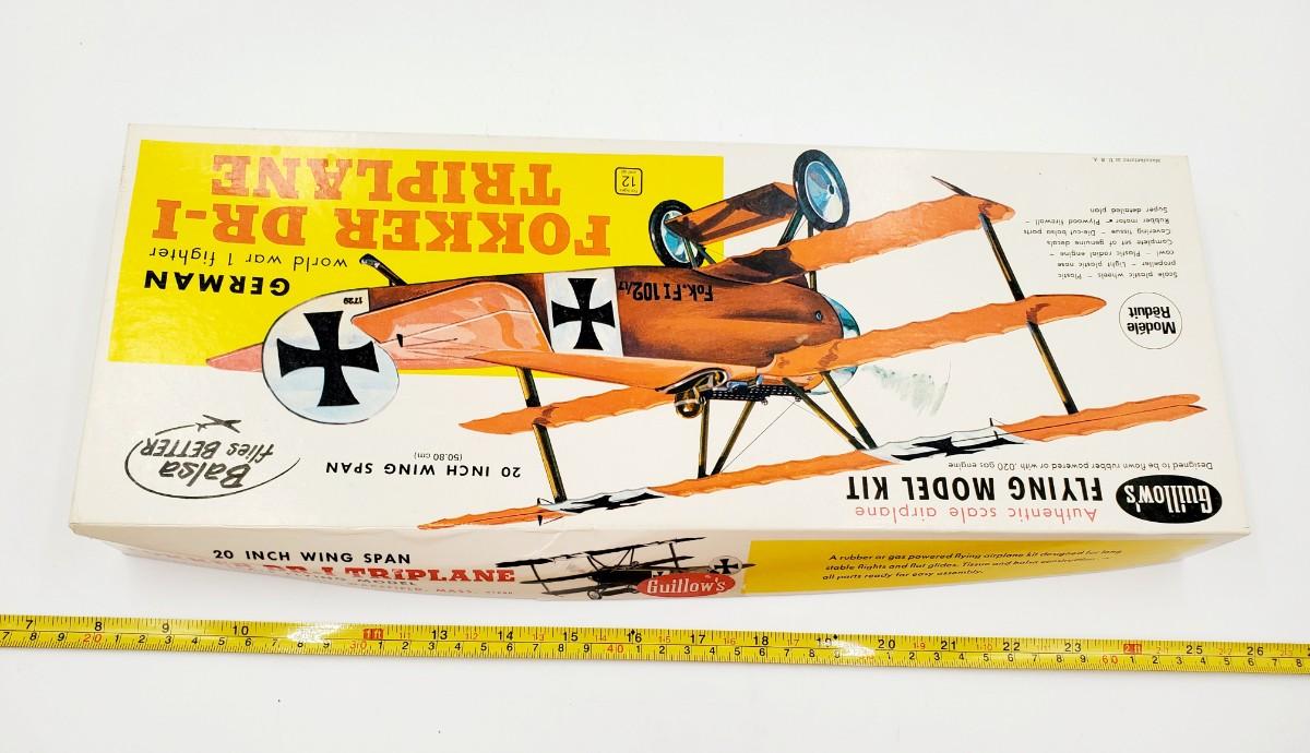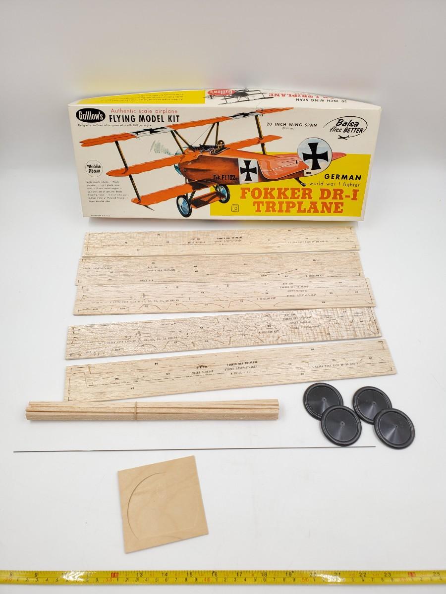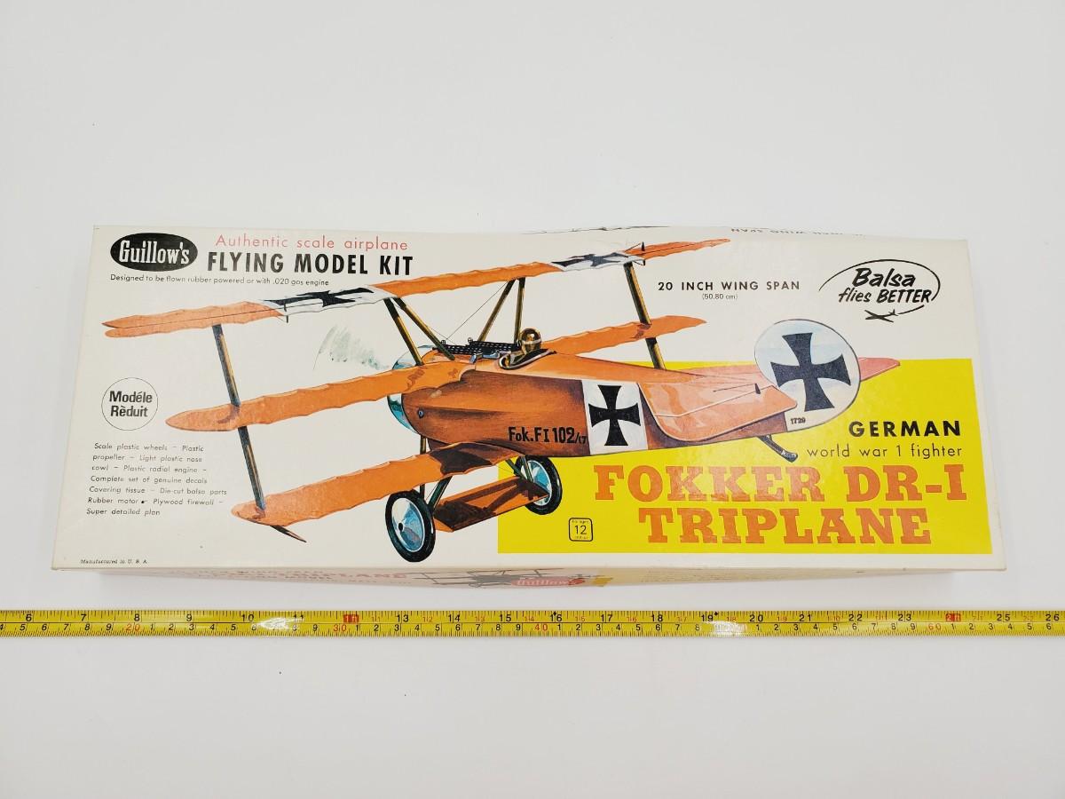 GUILLOW'S 20 INCH WING SPAN GERMAN WORLD WAR 1 FIGHTER FOKKER DR-I TRIPLANE SCALE FLYING MODEL