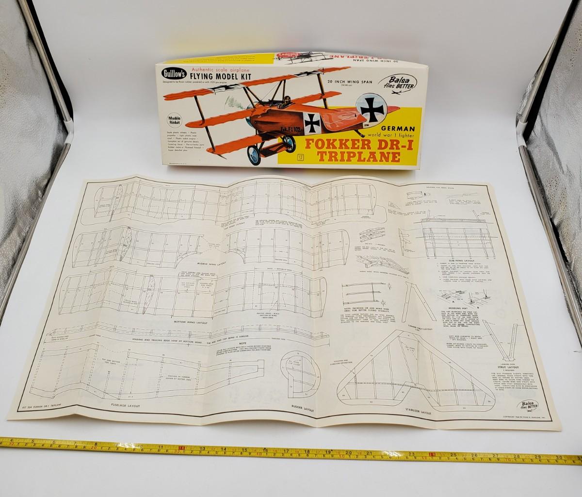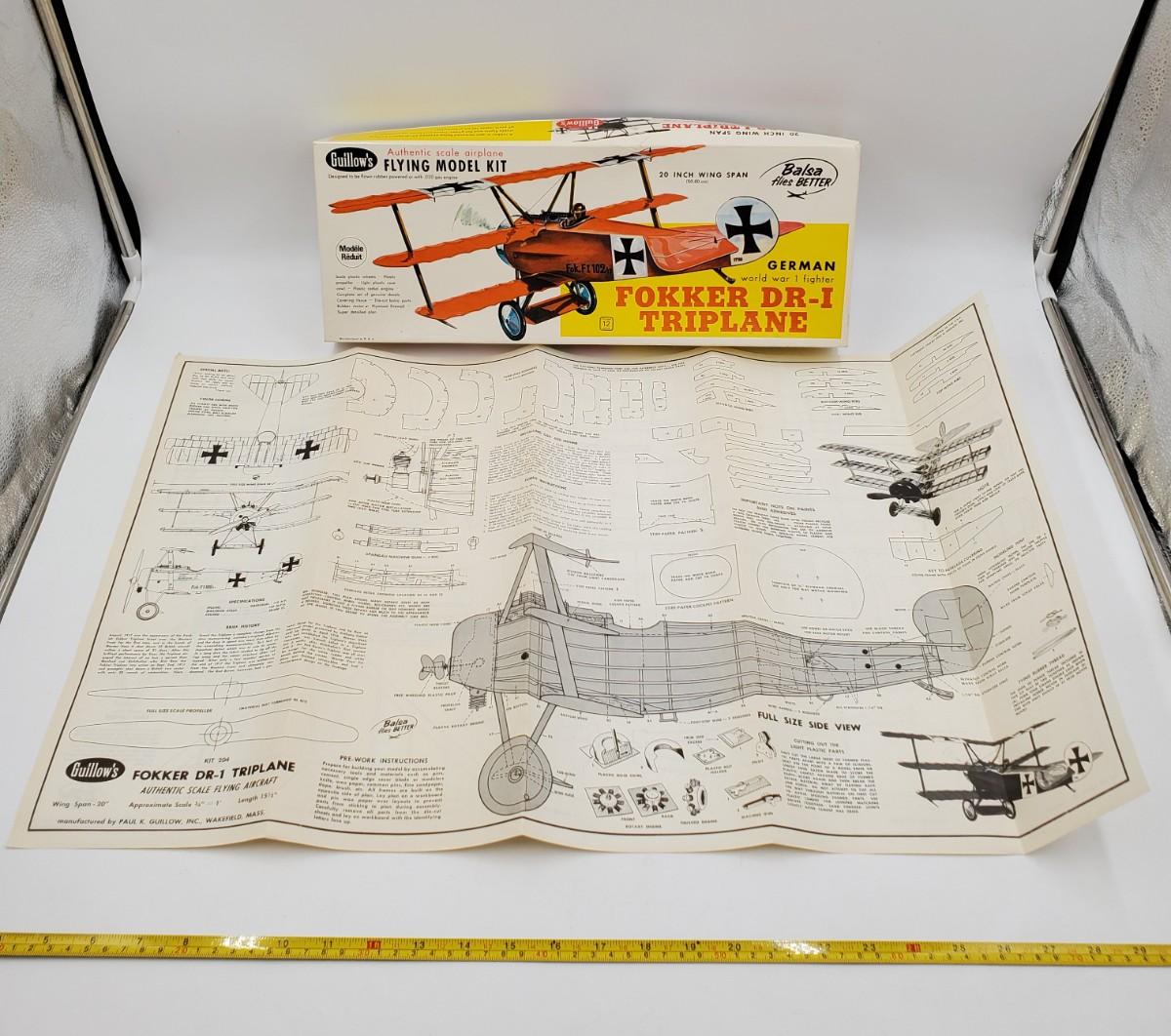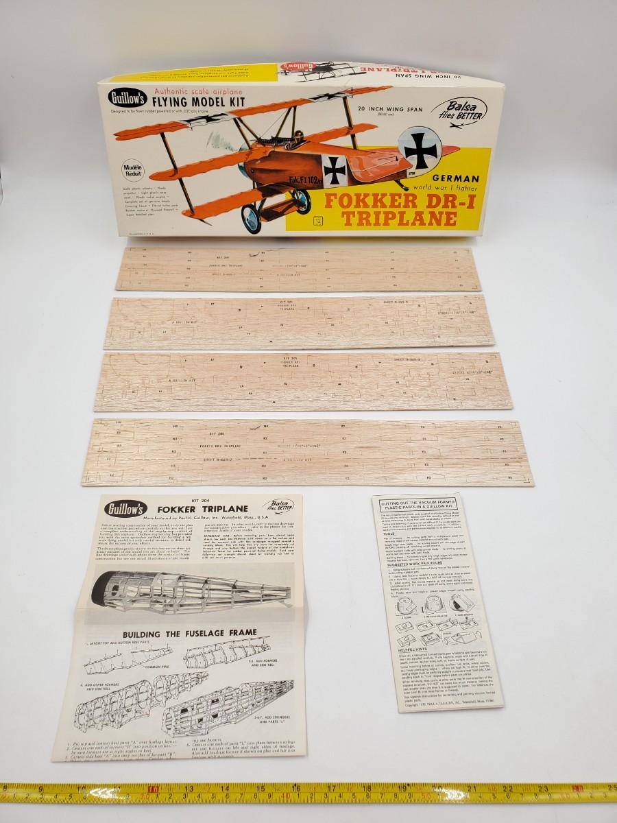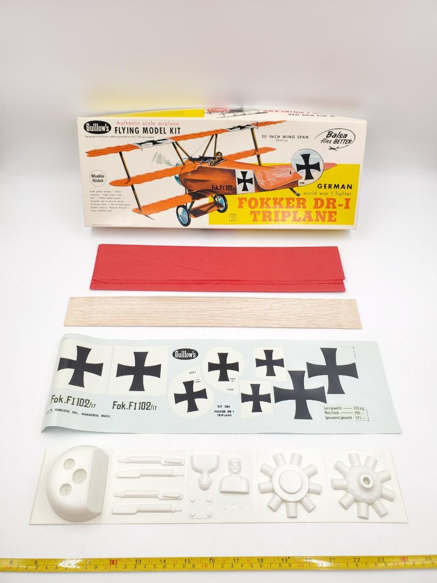 GUILLOW'S 20 INCH WING SPAN GERMAN WORLD WAR 1 FIGHTER FOKKER DR-I TRIPLANE SCALE FLYING MODEL