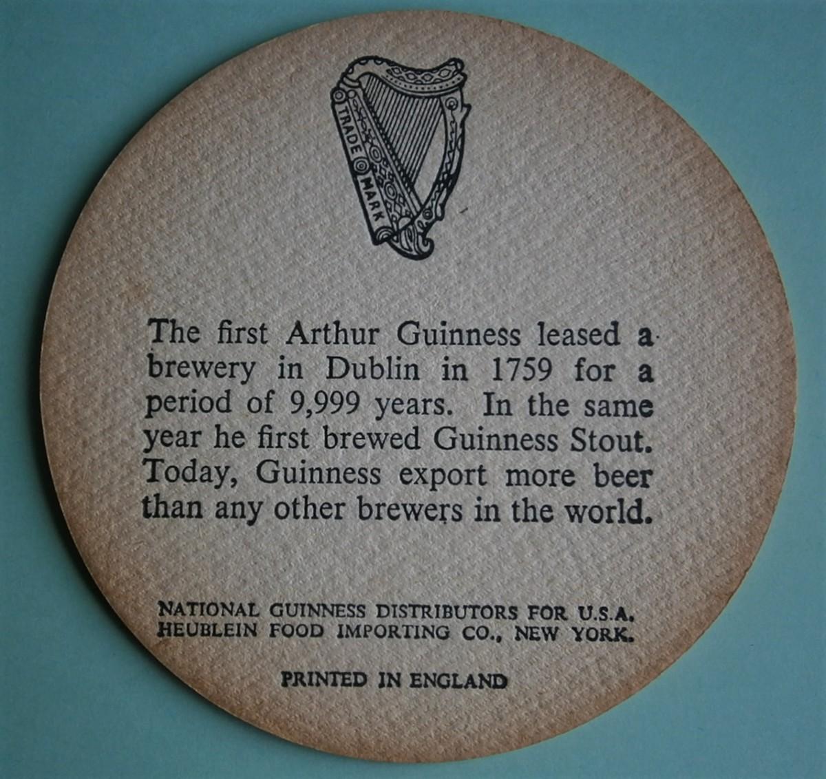 GUINNESS HISTORY No.1 Beer Coaster, vintage, 4 in. in diameter, pressed cardboard, some slight age browning on edges, fairly scarce coaster.