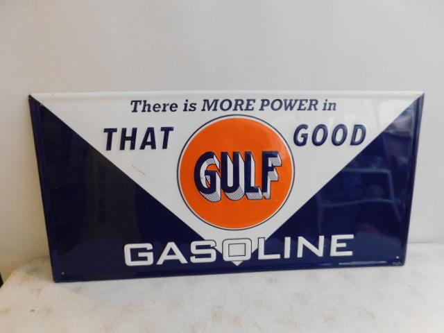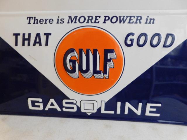 Gulf Gasoline Large Metal Store Advertising Sign 35"x17"