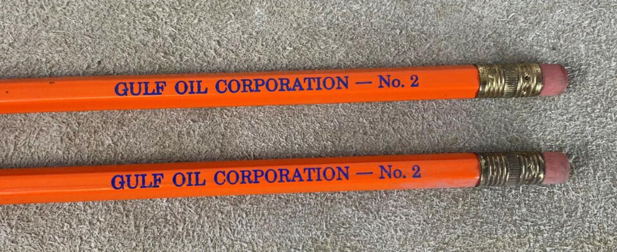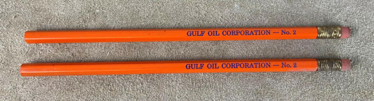 GULF OIL CORP No. 2 WOODEN ADVERTISING PENCIL pair