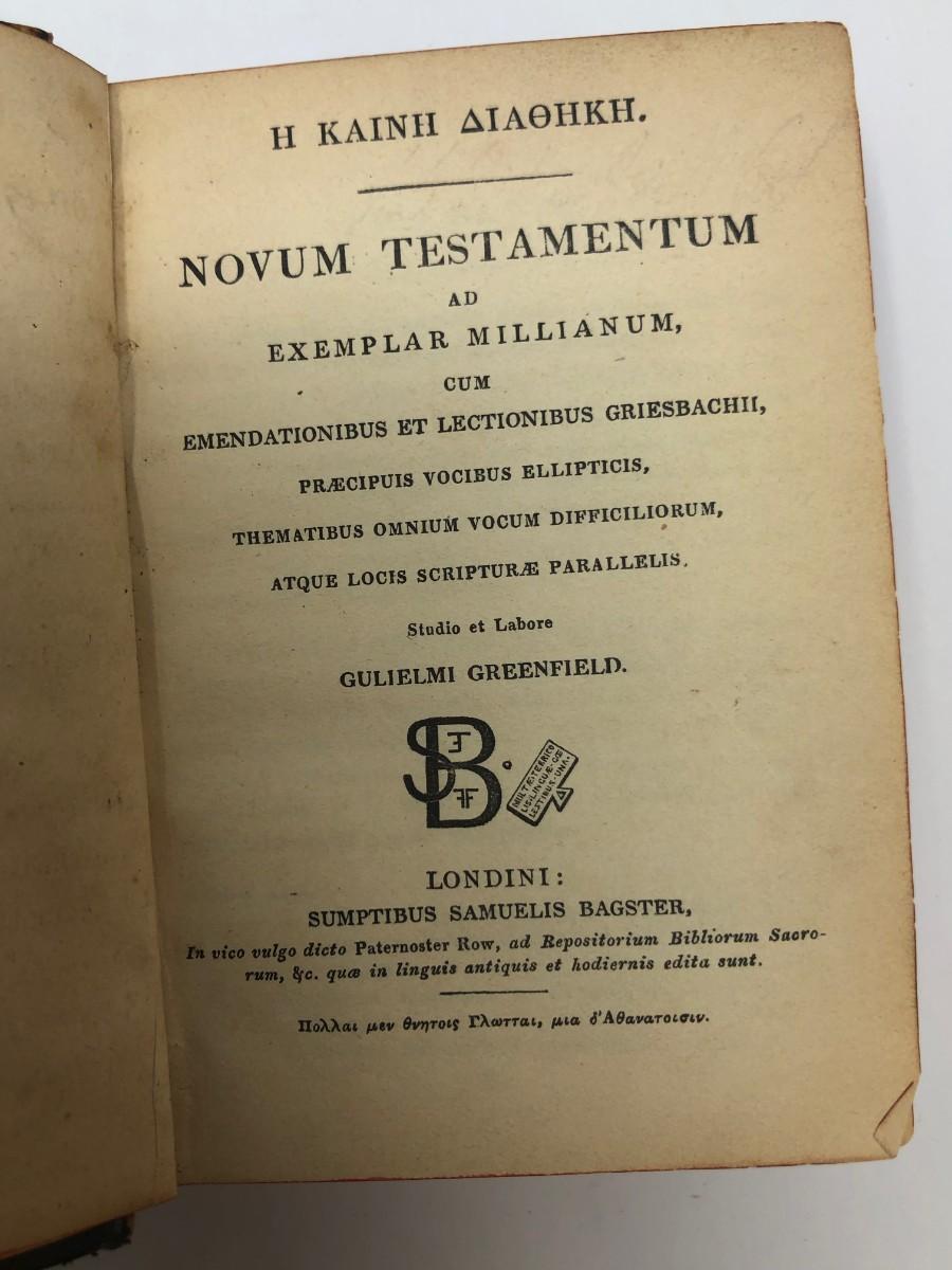 Guliemi Greenfield: Novum Testamentum Ad Examplar Milianum -1829 Edition.